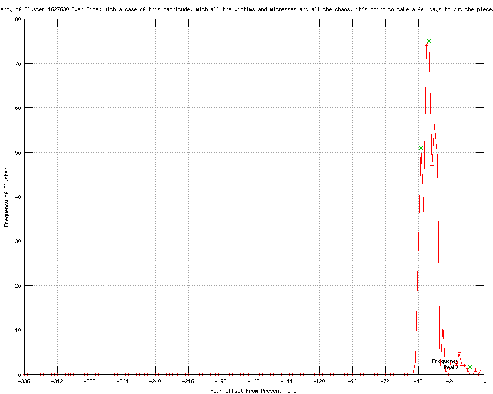 | 16 | with a case of this magnitude, with all the victims and witnesses and all the chaos, it's going to take a few days to put the pieces together Urls http://clickorlando.com/news/Former-student-arrested-in-deadly-college-shooting/-/1637132/10050362/-/1rhx2z/-/index.html http://wibw.com/home/headlines/Former_Student_Arrested_In_California_College_Shooting_That_Killed_7__145869175.html http://kpax.com/news/ex-student-arrested-in-california-college-shooting-that-killed-7/ http://tristatehomepage.com/fulltext?nxd_id=502062 http://cnn.com/2012/04/03/us/california-shooting/index.html?eref=rss_latest http://rss.cnn.com/~r/rss/cnn_topstories/~3/xY6Iv1TIc78/index.html http://cnn.com/2012/04/03/us/california-shooting/index.html?eref=rss_topstories http://edition.cnn.com/2012/04/03/us/california-shooting/index.html?eref=edition http://thedailybeast.com/cheats/2012/04/02/oakland-shooting-suspect-arrested.html http://cnn.com/2012/04/03/us/california-shooting/index.html?eref=rss_crime http://cnn.com/2012/04/03/us/california-shooting/index.html?eref=rss_us http://wibw.com/nationalnews/headlines/Former_Student_Arrested_In_California_College_Shooting_That_Killed_7__145869175.html http://kvia.com/news/30822244/detail.html http://awomansweekly.com/california-college-gunmans-motive-a-mystery-2012-04 http://karthik-mrcool.blogspot.com/2012/04/service-planned-for-7-killed-in.html http://kpax.com/news/ex-student-arrested-in-ca-college-shooting-that-killed-7/ |