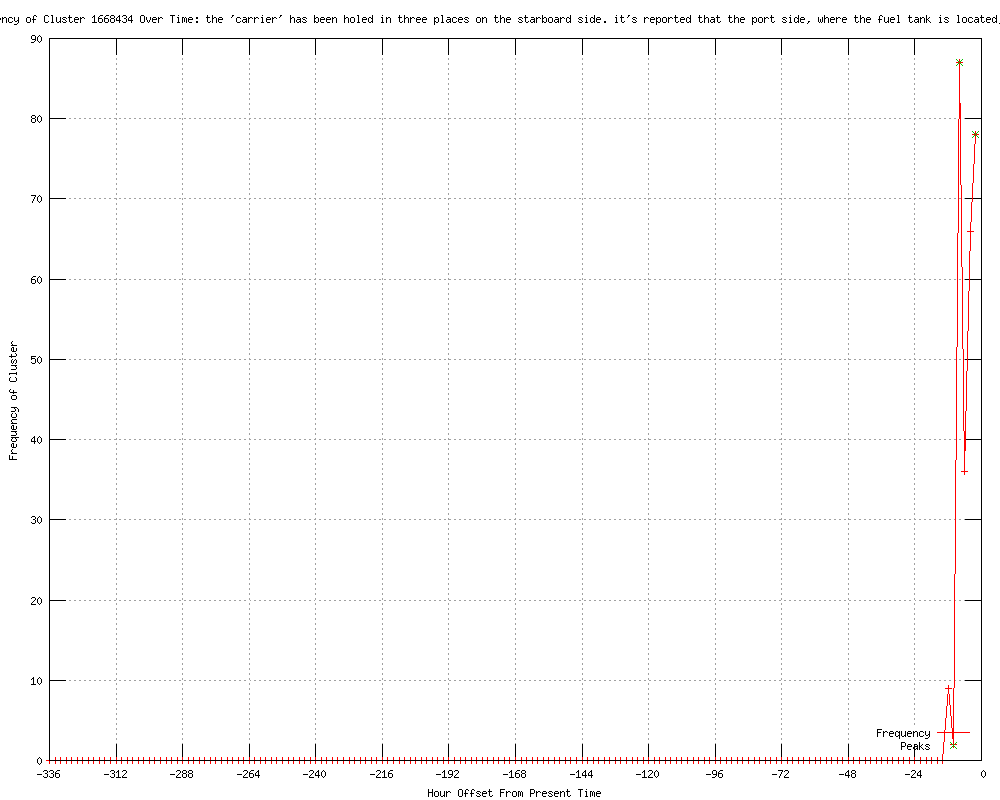| 12 | the carrier has been holed in three places on the starboard side. it's reported that the port side, where the fuel tank is located, is intact Urls http://independent.co.uk/news/uk/home-news/cargo-ship-leaking-oil-near-colwyn-bay-after-storm-rescue-7618001.html http://walesonline.co.uk/news/wales-news/2012/04/05/efforts-to-remove-40-000-litres-of-fuel-from-stricken-cargo-ship-carrier-underway-91466-30699251/ http://examiner.co.uk/news/national-news/2012/04/04/gallery-stricken-cargo-ship-off-north-wales-coast-is-leaking-oil-100252-30693912/ http://coventrytelegraph.net/news/national-news/2012/04/04/gallery-stricken-cargo-ship-off-north-wales-coast-is-leaking-oil-100252-30693912/ http://liverpoolecho.co.uk/liverpool-news/uk-world-news/2012/04/04/gallery-stricken-cargo-ship-off-north-wales-coast-is-leaking-oil-100252-30693912/ http://chroniclelive.co.uk/north-east-news/uk-and-world-news/2012/04/04/gallery-stricken-cargo-ship-off-north-wales-coast-is-leaking-oil-100252-30693912/ http://walesonline.co.uk/news/uk-news/2012/04/04/gallery-stricken-cargo-ship-off-north-wales-coast-is-leaking-oil-100252-30693912/ http://dailypost.co.uk/news/uk-world-news/2012/04/04/gallery-stricken-cargo-ship-off-north-wales-coast-is-leaking-oil-100252-30693912/ http://birminghampost.net/news/uk-news/2012/04/04/gallery-stricken-cargo-ship-off-north-wales-coast-is-leaking-oil-100252-30693912/ http://birminghammail.net/news/national-news/2012/04/04/gallery-stricken-cargo-ship-off-north-wales-coast-is-leaking-oil-100252-30693912/ http://journallive.co.uk/north-east-news/uk-news-world/2012/04/04/gallery-stricken-cargo-ship-off-north-wales-coast-is-leaking-oil-100252-30693912/ http://liverpooldailypost.co.uk/liverpool-news/uk-world-news/2012/04/04/gallery-stricken-cargo-ship-off-north-wales-coast-is-leaking-oil-100252-30693912/ |