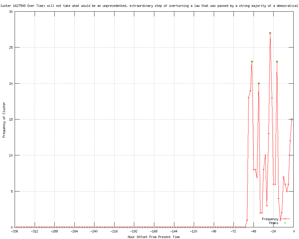 | 146 | unprecedented, extraordinary step Urls http://patrickhenrypress.info/node/606603 http://feeds.dailykos.com/~r/dailykos/index/~3/n-KSUW-jiVc/-President-says-Court-striking-down-ACA-would-be-unprecedented-extraordinary-nbsp-step- http://feeds.dailykos.com/%7Er/dailykos/index/%7E3/n-KSUW-jiVc/-President-says-Court-striking-down-ACA-would-be-unprecedented-extraordinary-nbsp-step- http://latimes.com/news/politics/la-pn-obama-confident-supreme-court-will-uphold-healthcare-law-20120402,0,1715593.story?track=rss http://latimes.com/news/la-pn-obama-confident-supreme-court-will-uphold-healthcare-law-20120402,0,3909796.story?track=rss http://hotair.com/archives/2012/04/02/obama-i-sure-hope-the-supreme-court-doesnt-do-something-unprecedented-by-striking-down-obamacare/ http://wsbt.com/health/la-pn-obama-confident-supreme-court-will-uphold-healthcare-law-20120402,0,855966.story http://contacto-latino.com/news/3992758/obama-overturning-healthcare-law-would-be-extraordinary-step-los-angeles-times/ http://article.wn.com/view/2012/04/02/82_of_new_iPad_owners_very_satisfied_with_purchase_study_say/ http://nation.foxnews.com/oaksterdam-university/2012/04/02/team-obama-raids-oakland-pot-university http://nation.foxnews.com/hillary-clinton/2012/04/02/hillary-backs-boycott-charges-limbaugh-verbal-assault http://nation.foxnews.com/president-obama/2012/04/02/israelis-obama-leaked-intel-prevent-us-attacking-iran http://newmediablog.com/2012/04/obama-warns-supreme-court-on-healthcare-law/ http://balloon-juice.com/2012/04/02/a-shot-across-the-bow-2/ http://marketwatch.com/news/story.asp?guid=%7BD0D5F512-7CFB-11E1-92BD-002128049AD6%7D&siteid=rss&rss=1 http://politicalderby.com/2012/04/02/lecturer%e2%80%93in-chief/ http://bejohngalt.com/2012/04/obama-warns-supreme-court-on-health-care/ http://washingtonpost.com/politics/obama-remains-confident-supreme-court-will-uphold-health-care-law/2012/04/02/gIQA9HIOrS_story.html?wprss=rss_homepage http://washingtonpost.com/politics/obama-remains-confident-supreme-court-will-uphold-health-care-law/2012/04/02/gIQA9HIOrS_story.html?wprss=rss_politics http://marketwatch.com/news/story.asp?guid=%257BD0D5F512-7CFB-11E1-92BD-002128049AD6%257D&siteid=rss&rss=1 http://washingtonpost.com/politics/obama-remains-confident-supreme-court-will-uphold-health-care-law/2012/04/02/gIQA9HIOrS_story.html?wprss=rss_whitehouse http://thepatriotswar.com/index.php/obama-i-sure-hope-the-supreme-court-doesnt-do-something-unprecedented-by-striking-down-obamacare/news_patriot/ http://radioviceonline.com/how-not-to-win-friends-and-influence-people/ http://politic.usa.free.fr/usa/?p=91300 http://post-gazette.com/stories/news/us/national-briefs-census-site-overwhelmed-629677/ http://wallsofthecity.net/2012/04/you-keep-using-those-words.html http://lunaticoutpost.com/Topic-Appeals-Court-Fires-Back-At-Obama%E2%80%99s-Comments-On-HealthCare-Case-Unconstitutional http://therightscoop.com/appeals-court-fires-back-at-obamas-comments-on-health-care-case/ http://wsbradio.com/weblogs/jamie-dupree/2012/apr/03/health-care-verbal-battle/ http://wdbo.com/weblogs/jamie-dupree/2012/apr/03/health-care-verbal-battle/ http://barkbarkwoofwoof.com/2012/04/supremely-confident.html http://bostonherald.com/news/us_politics/view.bg?articleid=1061121864&srvc=rss http://bostonherald.com/business/healthcare/view.bg?articleid=1061121864&srvc=rss http://abovethelaw.com/2012/04/obama-warns-the-court-about-restraint-but-unaccountable-people-will-do-what-they-do/ http://ourbodiesourblog.org/blog/2012/04/health-benefits-what-women-won-and-may-lose-in-the-supreme-courts-dark-dark-place http://abovethelaw.com/2012/04/obama-warns-the-court-about-restraint-but-unaccountable-people-will-do-what-they-do/?utm_source=feedburner&utm_medium=feed&utm_campaign=Feed%3A+abovethelaw+%28Above+the+Law%29 http://cnn.com/2012/04/03/opinion/presser-obama-supreme-court/index.html?eref=rss_latest http://crazyontap.com/topic.php?TopicId=160301&Posts=1 http://gavelgrab.org/?p=34264 http://crazyontap.com/topic.php?TopicId=160301&Posts=2 http://blogs.wsj.com/law/2012/04/03/president-obama-talks-scotus-again/?mod=WSJBlog http://newmediablog.com/2012/04/obama-should-know-better-on-supreme-courts-role/ http://mediamatters.org/research/201204030012 http://crazyontap.com/topic.php?TopicId=160301&Posts=3 http://blog.heritage.org/2012/04/03/president-obama-an-advocate-for-a-restrained-judiciary/ http://patrickhenrypress.info/node/607374 http://leftword.blogdig.net/archives/articles/April2012/03/It_Would_Be__Extraordinary__To_Strike_Down_Health_Care_Reform_Law.html http://rss.cnn.com/%7Er/rss/cnn_allpolitics/%7E3/aoRMA04EtJ4/index.html http://feeds.mediamatters.org/%7Er/mediamatters/latest/%7E3/s5Wvz-isJw0/201204030012 http://edition.cnn.com/2012/04/03/opinion/presser-obama-supreme-court/index.html?eref=rss_latest http://feeds.wsjonline.com/%7Er/wsj/law/feed/%7E3/ko6OgFbXQ_I/ http://blog.heritage.org/2012/04/03/president-obama-an-advocate-for-a-restrained-judiciary/?utm_source=feedburner&utm_medium=feed&utm_campaign=Feed%3A+FoundryConservativePolicyNews+%28The+Foundry%3A+Conservative+Policy+News.%29 http://dailycaller.com/2012/04/03/obama-sets-stage-political-assault-on-the-supreme-court/ http://politico.com/news/stories/0412/74792.html http://blogs.wsj.com/law/2012/04/03/dojs-homework-assignment-tell-fifth-circuit-whether-it-supports-judicial-review/?mod=WSJBlog http://blogs.wsj.com/washwire/2012/04/03/judge-pokes-obama-over-court-comment/?mod=WSJBlog http://totalcapitol.com/?news_id=5039220&redirect=http://blogs.wsj.com/washwire/2012/04/03/judge-pokes-obama-over-court-comment/?mod=WSJBlog http://blogrunner.com/snapshot/D/2/0/appeals_court_fires_back_at_obamas_comments_on_health_care_case/ http://washingtontimes.feedsportal.com/c/34503/f/629403/s/1e118c8d/l/0L0Swashingtontimes0N0Cnews0C20A120Capr0C30Cobamas0Efaulty0Egrasp0Eof0Eour0Econstitution0C0Dutm0Isource0FRSS0IFeed0Gutm0Imedium0FRSS/story01.htm http://washingtontimes.feedsportal.com/c/34503/f/629294/s/1e11c947/