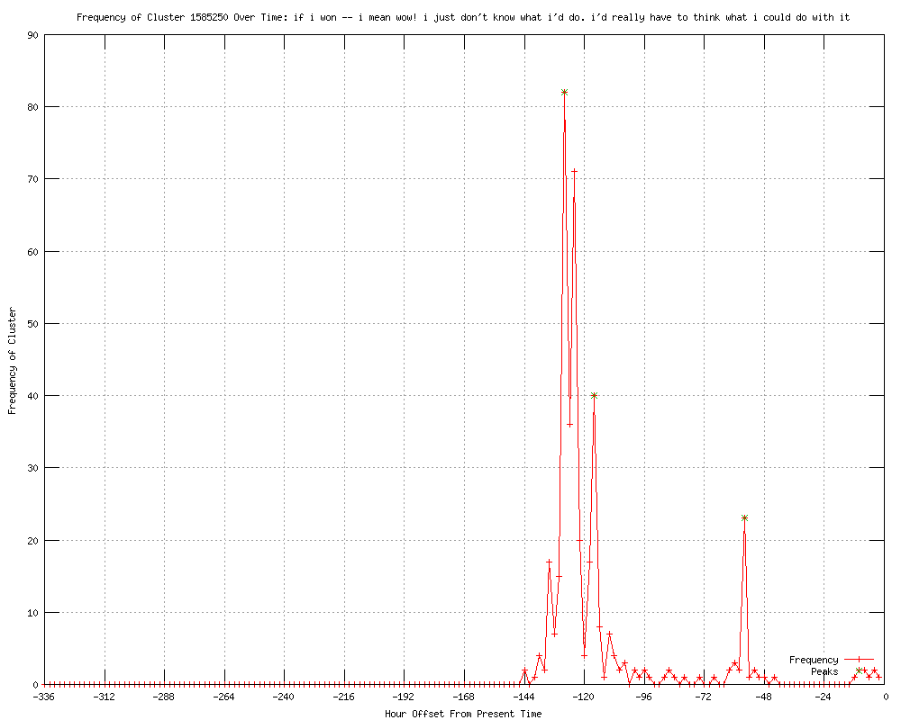 | 39 | if i won -- i mean wow! i just don't know what i'd do. i'd really have to think what i could do with it Urls http://theithacajournal.com/article/20120331/NEWS01/203310314/Americans-bet-nearly-1-5B-win-Mega-Millions-record-jackpot?odyssey=nav|head http://theithacajournal.com/article/20120331/NEWS01/203310314/Americans-bet-nearly-1-5B-win-Mega-Millions-record-jackpot?odyssey=tab|topnews|text|FRONTPAGE http://news-leader.com/usatoday/article/38922901?odyssey=mod|newswell|text|FRONTPAGE|p http://ktvu.com/news/news/local/mega-lottery-fever-sweeps-bay-area/nLgxM/ http://the-review.com/latest%20headlines/2012/03/30/mega-long-odds-for-winning-record-jackpot-1333123603 http://ebz.by/info/US/323066999 http://whas11.com/community/blogs/news-blog/145175975.html http://theeagle.com/nation/Mega-mania-as-jackpot-increases-to--640-million--7070735 http://mercurynews.com/nation-world/ci_20291285/its-mega-mania-lottery-fever-sweeps-nation?source=rss http://the-review.com/latest%20headlines/2012/03/30/mega-mania-as-jackpot-increases-to-640-million http://santafenewmexican.com/localnews/Mega-Millions-jackpot-increases-to--640-million http://myfoxdfw.com/dpp/news/mega-millions-jackpot-increases-to-%24640m-dpgapx-20120330-fc1333135276773 http://nola.com/louisiana-lottery/index.ssf/2012/03/mega_millions_jackpot_prompts.html http://standard.net/node/125480 http://standard.net/stories/2012/03/30/americans-bet-nearly-15b-win-record-jackpot http://contracostatimes.com/nation-world/ci_20291285/its-mega-mania-lottery-fever-sweeps-nation?source=rss http://abclocal.go.com/ktrk/story?section=news/national_world&id=8602184&rss=rss-ktrk-article-8602184 http://krem.com/home/145265435.html http://cbsnews.com/8301-201_162-57407405/winning-mega-millions-numbers-announced/ http://feeds.cbsnews.com/~r/CBSNewsMain/~3/RufgzV8StYQ/ http://wibw.com/home/headlines/Number_Drawn_for_Worlds_Largest_Lottery_Jackpot_145268155.html http://wibw.com/nationalnews/headlines/Number_Drawn_for_Worlds_Largest_Lottery_Jackpot_145268155.html http://boston.com/news/nation/articles/2012/03/30/odds_of_winning_record_lottery_jackpot_1_in_176_m/?rss_id=Top+Stories http://theithacajournal.com/article/20120331/NEWS01/203310314/1124/ http://stargazette.com/article/20120331/NEWS01/203310312/Americans-bet-nearly-1-5B-win-Mega-Millions-record-jackpot?odyssey=tab|topnews|img|FRONTPAGE http://stargazette.com/article/20120331/NEWS01/203310312/Americans-bet-nearly-1-5B-win-Mega-Millions-record-jackpot?odyssey=tab|topnews|text|FRONTPAGE http://stargazette.com/article/20120331/NEWS01/203310312/Americans-bet-nearly-1-5B-win-Mega-Millions-record-jackpot?odyssey=nav|head http://wibw.com/home/headlines/145268155.html http://stargazette.com/article/20120331/NEWS01/203310312/Americans-bet-nearly-1-5B-to-win-Mega-Millions-record-jackpot?odyssey=tab|mostpopular|img|FRONTPAGE http://stargazette.com/article/20120331/NEWS01/203310312/Americans-bet-nearly-1-5B-to-win-Mega-Millions-record-jackpot?odyssey=tab|mostpopular|text|FRONTPAGE http://theithacajournal.com/article/20120331/NEWS01/203310314/Americans-bet-nearly-1-5B-to-win-Mega-Millions-record-jackpot?odyssey=tab|mostpopular|img|FRONTPAGE http://theithacajournal.com/article/20120331/NEWS01/203310314/Americans-bet-nearly-1-5B-to-win-Mega-Millions-record-jackpot?odyssey=tab|mostpopular|text|FRONTPAGE http://newarkadvocate.com/article/20120331/NEWS01/203310304/Players-bet-close-1-5B-win-jackpot?odyssey=tab|topnews|text|Frontpage http://NewarkAdvocate.com/article/20120331/NEWS01/203310304/Players-bet-close-to-1-5B-to-win-jackpot?odyssey=tab|mostpopular|text|FRONTPAGE http://newarkadvocate.com/article/20120331/NEWS01/203310304/Players-bet-close-1-5B-win-jackpot http://newarkadvocate.com/article/20120331/NEWS01/203310304/Players-bet-close-1-5B-win-jackpot?odyssey=mod|newswell|text|Frontpage|s http://stargazette.com/article/20120331/NEWS01/203310312/Americans-bet-nearly-1-5B-win-Mega-Millions-record-jackpot?odyssey=mod|newswell|img|FRONTPAGE|p http://stargazette.com/article/20120331/NEWS01/203310312/Americans-bet-nearly-1-5B-win-Mega-Millions-record-jackpot?odyssey=mod|newswell|text|FRONTPAGE|p http://stargazette.com/article/20120331/NEWS01/203310312/Americans-bet-nearly-1-5B-win-Mega-Millions-record-jackpot?odyssey=mod|newswell|text|FRONTPAGE|s |