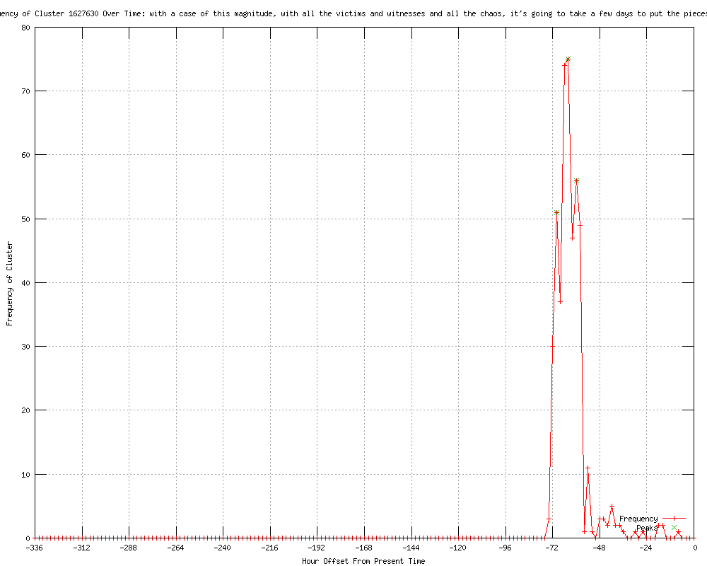 | 16 | with a case of this magnitude, with all the victims and witnesses and all the chaos, it's going to take a few days to put the pieces together Urls http://clickorlando.com/news/Former-student-arrested-in-deadly-college-shooting/-/1637132/10050362/-/1rhx2z/-/index.html http://wibw.com/home/headlines/Former_Student_Arrested_In_California_College_Shooting_That_Killed_7__145869175.html http://kpax.com/news/ex-student-arrested-in-california-college-shooting-that-killed-7/ http://tristatehomepage.com/fulltext?nxd_id=502062 http://cnn.com/2012/04/03/us/california-shooting/index.html?eref=rss_latest http://rss.cnn.com/~r/rss/cnn_topstories/~3/xY6Iv1TIc78/index.html http://cnn.com/2012/04/03/us/california-shooting/index.html?eref=rss_topstories http://edition.cnn.com/2012/04/03/us/california-shooting/index.html?eref=edition http://thedailybeast.com/cheats/2012/04/02/oakland-shooting-suspect-arrested.html http://cnn.com/2012/04/03/us/california-shooting/index.html?eref=rss_crime http://cnn.com/2012/04/03/us/california-shooting/index.html?eref=rss_us http://wibw.com/nationalnews/headlines/Former_Student_Arrested_In_California_College_Shooting_That_Killed_7__145869175.html http://kvia.com/news/30822244/detail.html http://awomansweekly.com/california-college-gunmans-motive-a-mystery-2012-04 http://karthik-mrcool.blogspot.com/2012/04/service-planned-for-7-killed-in.html http://kpax.com/news/ex-student-arrested-in-ca-college-shooting-that-killed-7/ |