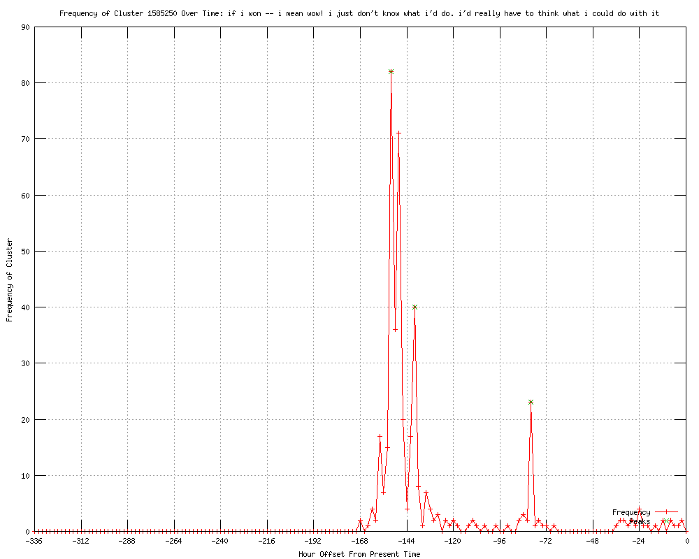 | 39 | if i won -- i mean wow! i just don't know what i'd do. i'd really have to think what i could do with it Urls http://theithacajournal.com/article/20120331/NEWS01/203310314/Americans-bet-nearly-1-5B-win-Mega-Millions-record-jackpot?odyssey=nav|head http://theithacajournal.com/article/20120331/NEWS01/203310314/Americans-bet-nearly-1-5B-win-Mega-Millions-record-jackpot?odyssey=tab|topnews|text|FRONTPAGE http://news-leader.com/usatoday/article/38922901?odyssey=mod|newswell|text|FRONTPAGE|p http://ktvu.com/news/news/local/mega-lottery-fever-sweeps-bay-area/nLgxM/ http://the-review.com/latest%20headlines/2012/03/30/mega-long-odds-for-winning-record-jackpot-1333123603 http://ebz.by/info/US/323066999 http://whas11.com/community/blogs/news-blog/145175975.html http://theeagle.com/nation/Mega-mania-as-jackpot-increases-to--640-million--7070735 http://mercurynews.com/nation-world/ci_20291285/its-mega-mania-lottery-fever-sweeps-nation?source=rss http://the-review.com/latest%20headlines/2012/03/30/mega-mania-as-jackpot-increases-to-640-million http://santafenewmexican.com/localnews/Mega-Millions-jackpot-increases-to--640-million http://myfoxdfw.com/dpp/news/mega-millions-jackpot-increases-to-%24640m-dpgapx-20120330-fc1333135276773 http://nola.com/louisiana-lottery/index.ssf/2012/03/mega_millions_jackpot_prompts.html http://standard.net/node/125480 http://standard.net/stories/2012/03/30/americans-bet-nearly-15b-win-record-jackpot http://contracostatimes.com/nation-world/ci_20291285/its-mega-mania-lottery-fever-sweeps-nation?source=rss http://abclocal.go.com/ktrk/story?section=news/national_world&id=8602184&rss=rss-ktrk-article-8602184 http://krem.com/home/145265435.html http://cbsnews.com/8301-201_162-57407405/winning-mega-millions-numbers-announced/ http://feeds.cbsnews.com/~r/CBSNewsMain/~3/RufgzV8StYQ/ http://wibw.com/home/headlines/Number_Drawn_for_Worlds_Largest_Lottery_Jackpot_145268155.html http://wibw.com/nationalnews/headlines/Number_Drawn_for_Worlds_Largest_Lottery_Jackpot_145268155.html http://boston.com/news/nation/articles/2012/03/30/odds_of_winning_record_lottery_jackpot_1_in_176_m/?rss_id=Top+Stories http://theithacajournal.com/article/20120331/NEWS01/203310314/1124/ http://stargazette.com/article/20120331/NEWS01/203310312/Americans-bet-nearly-1-5B-win-Mega-Millions-record-jackpot?odyssey=tab|topnews|img|FRONTPAGE http://stargazette.com/article/20120331/NEWS01/203310312/Americans-bet-nearly-1-5B-win-Mega-Millions-record-jackpot?odyssey=tab|topnews|text|FRONTPAGE http://stargazette.com/article/20120331/NEWS01/203310312/Americans-bet-nearly-1-5B-win-Mega-Millions-record-jackpot?odyssey=nav|head http://wibw.com/home/headlines/145268155.html http://stargazette.com/article/20120331/NEWS01/203310312/Americans-bet-nearly-1-5B-to-win-Mega-Millions-record-jackpot?odyssey=tab|mostpopular|img|FRONTPAGE http://stargazette.com/article/20120331/NEWS01/203310312/Americans-bet-nearly-1-5B-to-win-Mega-Millions-record-jackpot?odyssey=tab|mostpopular|text|FRONTPAGE http://theithacajournal.com/article/20120331/NEWS01/203310314/Americans-bet-nearly-1-5B-to-win-Mega-Millions-record-jackpot?odyssey=tab|mostpopular|img|FRONTPAGE http://theithacajournal.com/article/20120331/NEWS01/203310314/Americans-bet-nearly-1-5B-to-win-Mega-Millions-record-jackpot?odyssey=tab|mostpopular|text|FRONTPAGE http://newarkadvocate.com/article/20120331/NEWS01/203310304/Players-bet-close-1-5B-win-jackpot?odyssey=tab|topnews|text|Frontpage http://NewarkAdvocate.com/article/20120331/NEWS01/203310304/Players-bet-close-to-1-5B-to-win-jackpot?odyssey=tab|mostpopular|text|FRONTPAGE http://newarkadvocate.com/article/20120331/NEWS01/203310304/Players-bet-close-1-5B-win-jackpot http://newarkadvocate.com/article/20120331/NEWS01/203310304/Players-bet-close-1-5B-win-jackpot?odyssey=mod|newswell|text|Frontpage|s http://stargazette.com/article/20120331/NEWS01/203310312/Americans-bet-nearly-1-5B-win-Mega-Millions-record-jackpot?odyssey=mod|newswell|img|FRONTPAGE|p http://stargazette.com/article/20120331/NEWS01/203310312/Americans-bet-nearly-1-5B-win-Mega-Millions-record-jackpot?odyssey=mod|newswell|text|FRONTPAGE|p http://stargazette.com/article/20120331/NEWS01/203310312/Americans-bet-nearly-1-5B-win-Mega-Millions-record-jackpot?odyssey=mod|newswell|text|FRONTPAGE|s |