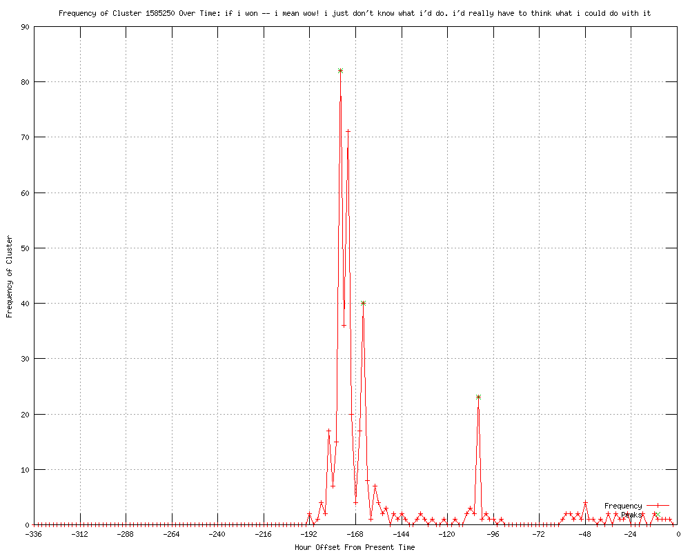 | 39 | if i won -- i mean wow! i just don't know what i'd do. i'd really have to think what i could do with it Urls http://theithacajournal.com/article/20120331/NEWS01/203310314/Americans-bet-nearly-1-5B-win-Mega-Millions-record-jackpot?odyssey=nav|head http://theithacajournal.com/article/20120331/NEWS01/203310314/Americans-bet-nearly-1-5B-win-Mega-Millions-record-jackpot?odyssey=tab|topnews|text|FRONTPAGE http://news-leader.com/usatoday/article/38922901?odyssey=mod|newswell|text|FRONTPAGE|p http://ktvu.com/news/news/local/mega-lottery-fever-sweeps-bay-area/nLgxM/ http://the-review.com/latest%20headlines/2012/03/30/mega-long-odds-for-winning-record-jackpot-1333123603 http://ebz.by/info/US/323066999 http://whas11.com/community/blogs/news-blog/145175975.html http://theeagle.com/nation/Mega-mania-as-jackpot-increases-to--640-million--7070735 http://mercurynews.com/nation-world/ci_20291285/its-mega-mania-lottery-fever-sweeps-nation?source=rss http://the-review.com/latest%20headlines/2012/03/30/mega-mania-as-jackpot-increases-to-640-million http://santafenewmexican.com/localnews/Mega-Millions-jackpot-increases-to--640-million http://myfoxdfw.com/dpp/news/mega-millions-jackpot-increases-to-%24640m-dpgapx-20120330-fc1333135276773 http://nola.com/louisiana-lottery/index.ssf/2012/03/mega_millions_jackpot_prompts.html http://standard.net/node/125480 http://standard.net/stories/2012/03/30/americans-bet-nearly-15b-win-record-jackpot http://contracostatimes.com/nation-world/ci_20291285/its-mega-mania-lottery-fever-sweeps-nation?source=rss http://abclocal.go.com/ktrk/story?section=news/national_world&id=8602184&rss=rss-ktrk-article-8602184 http://krem.com/home/145265435.html http://cbsnews.com/8301-201_162-57407405/winning-mega-millions-numbers-announced/ http://feeds.cbsnews.com/~r/CBSNewsMain/~3/RufgzV8StYQ/ http://wibw.com/home/headlines/Number_Drawn_for_Worlds_Largest_Lottery_Jackpot_145268155.html http://wibw.com/nationalnews/headlines/Number_Drawn_for_Worlds_Largest_Lottery_Jackpot_145268155.html http://boston.com/news/nation/articles/2012/03/30/odds_of_winning_record_lottery_jackpot_1_in_176_m/?rss_id=Top+Stories http://theithacajournal.com/article/20120331/NEWS01/203310314/1124/ http://stargazette.com/article/20120331/NEWS01/203310312/Americans-bet-nearly-1-5B-win-Mega-Millions-record-jackpot?odyssey=tab|topnews|img|FRONTPAGE http://stargazette.com/article/20120331/NEWS01/203310312/Americans-bet-nearly-1-5B-win-Mega-Millions-record-jackpot?odyssey=tab|topnews|text|FRONTPAGE http://stargazette.com/article/20120331/NEWS01/203310312/Americans-bet-nearly-1-5B-win-Mega-Millions-record-jackpot?odyssey=nav|head http://wibw.com/home/headlines/145268155.html http://stargazette.com/article/20120331/NEWS01/203310312/Americans-bet-nearly-1-5B-to-win-Mega-Millions-record-jackpot?odyssey=tab|mostpopular|img|FRONTPAGE http://stargazette.com/article/20120331/NEWS01/203310312/Americans-bet-nearly-1-5B-to-win-Mega-Millions-record-jackpot?odyssey=tab|mostpopular|text|FRONTPAGE http://theithacajournal.com/article/20120331/NEWS01/203310314/Americans-bet-nearly-1-5B-to-win-Mega-Millions-record-jackpot?odyssey=tab|mostpopular|img|FRONTPAGE http://theithacajournal.com/article/20120331/NEWS01/203310314/Americans-bet-nearly-1-5B-to-win-Mega-Millions-record-jackpot?odyssey=tab|mostpopular|text|FRONTPAGE http://newarkadvocate.com/article/20120331/NEWS01/203310304/Players-bet-close-1-5B-win-jackpot?odyssey=tab|topnews|text|Frontpage http://NewarkAdvocate.com/article/20120331/NEWS01/203310304/Players-bet-close-to-1-5B-to-win-jackpot?odyssey=tab|mostpopular|text|FRONTPAGE http://newarkadvocate.com/article/20120331/NEWS01/203310304/Players-bet-close-1-5B-win-jackpot http://newarkadvocate.com/article/20120331/NEWS01/203310304/Players-bet-close-1-5B-win-jackpot?odyssey=mod|newswell|text|Frontpage|s http://stargazette.com/article/20120331/NEWS01/203310312/Americans-bet-nearly-1-5B-win-Mega-Millions-record-jackpot?odyssey=mod|newswell|img|FRONTPAGE|p http://stargazette.com/article/20120331/NEWS01/203310312/Americans-bet-nearly-1-5B-win-Mega-Millions-record-jackpot?odyssey=mod|newswell|text|FRONTPAGE|p http://stargazette.com/article/20120331/NEWS01/203310312/Americans-bet-nearly-1-5B-win-Mega-Millions-record-jackpot?odyssey=mod|newswell|text|FRONTPAGE|s |