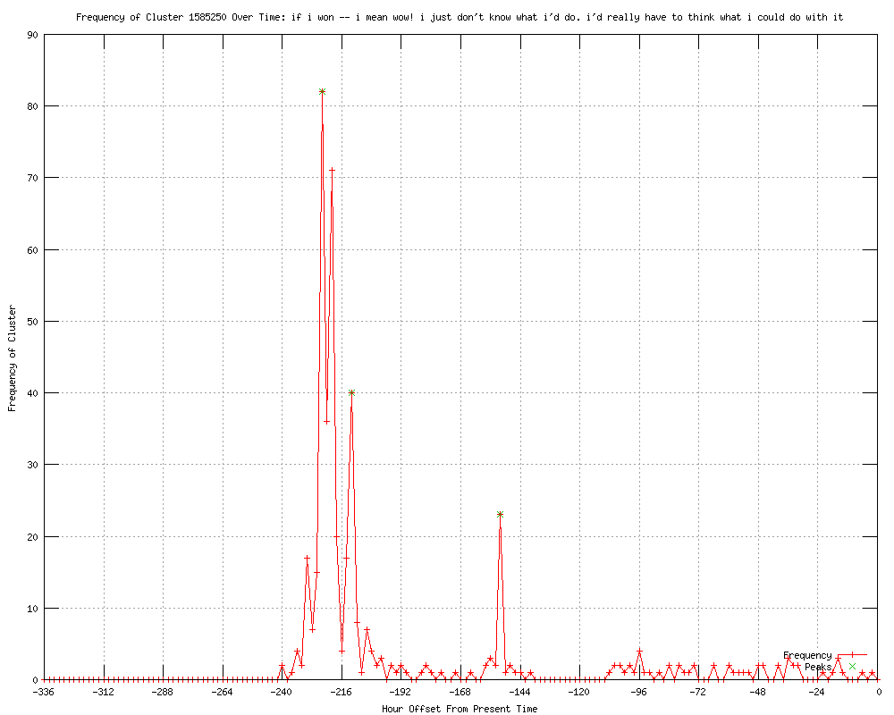 | 39 | if i won -- i mean wow! i just don't know what i'd do. i'd really have to think what i could do with it Urls http://theithacajournal.com/article/20120331/NEWS01/203310314/Americans-bet-nearly-1-5B-win-Mega-Millions-record-jackpot?odyssey=nav|head http://theithacajournal.com/article/20120331/NEWS01/203310314/Americans-bet-nearly-1-5B-win-Mega-Millions-record-jackpot?odyssey=tab|topnews|text|FRONTPAGE http://news-leader.com/usatoday/article/38922901?odyssey=mod|newswell|text|FRONTPAGE|p http://ktvu.com/news/news/local/mega-lottery-fever-sweeps-bay-area/nLgxM/ http://the-review.com/latest%20headlines/2012/03/30/mega-long-odds-for-winning-record-jackpot-1333123603 http://ebz.by/info/US/323066999 http://whas11.com/community/blogs/news-blog/145175975.html http://theeagle.com/nation/Mega-mania-as-jackpot-increases-to--640-million--7070735 http://mercurynews.com/nation-world/ci_20291285/its-mega-mania-lottery-fever-sweeps-nation?source=rss http://the-review.com/latest%20headlines/2012/03/30/mega-mania-as-jackpot-increases-to-640-million http://santafenewmexican.com/localnews/Mega-Millions-jackpot-increases-to--640-million http://myfoxdfw.com/dpp/news/mega-millions-jackpot-increases-to-%24640m-dpgapx-20120330-fc1333135276773 http://nola.com/louisiana-lottery/index.ssf/2012/03/mega_millions_jackpot_prompts.html http://standard.net/node/125480 http://standard.net/stories/2012/03/30/americans-bet-nearly-15b-win-record-jackpot http://contracostatimes.com/nation-world/ci_20291285/its-mega-mania-lottery-fever-sweeps-nation?source=rss http://abclocal.go.com/ktrk/story?section=news/national_world&id=8602184&rss=rss-ktrk-article-8602184 http://krem.com/home/145265435.html http://cbsnews.com/8301-201_162-57407405/winning-mega-millions-numbers-announced/ http://feeds.cbsnews.com/~r/CBSNewsMain/~3/RufgzV8StYQ/ http://wibw.com/home/headlines/Number_Drawn_for_Worlds_Largest_Lottery_Jackpot_145268155.html http://wibw.com/nationalnews/headlines/Number_Drawn_for_Worlds_Largest_Lottery_Jackpot_145268155.html http://boston.com/news/nation/articles/2012/03/30/odds_of_winning_record_lottery_jackpot_1_in_176_m/?rss_id=Top+Stories http://theithacajournal.com/article/20120331/NEWS01/203310314/1124/ http://stargazette.com/article/20120331/NEWS01/203310312/Americans-bet-nearly-1-5B-win-Mega-Millions-record-jackpot?odyssey=tab|topnews|img|FRONTPAGE http://stargazette.com/article/20120331/NEWS01/203310312/Americans-bet-nearly-1-5B-win-Mega-Millions-record-jackpot?odyssey=tab|topnews|text|FRONTPAGE http://stargazette.com/article/20120331/NEWS01/203310312/Americans-bet-nearly-1-5B-win-Mega-Millions-record-jackpot?odyssey=nav|head http://wibw.com/home/headlines/145268155.html http://stargazette.com/article/20120331/NEWS01/203310312/Americans-bet-nearly-1-5B-to-win-Mega-Millions-record-jackpot?odyssey=tab|mostpopular|img|FRONTPAGE http://stargazette.com/article/20120331/NEWS01/203310312/Americans-bet-nearly-1-5B-to-win-Mega-Millions-record-jackpot?odyssey=tab|mostpopular|text|FRONTPAGE http://theithacajournal.com/article/20120331/NEWS01/203310314/Americans-bet-nearly-1-5B-to-win-Mega-Millions-record-jackpot?odyssey=tab|mostpopular|img|FRONTPAGE http://theithacajournal.com/article/20120331/NEWS01/203310314/Americans-bet-nearly-1-5B-to-win-Mega-Millions-record-jackpot?odyssey=tab|mostpopular|text|FRONTPAGE http://newarkadvocate.com/article/20120331/NEWS01/203310304/Players-bet-close-1-5B-win-jackpot?odyssey=tab|topnews|text|Frontpage http://NewarkAdvocate.com/article/20120331/NEWS01/203310304/Players-bet-close-to-1-5B-to-win-jackpot?odyssey=tab|mostpopular|text|FRONTPAGE http://newarkadvocate.com/article/20120331/NEWS01/203310304/Players-bet-close-1-5B-win-jackpot http://newarkadvocate.com/article/20120331/NEWS01/203310304/Players-bet-close-1-5B-win-jackpot?odyssey=mod|newswell|text|Frontpage|s http://stargazette.com/article/20120331/NEWS01/203310312/Americans-bet-nearly-1-5B-win-Mega-Millions-record-jackpot?odyssey=mod|newswell|img|FRONTPAGE|p http://stargazette.com/article/20120331/NEWS01/203310312/Americans-bet-nearly-1-5B-win-Mega-Millions-record-jackpot?odyssey=mod|newswell|text|FRONTPAGE|p http://stargazette.com/article/20120331/NEWS01/203310312/Americans-bet-nearly-1-5B-win-Mega-Millions-record-jackpot?odyssey=mod|newswell|text|FRONTPAGE|s |