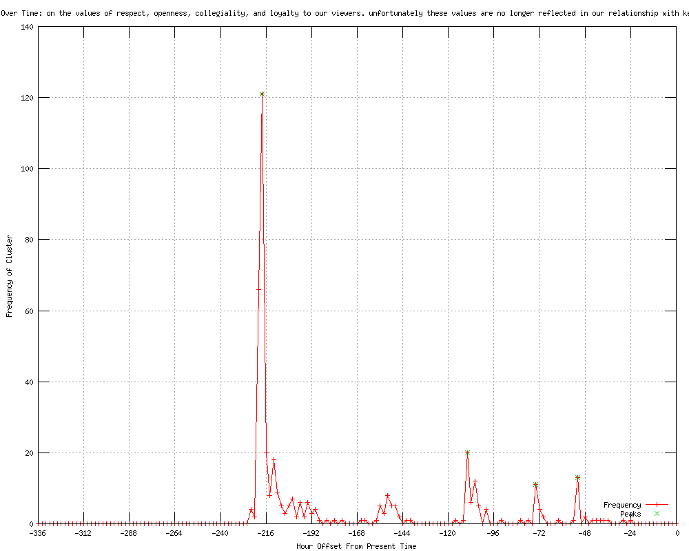 | 25 | current was ... founded on the values of respect, openness, collegiality and loyalty to our viewers Urls http://wcti12.com/entertainment/30805584/detail.html http://justnews.com/Current-TV-severs-ties-with-Keith-Olbermann/-/1717430/9852000/-/9q2ew5z/-/index.html http://cnn.com/2012/03/30/showbiz/current-tv-olbermann/index.html?eref=rss_us http://nbcmontana.com/entertainment/30805584/detail.html http://edition.cnn.com/2012/03/30/showbiz/current-tv-olbermann/index.html?eref=rss_us http://clickorlando.com/entertainment/Olbermann-tells-Letterman-he-screwed-up/-/1636654/10172810/-/nhb5c6z/-/index.html http://ktvz.com/entertainment/30829338/detail.html http://nbcmontana.com/entertainment/30829338/detail.html http://kjct8.com/entertainment/30829338/detail.html http://wcyb.com/entertainment/30829338/detail.html http://kesq.com/entertainment/30829338/detail.html http://foxtricities.com/entertainment/30829338/detail.html http://ktxs.com/entertainment/30829338/detail.html http://localnews8.com/entertainment/30829338/detail.html http://10news.com/entertainment/30829338/detail.html http://kmbc.com/kcwe/30829338/detail.html http://cnn.com/2012/04/03/showbiz/olbermann-letterman/index.html?eref=rss_showbiz http://cnn.com/2012/04/03/showbiz/olbermann-letterman/index.html?eref=rss_latest http://rss.cnn.com/%7Er/rss/cnn_showbiz/%7E3/pYKoYd-n1DA/index.html http://kvia.com/entertainment/30829338/detail.html http://wcti12.com/entertainment/30829338/detail.html?source=hottopix http://rss.cnn.com/~r/rss/cnn_topstories/~3/KUSgCGV-zE0/index.html http://cnn.com/2012/04/03/showbiz/olbermann-letterman/index.html?eref=rss_topstories http://wibw.com/home/headlines/Olbermann_Tells_Letterman_He_Screwed_Up_On_Current_TV_Deal_146162975.html http://wibw.com/nationalnews/headlines/Olbermann_Tells_Letterman_He_Screwed_Up_On_Current_TV_Deal_146162975.html |
