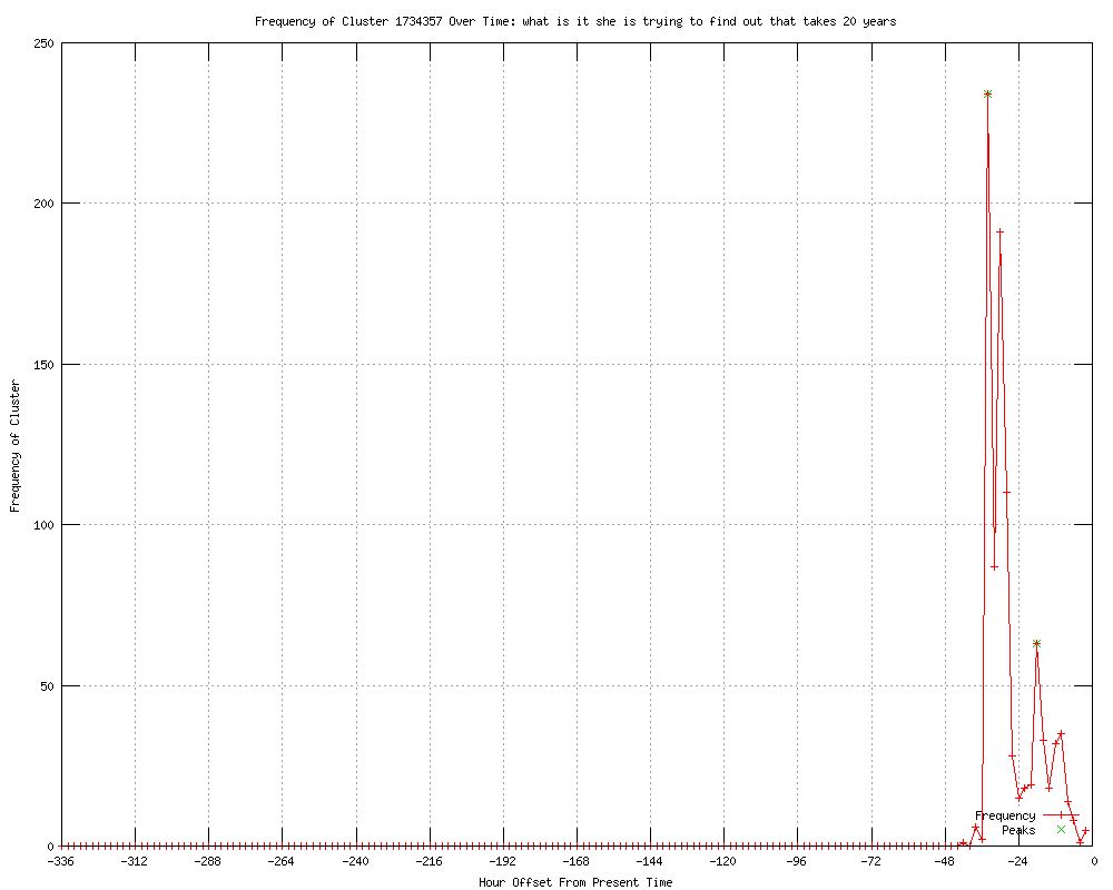 | 95 | what is she trying to find out that takes 20 years Urls http://wonderwall.msn.com/entertainment/memorable-moments-in-mike-wallaces-career-1675571.story http://utsandiego.com/news/2012/apr/08/memorable-moments-in-mike-wallaces-career/ http://cbsnews.com/8301-501368_162-57411050/memorable-moments-in-mike-wallaces-career/ http://online.wsj.com/article/SB10001424052702303815404577331603942771814.html?mod=rss_asia_whats_news http://newson6.com/story/17360400/memorable-moments-in-mike-wallaces-career http://wgem.com/story/17360400/memorable-moments-in-mike-wallaces-career http://wral.com/entertainment/story/10957993/ http://omg.yahoo.com/news/memorable-moments-mike-wallaces-career-193707187.html http://entertainment.msn.com/tv/article.aspx?news=716704&affid=100055 http://kwes.com/story/17360400/memorable-moments-in-mike-wallaces-career http://kswo.com/story/17360400/memorable-moments-in-mike-wallaces-career http://wtol.com/story/17360400/memorable-moments-in-mike-wallaces-career http://wbal.com/article/ap?articleurl=http%3a%2f%2fhosted.ap.org%2fdynamic%2fstories%2fU%2fUS_OBIT_MIKE_WALLACE_MEMORABLE_MOMENTS%3fSITE%3dWBAL%26SECTION%3dHOME%26TEMPLATE%3dDEFAULT http://kcbd.com/story/17360400/memorable-moments-in-mike-wallaces-career http://kusi.com/story/17360400/memorable-moments-in-mike-wallaces-career http://wrcbtv.com/story/17360400/memorable-moments-in-mike-wallaces-career http://wrex.com/story/17360400/memorable-moments-in-mike-wallaces-career http://waff.com/story/17360400/memorable-moments-in-mike-wallaces-career http://knoe.com/story/17360400/memorable-moments-in-mike-wallaces-career http://wbay.com/story/17360400/memorable-moments-in-mike-wallaces-career http://ktvn.com/story/17360400/memorable-moments-in-mike-wallaces-career http://news.yahoo.com/memorable-moments-mike-wallaces-career-193707187.html http://wlbt.com/story/17360400/memorable-moments-in-mike-wallaces-career http://mysanantonio.com/news/article/Memorable-moments-in-Mike-Wallace-s-career-3467350.php http://miamiherald.com/2012/04/08/2737891/memorable-moments-in-mike-wallaces.html http://wric.com/story/17360400/memorable-moments-in-mike-wallaces-career http://wten.com/story/17360400/memorable-moments-in-mike-wallaces-career http://whbf.com/story/17360400/memorable-moments-in-mike-wallaces-career http://ktiv.com/story/17360400/memorable-moments-in-mike-wallaces-career http://theolympian.com/2012/04/08/2062159/memorable-moments-in-mike-wallaces.html http://khnl.com/story/17360400/memorable-moments-in-mike-wallaces-career http://koamtv.com/story/17360400/memorable-moments-in-mike-wallaces-career http://newstimes.com/news/article/Memorable-moments-in-Mike-Wallace-s-career-3467350.php http://wthr.com/story/17360400/memorable-moments-in-mike-wallaces-career http://kmph.com/story/17360400/memorable-moments-in-mike-wallaces-career http://kwqc.com/story/17360400/memorable-moments-in-mike-wallaces-career http://wkrn.com/story/17360400/memorable-moments-in-mike-wallaces-career http://wect.com/story/17360400/memorable-moments-in-mike-wallaces-career http://fox28.com/story/17360400/memorable-moments-in-mike-wallaces-career http://wmbfnews.com/story/17360400/memorable-moments-in-mike-wallaces-career http://kcautv.com/story/17360400/memorable-moments-in-mike-wallaces-career http://wsfa.com/story/17360400/memorable-moments-in-mike-wallaces-career http://wandtv.com/story/17360400/memorable-moments-in-mike-wallaces-career http://kxxv.com/story/17360400/memorable-moments-in-mike-wallaces-career http://news9.com/story/17360400/memorable-moments-in-mike-wallaces-career http://kansascity.com/2012/04/08/3543043/memorable-moments-in-mike-wallaces.html#storylink=rss http://washingtontimes.feedsportal.com/c/34503/f/629237/s/1e33fd61/l/0L0Swashingtontimes0N0Cnews0C20A120Capr0C80Cmemorable0Emoments0Ein0Emike0Ewallaces0Ecareer0C0Dutm0Isource0FRSS0IFeed0Gutm0Imedium0FRSS/story01.htm http://kjonline.com/r?19=961&43=563887&44=146597845&32=10357&7=622157&40=http%3A%2F%2Fwww.kjonline.com%2Fnews%2FMemorable-moments-in-Mike-Wallaces-career.html http://washingtontimes.feedsportal.com/c/34503/f/629227/s/1e33de8d/l/0L0Swashingtontimes0N0Cnews0C20A120Capr0C80Cmemorable0Emoments0Ein0Emike0Ewallaces0Ecareer0C0Dutm0Isource0FRSS0IFeed0Gutm0Imedium0FRSS/story01.htm http://klkntv.com/story/17360400/memorable-moments-in-mike-wallaces-career http://washingtontimes.feedsportal.com/c/34503/f/629421/s/1e33e058/l/0L0Swashingtontimes0N0Cnews0C20A120Capr0C80Cmemorable0Emoments0Ein0Emike0Ewallaces0Ecareer0C0Dutm0Isource0FRSS0IFeed0Gutm0Imedium0FRSS/story01.htm http://onlinesentinel.com/r?19=961&43=565492&44=146597845&32=10362&7=622162&40=http%3A%2F%2Fwww.onlinesentinel.com%2Fnews%2FMemorable-moments-in-Mike-Wallaces-career.html http://sacbee.com/2012/04/08/4399390/memorable-moments-in-mike-wallaces.html#mi_rss=Latest%20News http://entertainment.msn.com/tv/article.aspx?news=716739&affid=100055 http://news-sentinel.com/apps/pbcs.dll/article?AID=/20120408/ENT/120409614 http://news-sentinel.com/apps/pbcs.dll/article?AID=/20120408/ENT/120409614/1009 http://newsvine.com/_news/2012/04/08/11086020-memorable-moments-in-mike-wallaces-career http://news-sentinel.com/apps/pbcs.dll/article?AID=/20120408/ENT/120409614/1009/SPORTS05 http://news-sentinel.com/apps/pbcs.dll/article?AID=/20120408/ENT/120409614/1009/LIVING02 http://news-sentinel.com/apps/pbcs.dll/article?AID=/20120408/ENT/120409614/1009/LIVING01 http://news-sentinel.com/apps/pbcs.dll/article?AID=/20120408/ENT/120409614/1009/PREPSPORTS http://broadcastnewsroom.com/articles/viewarticle.jsp?id=1964048 http://news-sentinel.com/apps/pbcs.dll/article?AID=/20120408/ENT/120409614/1009/SPORTS http://news-sentinel.com/apps/pbcs.dll/article?AID=/20120408/ENT/120409614/1009/LARSON http://news-sentinel.com/apps/pbcs.dll/article?AID=/20120408/ENT/120409614/1009/TOPHEADLINES http://idahostatesman.com/2012/04/08/2068006/memorable-moments-in-mike-wallaces.html#storylink=rss http://news-sentinel.com/apps/pbcs.dll/article?AID=/20120408/ENT/1204
