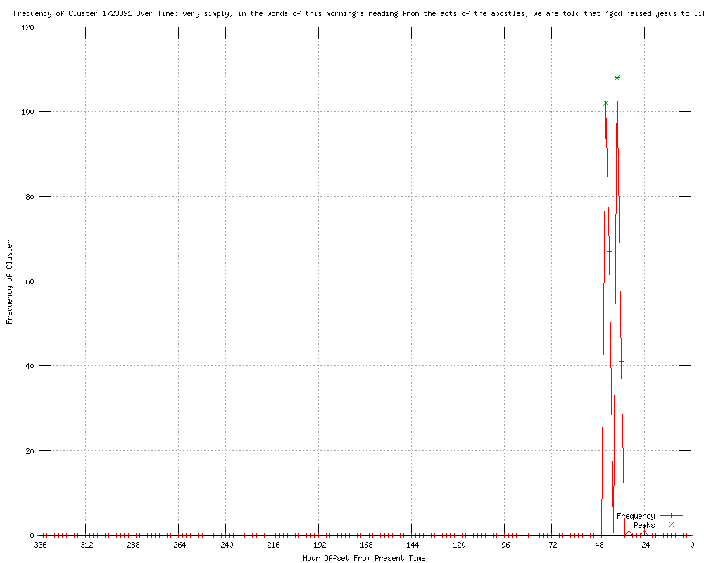| 321 | very simply, in the words of this morning's reading from the acts of the apostles, we are told that 'god raised jesus to life' Urls http://uk.news.yahoo.com/archbishops-easter-appeal-young-051754734.html http://wigantoday.net/news/national-news/archbishop-s-easter-appeal-to-young-1-4430570 http://whitbygazette.co.uk/news/national/archbishop-s-easter-appeal-to-young-1-4430570 http://berwick-advertiser.co.uk/news/uk-headlines/archbishop-s-easter-appeal-to-young-1-2223241 http://pendletoday.co.uk/news/national-news/archbishop-s-easter-appeal-to-young-1-4430570 http://ripongazette.co.uk/news/national/archbishop-s-easter-appeal-to-young-1-4430570 http://expressandstar.com/uk/uk-news/2012/04/08/archbishops-easter-appeal-to-young/ http://ripleyandheanornews.co.uk/news/national/archbishop-s-easter-appeal-to-young-1-4430570 http://eastwoodadvertiser.co.uk/news/national/archbishop-s-easter-appeal-to-young-1-4430570 http://pocklingtonpost.co.uk/news/national/archbishop-s-easter-appeal-to-young-1-4430570 http://thestar.co.uk/news/national/archbishop-s-easter-appeal-to-young-1-4430570 http://newspostleader.co.uk/news/national-news/archbishop-s-easter-appeal-to-young-1-4430570 http://yorkshireeveningpost.co.uk/news/national-news/archbishop-s-easter-appeal-to-young-1-4430570 http://morpethherald.co.uk/news/national-news/archbishop-s-easter-appeal-to-young-1-4430570 http://matlockmercury.co.uk/news/national/archbishop-s-easter-appeal-to-young-1-4430570 http://dunstabletoday.co.uk/news/national/archbishop-s-easter-appeal-to-young-1-3714174 http://mirfieldreporter.co.uk/news/national/archbishop-s-easter-appeal-to-young-1-4430570 http://doncasterfreepress.co.uk/news/national-news/archbishop-s-easter-appeal-to-young-1-4430570 http://todmordennews.co.uk/news/national/archbishop-s-easter-appeal-to-young-1-4430570 http://bridlingtonfreepress.co.uk/news/national/archbishop-s-easter-appeal-to-young-1-4430570 http://southyorkshiretimes.co.uk/news/national-news/archbishop-s-easter-appeal-to-young-1-4430570 http://selbytimes.co.uk/news/national-news/archbishop-s-easter-appeal-to-young-1-4430570 http://wakefieldexpress.co.uk/news/national/archbishop-s-easter-appeal-to-young-1-4430570 http://batleynews.co.uk/news/national/archbishop-s-easter-appeal-to-young-1-4430570 http://worksopguardian.co.uk/news/national-news/archbishop-s-easter-appeal-to-young-1-4430570 http://dewsburyreporter.co.uk/news/national/archbishop-s-easter-appeal-to-young-1-4430570 http://newsguardian.co.uk/news/national-news/archbishop-s-easter-appeal-to-young-1-4430570 http://tringtoday.co.uk/news/national/archbishop-s-easter-appeal-to-young-1-3714174 http://hastingsobserver.co.uk/news/national-news/archbishop-s-easter-appeal-to-young-1-3714174 http://blackpoolgazette.co.uk/news/national/archbishop-s-easter-appeal-to-young-1-4430570 http://marketrasenmail.co.uk/news/national-news/archbishop-s-easter-appeal-to-young-1-3714174 http://sthelensreporter.co.uk/news/national/archbishop-s-easter-appeal-to-young-1-4430570 http://lancasterguardian.co.uk/news/national-news/archbishop-s-easter-appeal-to-young-1-4430570 http://clitheroeadvertiser.co.uk/news/national-news/archbishop-s-easter-appeal-to-young-1-4430570 http://lakelandecho.co.uk/news/national-news/archbishop-s-easter-appeal-to-young-1-4430570 http://wetherbynews.co.uk/news/national/archbishop-s-easter-appeal-to-young-1-4430570 http://newsletter.co.uk/news/national/archbishop-s-easter-appeal-to-young-1-3714174 http://longridgenews.co.uk/news/national/archbishop-s-easter-appeal-to-young-1-4430570 http://rutland-times.co.uk/news/national-news/archbishop-s-easter-appeal-to-young-1-3714174 http://bucksherald.co.uk/news/national-news/archbishop-s-easter-appeal-to-young-1-3714174 http://derbyshiretimes.co.uk/news/national/archbishop-s-easter-appeal-to-young-1-4430570 http://hemeltoday.co.uk/news/national/archbishop-s-easter-appeal-to-young-1-3714174 http://lynnnews.co.uk/news/national-news/archbishop-s-easter-appeal-to-young-1-3714174 http://chichester.co.uk/news/national/archbishop-s-easter-appeal-to-young-1-3714174 http://garstangcourier.co.uk/news/national/archbishop-s-easter-appeal-to-young-1-4430570 http://gainsboroughstandard.co.uk/news/national-news/archbishop-s-easter-appeal-to-young-1-4430570 http://haverhillecho.co.uk/news/national-news/archbishop-s-easter-appeal-to-young-1-3714174 http://thisisjersey.com/news/uk-news/2012/04/08/archbishops-easter-appeal-to-young/ http://da.feedsportal.com/c/845/f/464365/s/1e3036e2/l/0L0Sbelfasttelegraph0O0Cnews0Clocal0Enational0Cuk0Carchbishops0Eeaster0Eappeal0Eto0Eyoung0E161419780Bhtml0Dr0FRSS/ia1.htm http://peterboroughtoday.co.uk/news/national-news/archbishop-s-easter-appeal-to-young-1-3714174 http://leightonbuzzardonline.co.uk/news/national/archbishop-s-easter-appeal-to-young-1-3714174 http://leighreporter.co.uk/news/national/archbishop-s-easter-appeal-to-young-1-4430570 http://chorley-guardian.co.uk/news/national/archbishop-s-easter-appeal-to-young-1-4430570 http://warwickcourier.co.uk/news/national/archbishop-s-easter-appeal-to-young-1-3714174 http://harboroughmail.co.uk/news/national/archbishop-s-easter-appeal-to-young-1-3714174 http://fenlandcitizen.co.uk/news/national-news/archbishop-s-easter-appeal-to-young-1-3714174 http://thisisguernsey.com/news/uk-news/2012/04/08/archbishops-easter-appeal-to-young/ http://worthingherald.co.uk/news/national/archbishop-s-easter-appeal-to-young-1-3714174 http://westsussextoday.co.uk/news/national/archbishop-s-easter-appeal-to-young-1-3714174 http://shieldsgazette.com/news/national-news/archbishop-s-easter-appeal-to-young-1-4430570 http://northantset.co.uk/news/national/archbishop-s-easter-appeal-to-young-1-3714174 http://burnleyexpress.net/news/national-news/archbishop-s-easter-appeal-to-young-1-4430570 http://hebdenbridgetimes.co.uk/news/national/archbishop-s-easter-appeal-to-young-1-4430570 http://brighouseecho.co.uk/news/national/archbishop-s-easter-appeal-to-young-1-4430570 http://midhurstandpetworth.co.uk/