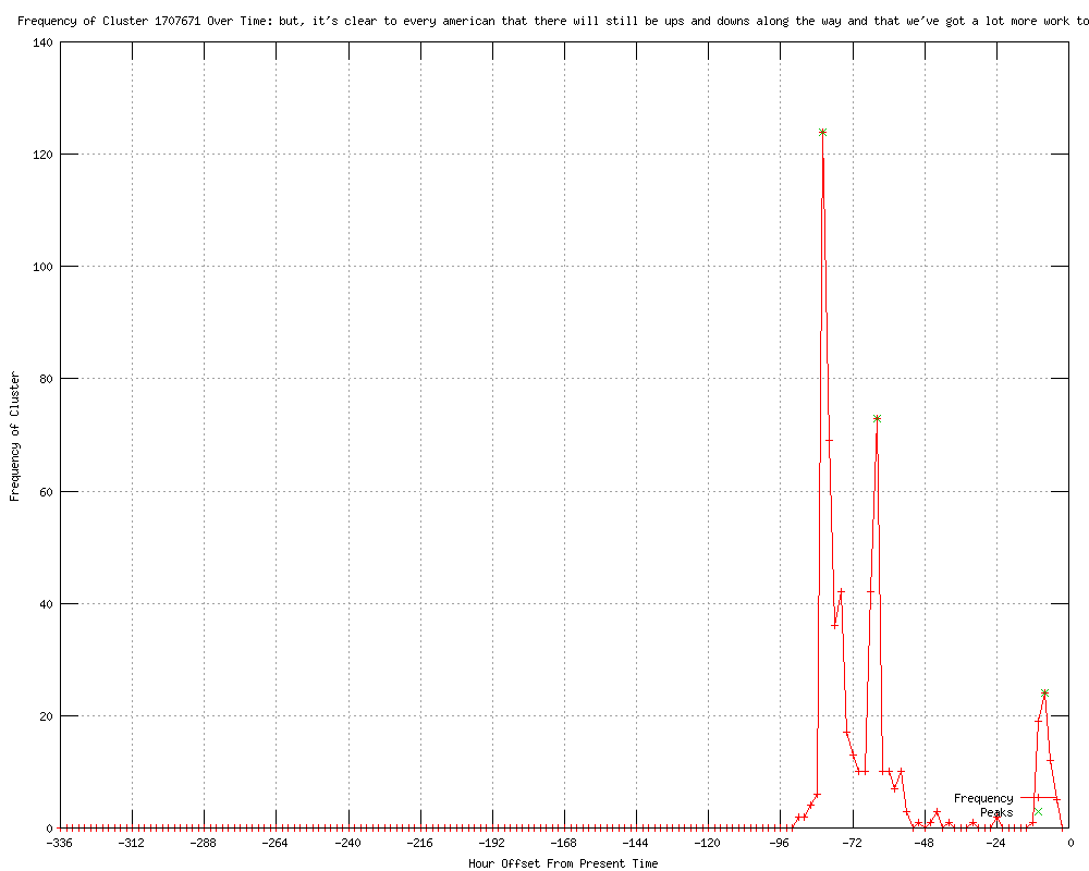 | 5 | but, it's clear to every american that there will still be ups and downs along the way and that we've got a lot more work to do Urls http://us.rd.yahoo.com/finance/external/bloomberg/rss/SIG=13chc5122/*http://www.bloomberg.com/news/2012-04-07/employment-increase-in-u-s-trails-most-pessimistic-forecasts.html?cmpid=yhoo http://businessweek.com/news/2012-04-06/obama-may-get-election-boost-as-economists-see-more-jobs-added http://bloomberg.com/news/2012-04-06/obama-may-get-election-boost-as-economists-see-more-jobs-added.html http://bloomberg.com/news/2012-04-06/obama-may-get-election-boost-as-economists-see-more-jobs-added.html?cmpid= http://investmentwatchblog.com/jobs-data-breaks-pattern-that-was-boosting-re-election/ |