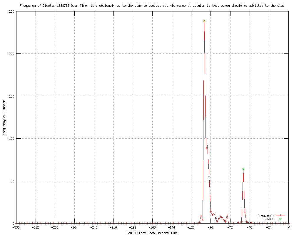 | 65 | his personal opinion is that women should be admitted Urls http://rssreader.blogspot.com/2012/04/y-alert-yahoo-news-latest-news_2354.html http://hotair.com/archives/2012/04/05/white-house-weighs-in-on-augusta-nationals-membership-policy/ http://news.yahoo.com/obama-weighs-augusta-golf-club-women-row-172625956--golf.html http://wkzo.com/news/articles/2012/apr/05/obama-thinks-augusta-golf-club-should-allow-women-white-house/ http://uk.reuters.com/article/2012/04/05/golf-masters-obama-idUKL2E8F54Q020120405?feedType=RSS&feedName=golfNews http://publicbroadcasting.net/wkyu/news.newsmain/article/0/0/1918693/US/Obama.thinks.Augusta.golf.club.should.allow.women.White.House http://reuters.com/article/2012/04/05/us-golf-masters-obama-idUSBRE8340YK20120405?feedType=RSS&feedName=domesticNews http://us.rd.yahoo.com/finance/external/reuters/rss/SIG=12kildan7/*http://www.reuters.com/article/2012/04/05/golf-masters-obama-idUSL2E8F54Q020120405?feedType=RSS&feedName=technologySector&rpc=43 http://bobsblitz.com/2012/04/president-obama-weighs-in-on-augusta.html http://publicbroadcasting.net/wabe/news.newsmain/article/0/0/1918693/US/Obama.thinks.Augusta.golf.club.should.allow.women.White.House http://publicbroadcasting.net/wuky/news.newsmain/article/0/0/1918693/US/Obama.thinks.Augusta.golf.club.should.allow.women.White.House http://msnbc.msn.com/id/46967513 http://au.sports.yahoo.com/golf/news/article/-/13359632/obama-thinks-augusta-golf-club-should-allow-women-w-house/ http://moneycontrol.com/news/wire-news/obama-thinks-augusta-golf-club-should-allow-women-whouse_689496.html http://in.reuters.com/article/2012/04/05/golf-masters-obama-idINL2E8F54Q020120405?feedType=RSS&feedName=golfNews http://thegatewaypundit.com/2012/04/he-cant-help-it-obama-inserts-himself-into-augusta-national-golf-club-politics/ http://thespainforum.com/f234/obama-thinks-augusta-golf-club-women-house-381609/ http://reuters.com/article/2012/04/05/us-golf-masters-obama-idUSBRE83415N20120405?feedType=RSS&feedName=sportsNews http://thegrindstone.com/office-politics/obama-wants-women-to-play-golf-at-augusta-too-720/?utm_source=feedburner&utm_medium=feed&utm_campaign=Feed%3A+b5media%2FTheGrindstone+%28The+Grindstone%29 http://kgmi.com/Obama-thinks-Augusta-golf-club-should-allow-women-/11461894?newsId=136090 http://whitehouse.filesatweb.com/2012/04/obama-thinks-augusta-golf-club-should_4223.html http://americancommissars.blogspot.com/2012/04/obama-thinks-augusta-golf-club-should.html http://lfpress.com/sports/golf/2012/04/05/19599906.html http://cnews.canoe.ca/CNEWS/World/2012/04/05/19599876.html?cid=rssnews http://theglobeandmail.com/news/world/obama-takes-a-swing-at-all-male-augusta-national/article2393673/?utm_medium=Feeds%3A%20RSS%2FAtom&utm_source=Home&utm_content=2393673 http://theglobeandmail.com/news/world/obama-takes-a-swing-at-all-male-augusta-national/article2393673/?utm_medium=Feeds%3A%20RSS%2FAtom&utm_source=World&utm_content=2393673 http://theglobeandmail.com/news/world/obama-takes-a-swing-at-all-male-augusta-national/article2393673/?utm_medium=Feeds%3A%20RSS%2FAtom&utm_source=Sports&utm_content=2393673 http://sports.q2w.eu/?p=74615 http://abcnews.go.com/blogs/politics/2012/04/obama-believes-women-should-be-admitted-to-augusta-golf-club/ http://wbsm.com/rssItem.asp?feedid=118&itemid=29826729 http://wgowam.com/rssItem.asp?feedid=118&itemid=29826729 http://wbap.com/rssItem.asp?feedid=118&itemid=29826729 http://wjimam.com/rssItem.asp?feedid=118&itemid=29826729 http://wjr.net/rssItem.asp?feedid=118&itemid=29826729 http://ksfo560.com/rssItem.asp?feedid=118&itemid=29826729 http://newmediablog.com/2012/04/obama-believes-women-should-be-admitted-to-augusta-golf-club-2/ http://ca.rd.yahoo.com/sports/rss/golf/SIG=12r5gv0gj/*http%3A//ca.sports.yahoo.com/pga/news?slug=afp-golf_masters_politics_obama_women_20120405 http://blogs.wsj.com/washwire/2012/04/05/white-house-obama-thinks-augusta-should-allow-women/?mod=WSJBlog http://telegraph.feedsportal.com/c/32726/f/568303/s/1e23b90b/l/0L0Stelegraph0O0Csport0Cgolf0Cmastersaugusta0C9189620A0CThe0EMasters0E20A120EPresident0EObama0Ewould0Elike0EAugusta0ENational0Eto0Eadmit0Efemale0Emembers0Esays0EWhite0EHouse0Bhtml/story01.htm http://news.yahoo.com/1-obama-romney-agree-admit-women-augusta-golf-220738947--golf.html http://uk.news.yahoo.com/obama-romney-agree-admit-women-augusta-golf-club-221320998--golf.html http://uk.news.yahoo.com/obama-romney-agree-admit-women-augusta-golf-club-221418185--golf.html http://uk.reuters.com/article/2012/04/05/golf-masters-obama-idUKL2E8F59EX20120405?feedType=RSS&feedName=golfNews http://uk.reuters.com/article/2012/04/05/uk-golf-masters-obama-idUKBRE8341C620120405?feedType=RSS&feedName=sportsNews http://us.rd.yahoo.com/finance/external/reuters/rss/SIG=12kl8omnu/*http://www.reuters.com/article/2012/04/05/golf-masters-obama-idUSL2E8F59EX20120405?feedType=RSS&feedName=technologySector&rpc=43 http://in.reuters.com/article/2012/04/05/golf-masters-obama-idINL2E8F59EX20120405?feedType=RSS&feedName=golfNews http://reuters.com/article/2012/04/05/us-golf-masters-obama-idUSBRE83415N20120405?feedType=RSS&feedName=politicsNews http://kgmi.com/Obama-Romney-agree-Admit-women-to-Augusta-golf-clu/11461894?newsId=136121 http://kgmi.com/Obama-Romney-agree-Admit-women-to-Augusta-golf-clu/11461903?newsId=136126 http://au.sports.yahoo.com/golf/news/article/-/13360895/obama-romney-agree-admit-women-to-augusta-golf-club/ http://thespainforum.com/f234/update-1-obama-romney-agree-admit-women-augusta-golf-club-381644/ http://feeds.reuters.com/%7Er/Reuters/PoliticsNews/%7E3/5bI9S-SVHTg/us-golf-masters-obama-idUSBRE83415N20120405 http://sbs.com.au/news/article/1640473/Obama-Romney-agree-Admit-women-to-Augusta-golf-club http://sports.q2w.eu/?p=74616 http://gmanetwork.com/news/story/254032/sports/othersports/obama-romney-agree-admit-women-to-augusta-golf-club http://reuters.com/article/2012/04/05/us-golf-masters-obama-idUSBRE83415N20120405 http://article.wn.com/view/2012/04/06/Frightful_cuts/ 