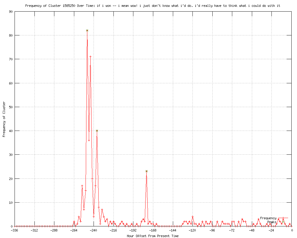 | 39 | if i won -- i mean wow! i just don't know what i'd do. i'd really have to think what i could do with it Urls http://theithacajournal.com/article/20120331/NEWS01/203310314/Americans-bet-nearly-1-5B-win-Mega-Millions-record-jackpot?odyssey=nav|head http://theithacajournal.com/article/20120331/NEWS01/203310314/Americans-bet-nearly-1-5B-win-Mega-Millions-record-jackpot?odyssey=tab|topnews|text|FRONTPAGE http://news-leader.com/usatoday/article/38922901?odyssey=mod|newswell|text|FRONTPAGE|p http://ktvu.com/news/news/local/mega-lottery-fever-sweeps-bay-area/nLgxM/ http://the-review.com/latest%20headlines/2012/03/30/mega-long-odds-for-winning-record-jackpot-1333123603 http://ebz.by/info/US/323066999 http://whas11.com/community/blogs/news-blog/145175975.html http://theeagle.com/nation/Mega-mania-as-jackpot-increases-to--640-million--7070735 http://mercurynews.com/nation-world/ci_20291285/its-mega-mania-lottery-fever-sweeps-nation?source=rss http://the-review.com/latest%20headlines/2012/03/30/mega-mania-as-jackpot-increases-to-640-million http://santafenewmexican.com/localnews/Mega-Millions-jackpot-increases-to--640-million http://myfoxdfw.com/dpp/news/mega-millions-jackpot-increases-to-%24640m-dpgapx-20120330-fc1333135276773 http://nola.com/louisiana-lottery/index.ssf/2012/03/mega_millions_jackpot_prompts.html http://standard.net/node/125480 http://standard.net/stories/2012/03/30/americans-bet-nearly-15b-win-record-jackpot http://contracostatimes.com/nation-world/ci_20291285/its-mega-mania-lottery-fever-sweeps-nation?source=rss http://abclocal.go.com/ktrk/story?section=news/national_world&id=8602184&rss=rss-ktrk-article-8602184 http://krem.com/home/145265435.html http://cbsnews.com/8301-201_162-57407405/winning-mega-millions-numbers-announced/ http://feeds.cbsnews.com/~r/CBSNewsMain/~3/RufgzV8StYQ/ http://wibw.com/home/headlines/Number_Drawn_for_Worlds_Largest_Lottery_Jackpot_145268155.html http://wibw.com/nationalnews/headlines/Number_Drawn_for_Worlds_Largest_Lottery_Jackpot_145268155.html http://boston.com/news/nation/articles/2012/03/30/odds_of_winning_record_lottery_jackpot_1_in_176_m/?rss_id=Top+Stories http://theithacajournal.com/article/20120331/NEWS01/203310314/1124/ http://stargazette.com/article/20120331/NEWS01/203310312/Americans-bet-nearly-1-5B-win-Mega-Millions-record-jackpot?odyssey=tab|topnews|img|FRONTPAGE http://stargazette.com/article/20120331/NEWS01/203310312/Americans-bet-nearly-1-5B-win-Mega-Millions-record-jackpot?odyssey=tab|topnews|text|FRONTPAGE http://stargazette.com/article/20120331/NEWS01/203310312/Americans-bet-nearly-1-5B-win-Mega-Millions-record-jackpot?odyssey=nav|head http://wibw.com/home/headlines/145268155.html http://stargazette.com/article/20120331/NEWS01/203310312/Americans-bet-nearly-1-5B-to-win-Mega-Millions-record-jackpot?odyssey=tab|mostpopular|img|FRONTPAGE http://stargazette.com/article/20120331/NEWS01/203310312/Americans-bet-nearly-1-5B-to-win-Mega-Millions-record-jackpot?odyssey=tab|mostpopular|text|FRONTPAGE http://theithacajournal.com/article/20120331/NEWS01/203310314/Americans-bet-nearly-1-5B-to-win-Mega-Millions-record-jackpot?odyssey=tab|mostpopular|img|FRONTPAGE http://theithacajournal.com/article/20120331/NEWS01/203310314/Americans-bet-nearly-1-5B-to-win-Mega-Millions-record-jackpot?odyssey=tab|mostpopular|text|FRONTPAGE http://newarkadvocate.com/article/20120331/NEWS01/203310304/Players-bet-close-1-5B-win-jackpot?odyssey=tab|topnews|text|Frontpage http://NewarkAdvocate.com/article/20120331/NEWS01/203310304/Players-bet-close-to-1-5B-to-win-jackpot?odyssey=tab|mostpopular|text|FRONTPAGE http://newarkadvocate.com/article/20120331/NEWS01/203310304/Players-bet-close-1-5B-win-jackpot http://newarkadvocate.com/article/20120331/NEWS01/203310304/Players-bet-close-1-5B-win-jackpot?odyssey=mod|newswell|text|Frontpage|s http://stargazette.com/article/20120331/NEWS01/203310312/Americans-bet-nearly-1-5B-win-Mega-Millions-record-jackpot?odyssey=mod|newswell|img|FRONTPAGE|p http://stargazette.com/article/20120331/NEWS01/203310312/Americans-bet-nearly-1-5B-win-Mega-Millions-record-jackpot?odyssey=mod|newswell|text|FRONTPAGE|p http://stargazette.com/article/20120331/NEWS01/203310312/Americans-bet-nearly-1-5B-win-Mega-Millions-record-jackpot?odyssey=mod|newswell|text|FRONTPAGE|s |