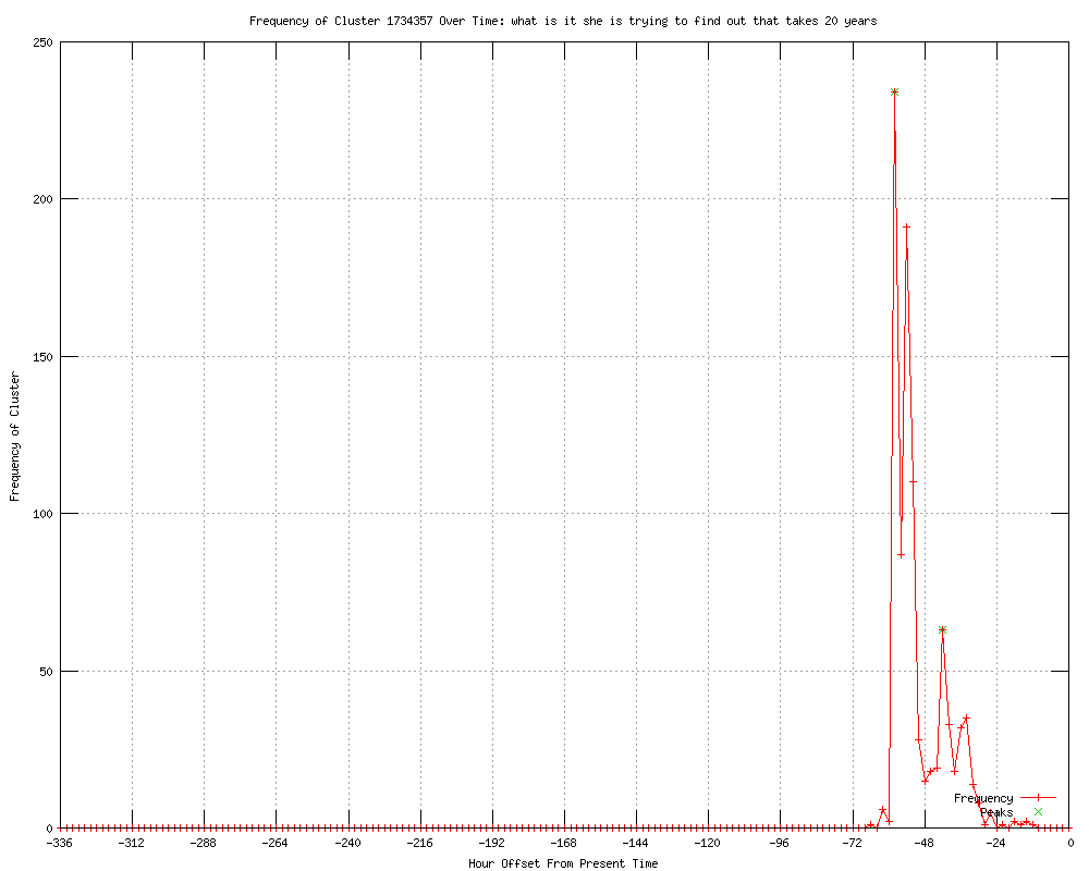 | 95 | what is she trying to find out that takes 20 years Urls http://wonderwall.msn.com/entertainment/memorable-moments-in-mike-wallaces-career-1675571.story http://utsandiego.com/news/2012/apr/08/memorable-moments-in-mike-wallaces-career/ http://cbsnews.com/8301-501368_162-57411050/memorable-moments-in-mike-wallaces-career/ http://online.wsj.com/article/SB10001424052702303815404577331603942771814.html?mod=rss_asia_whats_news http://newson6.com/story/17360400/memorable-moments-in-mike-wallaces-career http://wgem.com/story/17360400/memorable-moments-in-mike-wallaces-career http://wral.com/entertainment/story/10957993/ http://omg.yahoo.com/news/memorable-moments-mike-wallaces-career-193707187.html http://entertainment.msn.com/tv/article.aspx?news=716704&affid=100055 http://kwes.com/story/17360400/memorable-moments-in-mike-wallaces-career http://kswo.com/story/17360400/memorable-moments-in-mike-wallaces-career http://wtol.com/story/17360400/memorable-moments-in-mike-wallaces-career http://wbal.com/article/ap?articleurl=http%3a%2f%2fhosted.ap.org%2fdynamic%2fstories%2fU%2fUS_OBIT_MIKE_WALLACE_MEMORABLE_MOMENTS%3fSITE%3dWBAL%26SECTION%3dHOME%26TEMPLATE%3dDEFAULT http://kcbd.com/story/17360400/memorable-moments-in-mike-wallaces-career http://kusi.com/story/17360400/memorable-moments-in-mike-wallaces-career http://wrcbtv.com/story/17360400/memorable-moments-in-mike-wallaces-career http://wrex.com/story/17360400/memorable-moments-in-mike-wallaces-career http://waff.com/story/17360400/memorable-moments-in-mike-wallaces-career http://knoe.com/story/17360400/memorable-moments-in-mike-wallaces-career http://wbay.com/story/17360400/memorable-moments-in-mike-wallaces-career http://ktvn.com/story/17360400/memorable-moments-in-mike-wallaces-career http://news.yahoo.com/memorable-moments-mike-wallaces-career-193707187.html http://wlbt.com/story/17360400/memorable-moments-in-mike-wallaces-career http://mysanantonio.com/news/article/Memorable-moments-in-Mike-Wallace-s-career-3467350.php http://miamiherald.com/2012/04/08/2737891/memorable-moments-in-mike-wallaces.html http://wric.com/story/17360400/memorable-moments-in-mike-wallaces-career http://wten.com/story/17360400/memorable-moments-in-mike-wallaces-career http://whbf.com/story/17360400/memorable-moments-in-mike-wallaces-career http://ktiv.com/story/17360400/memorable-moments-in-mike-wallaces-career http://theolympian.com/2012/04/08/2062159/memorable-moments-in-mike-wallaces.html http://khnl.com/story/17360400/memorable-moments-in-mike-wallaces-career http://koamtv.com/story/17360400/memorable-moments-in-mike-wallaces-career http://newstimes.com/news/article/Memorable-moments-in-Mike-Wallace-s-career-3467350.php http://wthr.com/story/17360400/memorable-moments-in-mike-wallaces-career http://kmph.com/story/17360400/memorable-moments-in-mike-wallaces-career http://kwqc.com/story/17360400/memorable-moments-in-mike-wallaces-career http://wkrn.com/story/17360400/memorable-moments-in-mike-wallaces-career http://wect.com/story/17360400/memorable-moments-in-mike-wallaces-career http://fox28.com/story/17360400/memorable-moments-in-mike-wallaces-career http://wmbfnews.com/story/17360400/memorable-moments-in-mike-wallaces-career http://kcautv.com/story/17360400/memorable-moments-in-mike-wallaces-career http://wsfa.com/story/17360400/memorable-moments-in-mike-wallaces-career http://wandtv.com/story/17360400/memorable-moments-in-mike-wallaces-career http://kxxv.com/story/17360400/memorable-moments-in-mike-wallaces-career http://news9.com/story/17360400/memorable-moments-in-mike-wallaces-career http://kansascity.com/2012/04/08/3543043/memorable-moments-in-mike-wallaces.html#storylink=rss http://washingtontimes.feedsportal.com/c/34503/f/629237/s/1e33fd61/l/0L0Swashingtontimes0N0Cnews0C20A120Capr0C80Cmemorable0Emoments0Ein0Emike0Ewallaces0Ecareer0C0Dutm0Isource0FRSS0IFeed0Gutm0Imedium0FRSS/story01.htm http://kjonline.com/r?19=961&43=563887&44=146597845&32=10357&7=622157&40=http%3A%2F%2Fwww.kjonline.com%2Fnews%2FMemorable-moments-in-Mike-Wallaces-career.html http://washingtontimes.feedsportal.com/c/34503/f/629227/s/1e33de8d/l/0L0Swashingtontimes0N0Cnews0C20A120Capr0C80Cmemorable0Emoments0Ein0Emike0Ewallaces0Ecareer0C0Dutm0Isource0FRSS0IFeed0Gutm0Imedium0FRSS/story01.htm http://klkntv.com/story/17360400/memorable-moments-in-mike-wallaces-career http://washingtontimes.feedsportal.com/c/34503/f/629421/s/1e33e058/l/0L0Swashingtontimes0N0Cnews0C20A120Capr0C80Cmemorable0Emoments0Ein0Emike0Ewallaces0Ecareer0C0Dutm0Isource0FRSS0IFeed0Gutm0Imedium0FRSS/story01.htm http://onlinesentinel.com/r?19=961&43=565492&44=146597845&32=10362&7=622162&40=http%3A%2F%2Fwww.onlinesentinel.com%2Fnews%2FMemorable-moments-in-Mike-Wallaces-career.html http://sacbee.com/2012/04/08/4399390/memorable-moments-in-mike-wallaces.html#mi_rss=Latest%20News http://entertainment.msn.com/tv/article.aspx?news=716739&affid=100055 http://news-sentinel.com/apps/pbcs.dll/article?AID=/20120408/ENT/120409614 http://news-sentinel.com/apps/pbcs.dll/article?AID=/20120408/ENT/120409614/1009 http://newsvine.com/_news/2012/04/08/11086020-memorable-moments-in-mike-wallaces-career http://news-sentinel.com/apps/pbcs.dll/article?AID=/20120408/ENT/120409614/1009/SPORTS05 http://news-sentinel.com/apps/pbcs.dll/article?AID=/20120408/ENT/120409614/1009/LIVING02 http://news-sentinel.com/apps/pbcs.dll/article?AID=/20120408/ENT/120409614/1009/LIVING01 http://news-sentinel.com/apps/pbcs.dll/article?AID=/20120408/ENT/120409614/1009/PREPSPORTS http://broadcastnewsroom.com/articles/viewarticle.jsp?id=1964048 http://news-sentinel.com/apps/pbcs.dll/article?AID=/20120408/ENT/120409614/1009/SPORTS http://news-sentinel.com/apps/pbcs.dll/article?AID=/20120408/ENT/120409614/1009/LARSON http://news-sentinel.com/apps/pbcs.dll/article?AID=/20120408/ENT/120409614/1009/TOPHEADLINES http://idahostatesman.com/2012/04/08/2068006/memorable-moments-in-mike-wallaces.html#storylink=rss http://news-sentinel.com/apps/pbcs.dll/article?AID=/20120408/ENT/1204
