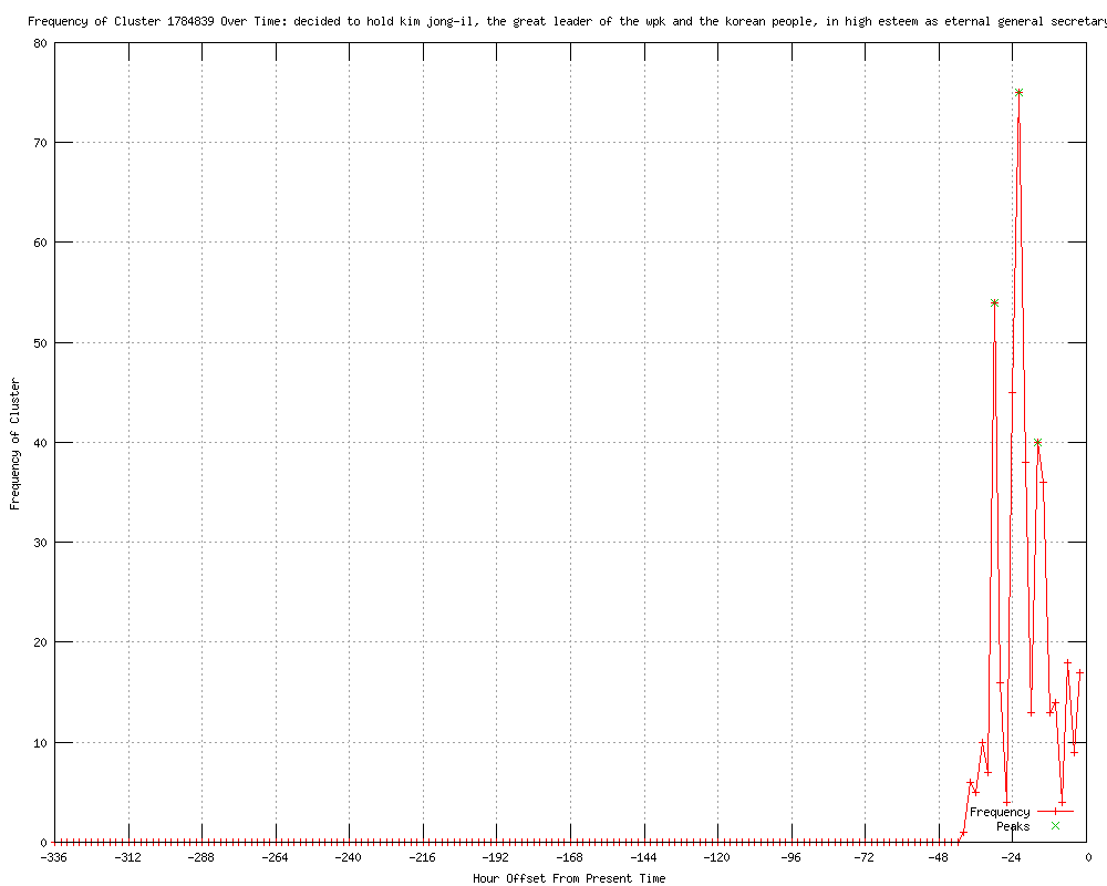 | 5 | decided to hold kim jong-il, the great leader of the wpk and the korean people, in high esteem as eternal general secretary Urls http://telegraph.feedsportal.com/c/32726/f/564430/s/1e4a25de/l/0L0Stelegraph0O0Cnews0Cworldnews0Casia0Cnorthkorea0C91977290CKim0EJong0Eil0Emade0EGeneral0ESecretary0Efor0EEternity0Eat0ENorth0EKorea0Eceremony0Bhtml/story01.htm http://telegraph.feedsportal.com/c/32726/f/579330/s/1e4a270e/l/0L0Stelegraph0O0Cnews0Cworldnews0Casia0Cnorthkorea0C91977290CKim0EJong0Eil0Emade0EGeneral0ESecretary0Efor0EEternity0Eat0ENorth0EKorea0Eceremony0Bhtml/story01.htm http://independent.ie/world-news/asia-pacific/kim-jongil-made-general-secretary-for-eternity-at-north-korea-ceremony-3078589.html http://ph.news.yahoo.com/n-koreas-leader-gets-top-party-post-153631844.html http://feeds.bangkokpost.com/c/33101/f/535952/s/1e4bba49/l/0L0Sbangkokpost0N0Cnews0Casia0C2884650Cn0Ekorea0Eleader0Egets0Enew0Etop0Eparty0Epost/story01.htm |
