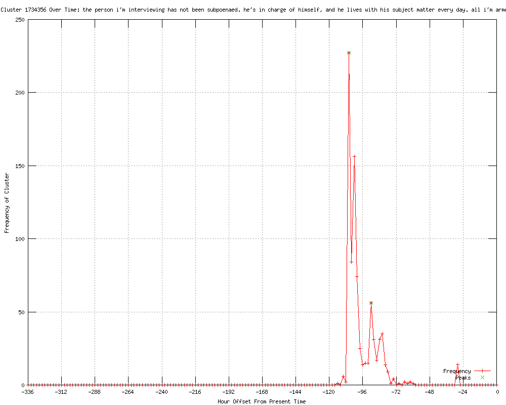 | 817 | the person i'm interviewing has not been subpoenaed. he's in charge of himself, and he lives with his subject matter every day. all i'm armed with is research Urls http://castanet.net/edition/news-story-73583-5-.htm#73583 http://castanet.net/edition/news-story-73581-5-.htm#73581 http://castanet.net/edition/news-story-73582-5-.htm#73582 http://castanet.net/edition/news-story-73597-5-.htm#73597 http://castanet.net/edition/news-story-73602-5-.htm#73602 http://wonderwall.msn.com/entertainment/mike-wallace-60-minutes-star-interviewer-dies-1675549.story http://castanet.net/edition/news-story-73612-5-.htm#73612 http://castanet.net/edition/news-story-73609-5-.htm#73609 http://castanet.net/edition/news-story-73610-5-.htm#73610 http://castanet.net/edition/news-story-73611-5-.htm#73611 http://tv.yahoo.com/news/mike-wallace-60-minutes-interrogator-dies-175620444.html http://wral.com/entertainment/story/10957858/ http://koamtv.com/story/17360146/mike-wallace-60-minutes-interrogator-dies http://wbtv.com/story/17360146/mike-wallace-60-minutes-interrogator-dies http://wthr.com/story/17360146/mike-wallace-60-minutes-interrogator-dies http://cbs3springfield.com/story/17360146/mike-wallace-60-minutes-interrogator-dies http://abc40.com/story/17360146/mike-wallace-60-minutes-interrogator-dies http://kmph.com/story/17360146/mike-wallace-60-minutes-interrogator-dies http://wect.com/story/17360146/mike-wallace-60-minutes-interrogator-dies http://kfvs.com/story/17360146/mike-wallace-60-minutes-interrogator-dies http://kwqc.com/story/17360146/mike-wallace-60-minutes-interrogator-dies http://wmbfnews.com/story/17360146/mike-wallace-60-minutes-interrogator-dies http://wistv.com/story/17360146/mike-wallace-60-minutes-interrogator-dies http://wkrn.com/story/17360146/mike-wallace-60-minutes-interrogator-dies http://wandtv.com/story/17360146/mike-wallace-60-minutes-interrogator-dies http://wsfa.com/story/17360146/mike-wallace-60-minutes-interrogator-dies http://kxxv.com/story/17360146/mike-wallace-60-minutes-interrogator-dies http://news9.com/story/17360146/mike-wallace-60-minutes-interrogator-dies http://newson6.com/story/17360146/mike-wallace-60-minutes-interrogator-dies http://wsbradio.com/ap/ap/entertainment/mike-wallace-60-minutes-interrogator-dies/nMTPn/ http://wgem.com/story/17360146/mike-wallace-60-minutes-interrogator-dies http://omg.yahoo.com/news/mike-wallace-60-minutes-interrogator-dies-175620444.html http://news.yahoo.com/mike-wallace-60-minutes-interrogator-dies-175620444.html http://power953.com/ap/ap/entertainment/mike-wallace-60-minutes-interrogator-dies/nMTPn/ http://wtol.com/story/17360146/mike-wallace-60-minutes-interrogator-dies http://kusi.com/story/17360146/mike-wallace-60-minutes-interrogator-dies http://kcbd.com/story/17360146/mike-wallace-60-minutes-interrogator-dies http://wrcbtv.com/story/17360146/mike-wallace-60-minutes-interrogator-dies http://wrex.com/story/17360146/mike-wallace-60-minutes-interrogator-dies http://knoe.com/story/17360146/mike-wallace-60-minutes-interrogator-dies http://mail.com/news/us/1193452-mike-wallace-60-minutes-interrogator-dies.html http://ktvn.com/story/17360146/mike-wallace-60-minutes-interrogator-dies http://star94fm.com/ap/ap/entertainment/mike-wallace-60-minutes-interrogator-dies/nMTPn/ http://wlbt.com/story/17360146/mike-wallace-60-minutes-interrogator-dies http://wbay.com/story/17360146/mike-wallace-60-minutes-interrogator-dies http://salon.com/2012/04/08/mike_wallace_60_minutes_interrogator_dies/ http://salon.com/2012/04/08/hudson_star_power_to_complicate_murder_trial/ http://salon.com/2012/04/08/bill_to_sidestep_israeli_high_court_criticized_2/ http://salon.com/2012/04/08/iraq_says_terrorist_cell_dismantled/ http://wric.com/story/17360146/mike-wallace-60-minutes-interrogator-dies http://wten.com/story/17360146/mike-wallace-60-minutes-interrogator-dies http://whbf.com/story/17360146/mike-wallace-60-minutes-interrogator-dies http://daily-chronicle.com/2012/04/08/mike-wallace-60-minutes-interrogator-d/aw2u083/ http://ktiv.com/story/17360146/mike-wallace-60-minutes-interrogator-dies http://khnl.com/story/17360146/mike-wallace-60-minutes-interrogator-dies http://newschannel5.com/story/17360146/mike-wallace-60-minutes-interrogator-dies http://newstimes.com/news/article/Mike-Wallace-60-Minutes-interrogator-dies-3467290.php http://lasvegassun.com/news/2012/apr/08/mike-wallace-60-minutes-star-interviewer-dies/ http://longislandpress.com/2012/04/08/mike-wallace-60-minutes-interrogator-dies/ http://nwherald.com/2012/04/08/mike-wallace-60-minutes-interrogator-d/aw2u083/ http://crescent-news.com/latest%20headlines/2012/04/08/mike-wallace-60-minutes-interrogator-dies http://newson6.com/story/17360247/mike-wallace-60-minutes-interrogator-dies http://wsbradio.com/ap/ap/entertainment/mike-wallace-60-minutes-interrogator-dies/nMTQB/ http://wgem.com/story/17360247/mike-wallace-60-minutes-interrogator-dies http://wral.com/entertainment/story/10957892/ http://cjme.com/content/mike-wallace-60-minutes-interrogator-dies http://kwes.com/story/17360247/mike-wallace-60-minutes-interrogator-dies http://power953.com/ap/ap/entertainment/mike-wallace-60-minutes-interrogator-dies/nMTQB/ http://kswo.com/story/17360247/mike-wallace-60-minutes-interrogator-dies http://svherald.com/associatedpress/258110 http://kcbd.com/story/17360247/mike-wallace-60-minutes-interrogator-dies http://kusi.com/story/17360247/mike-wallace-60-minutes-interrogator-dies http://wrcbtv.com/story/17360247/mike-wallace-60-minutes-interrogator-dies http://wrex.com/story/17360247/mike-wallace-60-minutes-interrogator-dies http://waff.com/story/17360247/mike-wallace-60-minutes-interrogator-dies http://knoe.com/story/17360247/mike-wallace-60-minutes-interrogator-dies http://wlox.com/story/17360247/mike-wallace-60-minutes-interrogator-dies http://star94fm.com/ap/ap/entertainment/mike-wallace-60-minutes-interrogator-dies/nMTQB/ http://ktvn.com/story/17360247/mike-wallace-60-minutes-interrogator-dies http://cbs8.com/s