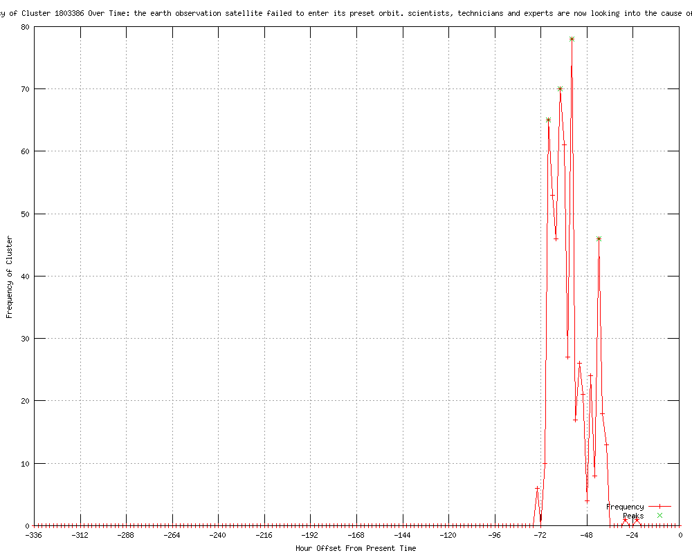 | 30 | the earth observation satellite failed to enter its preset orbit. scientists, technicians and experts are now looking into the cause of the failure Urls http://globalnation.inquirer.net/32985/north-korea-says-satellite-failed-to-enter-into-orbit http://pangasinanhub.blogspot.com/2012/04/north-korean-satellite-failed-to-enter.html http://urdanetacity.blogspot.com/2012/04/north-korean-satellite-sablay.html http://thedailystar.net/latest/updates.php?pid=70 http://timesofindia.indiatimes.com/world/rest-of-world/North-Korea-admits-failure-of-rocket-launch-after-four-hours-of-silence/articleshow/12646830.cms http://ph.news.yahoo.com/long-silence-north-korea-rocket-failure-043409948.html http://da.feedsportal.com/c/33039/f/555218/s/62100529/l/0Ltimesofindia0Bindiatimes0N0Cworld0Crest0Eof0Eworld0CNorth0EKorea0Eadmits0Efailure0Eof0Erocket0Elaunch0Eafter0Efour0Ehours0Eof0Esilence0Carticleshow0C12646830A0Bcms/ia1.htm http://deccanchronicle.com/channels/world/asia/north-korea-says-satellite-failed-enter-orbit-024 http://au.news.yahoo.com/a/-/world/13414573/long-silence-in-north-korea-after-rocket-failure/ http://thehimalayantimes.com/rssReference.php?id=MzI3ODg1 http://channelnewsasia.com/stories/afp_asiapacific/view/1194953/1/.html http://freemalaysiatoday.com/category/world/2012/04/13/long-silence-in-north-korea-after-rocket-failure/ http://smh.com.au/world/north-korea-finally-admits-to-rocket-failure-20120413-1wyf4.html http://feeds.bangkokpost.com/c/33101/f/535952/s/1e58a047/l/0L0Sbangkokpost0N0Cnews0Casia0C288720A0Clong0Esilence0Ein0Enorth0Ekorea0Eafter0Erocket0Efailure/story01.htm http://theage.com.au/world/north-korea-finally-admits-to-rocket-failure-20120413-1wyf4.html http://scribd.com/doc/89285065/Liberty-Newspost-April-13-2012 http://globalindigo.com/north-korea-admits-failed-rocket-launch http://rediff.com/news/report/china-calls-for-calm-after-n-koreas-rocket-failure/20120413.htm http://mwcnews.net/news/asia-pacfic/18188-failed-rocket-launch.html http://spacewar.com/reports/Long_silence_in_North_Korea_after_rocket_failure_999.html http://ranabhola.blogspot.com/2012/04/greetings-extnded-for-new-year-year-by.html http://brisbanetimes.com.au/world/north-korea-finally-admits-to-rocket-failure-20120413-1wyf4.html http://bbc.co.uk/news/world-asia-17698438#sa-ns_mchannel=rss&ns_source=PublicRSS20-sa http://themoneytimes.com/featured/20120413/north-korea-long-range-rocket-crashes-id-1701711643.html http://digitaljournal.com/article/322890 http://cnn.com/2012/04/13/world/asia/north-korea-journalists/index.html?eref=rss_latest http://edition.cnn.com/2012/04/13/world/asia/north-korea-journalists/index.html?eref=rss_asia http://theweek.co.uk/asia-pacific/north-korea/46288/north-koreas-failed-rocket-launch-humiliates-kim-jong-un http://gizmag.com/north-korea-rocket-fails/22148/ http://gizmag.com/north-korea-rocket-fails/22148 |