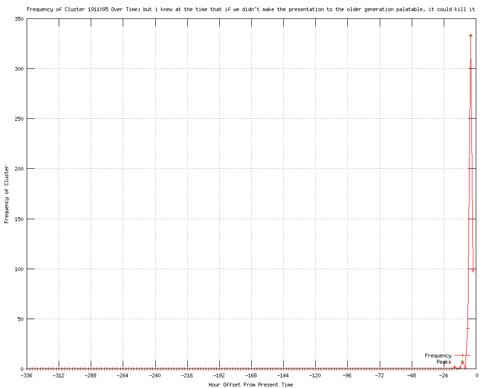 | 573 | but i knew at the time that if we didn't make the presentation to the older generation palatable, it could kill it Urls http://indystar.com/article/20120418/ENTERTAINMENT/204180357 http://wonderwall.msn.com/entertainment/american-bandstand-host-dick-clark-dead-at-82-1677360.story http://wonderwall.msn.com/entertainment/dick-clark-tv-and-new-years-eve-icon-dies-at-82-1677381.story http://salon.com/2012/04/19/3_agents_out_in_wake_of_secret_service_scandal/ http://salon.com/2012/04/19/scorching_talk_romney_obama_battle_over_economy/ http://salon.com/2012/04/19/nurse_accused_in_baby_abduction_had_miscarried/ http://newsvine.com/_news/2012/04/18/11270351-worlds-oldest-teenager-dick-clark-dead-at-82 http://power953.com/ap/ap/entertainment/american-bandstand-host-dick-clark-has-died/nMcSY/ http://thenewstribune.com/2012/04/18/2112381/american-bandstand-host-dick-clark.html?storylink=rss http://seattletimes.nwsource.com/html/entertainment/2018008730_apusobitdickclark.html?syndication=rss http://newsobserver.com/2012/04/18/2009610/american-bandstand-host-dick-clark.html#storylink=rss http://timesfreepress.com/news/2012/apr/18/american-bandstand-host-dick-clark-dead/ http://idahostatesman.com/2012/04/18/2080267/american-bandstand-host-dick-clark.html#storylink=rss http://thenewstribune.com/2012/04/18/2112385/american-bandstand-host-dick-clark.html?storylink=rss http://wlbt.com/story/17527018/american-bandstand-host-dick-clark-has-died http://buffalonews.com/entertainment/gusto/television/article816720.ece http://bakersfieldnow.com/news/entertainment/Dick-Clark-dead-at-82-147976245.html http://fox16.com:80/news/local/story/American-Bandstand-host-Dick-Clark-has-died/K4NkZ-jaaUuOZfBq_ON9dQ.cspx?rss=315 http://newsobserver.com/2012/04/18/2009619/american-bandstand-host-dick-clark.html#storylink=rss http://wwltv.com/home/American-Bandstand-host-Dick-Clark-has-died-147977995.html http://nwherald.com/2012/04/18/tv-producer-dick-clark-dead-at-82/a2txc70/ http://kswo.com/story/17527018/american-bandstand-host-dick-clark-has-died http://nbc-2.com/story/17527018/american-bandstand-host-dick-clark-has-died http://winnipegfreepress.com/breakingnews/american-bandstand-host-dick-clark-has-died-147978115.html http://kusi.com/story/17527018/american-bandstand-host-dick-clark-has-died http://theday.com/article/20120418/ENT15/120419524/1047/rss01 http://wral.com/entertainment/story/10997653/ http://wmbfnews.com/story/17527018/american-bandstand-host-dick-clark-has-died http://readingeagle.com/article.aspx?id=380527 http://ksl.com?nid=155&sid=20046769&s_cid=rss-155 http://wkrn.com/story/17527018/american-bandstand-host-dick-clark-has-died http://cbs12.com/news/top-stories/stories/vid_382.shtml?wap=0 http://wtol.com/story/17527018/american-bandstand-host-dick-clark-has-died http://kwes.com/story/17527018/american-bandstand-host-dick-clark-has-died http://wonderwall.msn.com/tv/dick-clark-dies-at-the-age-of-82-1677307.story http://kimatv.com/news/entertainment/Dick-Clark-dead-at-82-147976245.html http://idahostatesman.com/2012/04/18/2080285/american-bandstand-host-dick-clark.html#storylink=rss http://thebostonchannel.com/entertainment/30915225/detail.html http://couriernews.suntimes.com/11985352-421/dick-clark-american-bandstand-host-dies-of-heart-attack-at-82.html http://thenewstribune.com/2012/04/18/2112404/american-bandstand-host-dick-clark.html?storylink=rss http://wxvt.com/Global/story.asp?S=17527018 http://kmov.com/home/American-Bandstand-host-Dick-Clark-dies--147978045.html http://wsbradio.com/news/ap/entertainment/american-bandstand-host-dick-clark-has-died/nMcSY/ http://foxprovidence.com/dpps/entertainment/celebrity_news/dick-clark-dead-at-82-of-heart-attack-et12-tvw_4142512 http://koamtv.com/story/17527018/american-bandstand-host-dick-clark-has-died http://news.yahoo.com/american-bandstand-host-dick-clark-died-195437847.html http://fox11az.com/story/17527018/american-bandstand-host-dick-clark-has-died http://wbal.com/article/ap?articleurl=http%3a%2f%2fhosted.ap.org%2fdynamic%2fstories%2fU%2fUS_OBIT_DICK_CLARK%3fSITE%3dWBAL%26SECTION%3dHOME%26TEMPLATE%3dDEFAULT http://wbal.com/article/88967/40/Dick-Clark-Has-Died http://connecttristates.com/news/story.aspx?id=743594 http://tcpalm.com/news/2012/apr/18/american-bandstand-host-dick-clark-has-died/ http://courier-journal.com/article/20120418/FEATURES07/304180106/dick-clark-dead-die?odyssey=mod|newswell|text|Home|s http://wect.com/story/17527018/american-bandstand-host-dick-clark-has-died http://kval.com/news/entertainment/Dick-Clark-dead-at-82-147976245.html http://courier-journal.com/article/20120418/FEATURES07/304180106/dick-clark-dead-die?odyssey=mod|breaking|img|Home http://courier-journal.com/article/20120418/FEATURES07/304180106/dick-clark-dead-die?odyssey=mod|breaking|text|Home http://blueridgenow.com/article/20120418/articles/120419750 http://jsonline.com/entertainment/musicandnightlife/reports-dick-clark-dead-at-82-ql52fs1-147979775.html http://dfw.com/2012/04/18/608968/american-bandstand-host-dick-clark.html http://dfw.com/2012/04/18/608971/american-bandstand-host-dick-clark.html http://superiortelegram.com/event/article/id/65329/ http://crescent-news.com/ap%20entertainment/2012/04/18/dick-clark-dies http://cbs3springfield.com/story/17527018/american-bandstand-host-dick-clark-has-died http://eagletribune.com/lifestyle/x2086600122/REPORT-Dick-Clark-dead http://dispatch.com/content/stories/national_world/2012/04/18/tv-host-dick-clark-dies-82.html http://foxrio2.com/american-bandstand-host-dick-clark-has-died/ http://triadmarketplace.news-record.com/content/2012/04/18/article/american_bandstand_host_dick_clark_has_died http://wsfa.com/story/17527018/american-bandstand-host-dick-clark-has-died http://ledger-enquirer.com/2012/04/18/2016742/american-bandstand-host-dick-clark.html#storylink=rss http://abclocal.go.com/kfsn/story?section=news/entertainment&id=8626443&rss=rss-kfsn-article-8626443 http://.godanriver.com/news/2012/apr/18/american-bandstand-h
