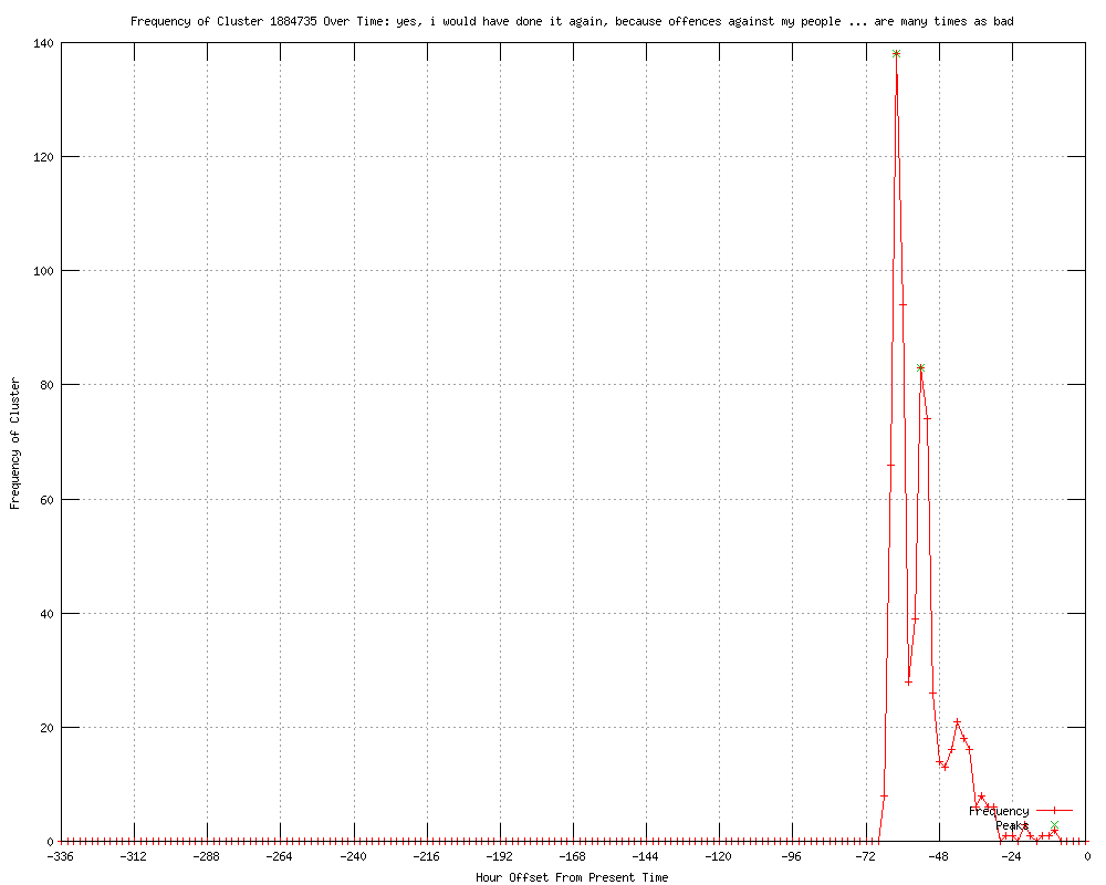 | 11 | yes, i would have done it again Urls http://uprootedpalestinians.blogspot.com/2012/04/norwegian-killer-defends-massacre-i.html http://hindustantimes.com/world-news/Europe/Breivik-says-he-would-do-it-all-again/Article1-841811.aspx http://deccanchronicle.com/channels/world/europe/norwegian-killer-says-he-would-do-it-all-again-266 http://au.news.yahoo.com/a/-/business/13452820/norwegian-killer-says-he-would-do-it-all-again/ http://telegraph.feedsportal.com/c/32726/f/568301/s/1e765670/l/0L0Stelegraph0O0Cnews0Cworldnews0Ceurope0Cnorway0C920A8720A0CAnders0EBehring0EBreivik0Eevokes0EEnoch0EPowell0Eas0Ehe0Ejustifies0Eattack0Bhtml/story01.htm http://telegraph.feedsportal.com/c/32726/f/564430/s/1e76188f/l/0L0Stelegraph0O0Cnews0Cworldnews0Ceurope0Cnorway0C920A8720A0CAnders0EBehring0EBreivik0Eevokes0EEnoch0EPowell0Eas0Ehe0Ejustifies0Eattack0Bhtml/story01.htm http://telegraph.feedsportal.com/c/32726/f/568301/s/1e78f724/l/0L0Stelegraph0O0Cnews0Cworldnews0Ceurope0Cnorway0C920A8720A0CAnders0EBehring0EBreivik0Einvokes0EEnoch0EPowell0Eas0Ehe0Ejustifies0Eattack0Bhtml/story01.htm http://telegraph.co.uk/news/worldnews/europe/norway/9208720/Anders-Behring-Breivik-invokes-Enoch-Powell-as-he-justifies-attack.html http://nzherald.co.nz/world/news/article.cfm?c_id=2&objectid=10799677&ref=rss http://willnotbetelevised.com/tv/2012/04/power-to-the-people/ http://divergence-convergence.blogspot.com/2012/04/norwegian-monster-uses-same-line-as.html |