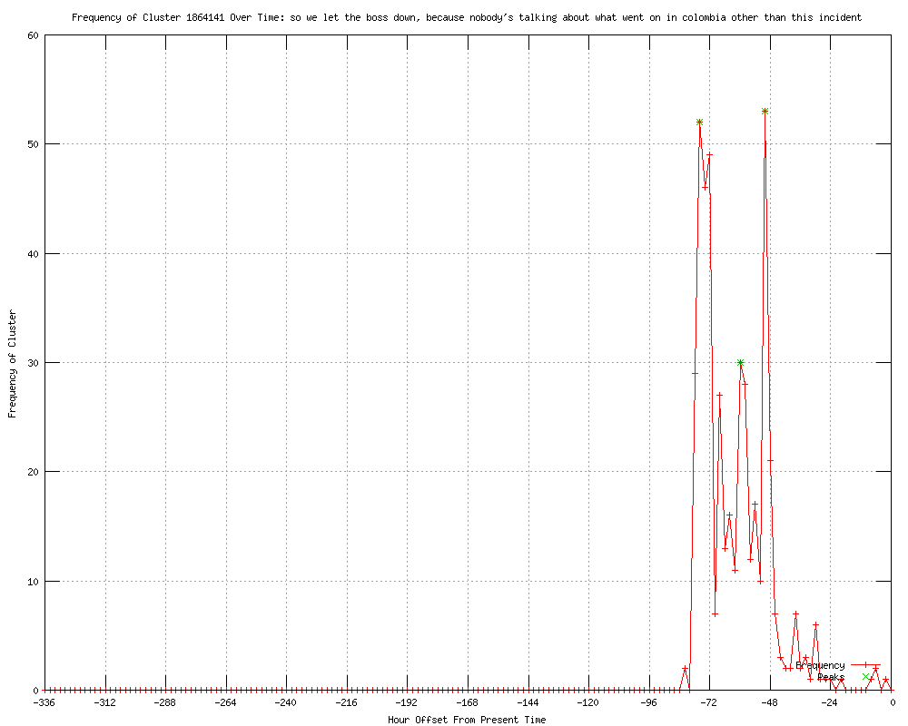 | 32 | we let the boss down because nobody's talking about what went on in colombia other than this incident Urls http://aljazeera.com/news/americas/2012/04/20124174301070708.html http://nypost.com/p/news/national/supervisors_and_elite_agents_involved_ccunjoDOxvXa4cv7VqOnFI?utm_medium=rss&utm_content=National http://nypost.com/p/news/national/supervisors_and_elite_agents_involved_ccunjoDOxvXa4cv7VqOnFI http://adelaidenow.com.au/news/breaking-news/elite-agents-involved-in-secret-service-spy-scandal/story-e6frea73-1226329605460?from=public_rss http://dailytelegraph.com.au/news/breaking-news/elite-agents-involved-in-secret-service-spy-scandal/story-e6freuyi-1226329605460 http://news.com.au/breaking-news/elite-agents-involved-in-secret-service-spy-scandal/story-e6frfku0-1226329605460 http://ibtimes.com/articles/328946/20120416/prostitution-scandal-secret-service.htm http://wkzo.com/news/articles/2012/apr/16/clearance-of-11-security-agents-in-colombia-incident-revoked/ http://stabroeknews.com/2012/news/breaking-news/04/16/clearance-of-11-us-security-agents-in-colombia-incident-revoked/ http://news.yahoo.com/clearance-11-security-agents-colombia-incident-revoked-221900916.html http://publicbroadcasting.net/wabe/news.newsmain/article/0/0/1921506/US/Clearance.of.11.security.agents.in.Colombia.incident.revoked http://reuters.com/article/2012/04/16/us-usa-agents-clearance-idUSBRE83F1A020120416 http://publicbroadcasting.net/wkyu/news.newsmain/article/0/0/1921506/US/Clearance.of.11.security.agents.in.Colombia.incident.revoked http://publicbroadcasting.net/wuky/news.newsmain/article/0/0/1921506/US/Clearance.of.11.security.agents.in.Colombia.incident.revoked http://reuters.com/article/2012/04/16/us-usa-agents-clearance-idUSBRE83F1A020120416?feedType=RSS&feedName=politicsNews http://reuters.com/article/2012/04/16/us-usa-agents-clearance-idUSBRE83F1A020120416?feedType=RSS&feedName=domesticNews http://feeds.reuters.com/%7Er/Reuters/PoliticsNews/%7E3/4GCaAGNxod8/us-usa-agents-clearance-idUSBRE83F1A020120416 http://reuters.com/article/2012/04/17/us-usa-agents-clearance-idUSBRE83F1A020120417?feedType=RSS&feedName=politicsNews http://reuters.com/article/2012/04/17/us-usa-agents-clearance-idUSBRE83F1A020120417 http://news.yahoo.com/u-revokes-security-clearance-11-agents-over-colombia-000252480.html http://reuters.com/article/2012/04/17/us-usa-agents-clearance-idUSBRE83F1A020120417?feedType=RSS&feedName=domesticNews http://timesofindia.feedsportal.com/fy/8at2EuL0YZNDa2CH/story01.htm http://abs-cbnnews.com/global-filipino/world/04/17/12/secret-service-agents-sex-scandal-lose-security-clearance http://feeds.reuters.com/%7Er/Reuters/PoliticsNews/%7E3/4gOtazDAVsI/us-usa-agents-clearance-idUSBRE83F1A020120417 http://iol.co.za/news/world/agents-lose-security-clearance-1.1277399 http://ky3.com/sns-rt-us-usa-agents-clearancebre83f1a0-20120416,0,416185.story http://chicagotribune.com/news/nationworld/sns-rt-us-usa-agents-clearancebre83f1a0-20120416,0,2671720.story?track=rss http://wdbj7.com/sns-rt-us-usa-agents-clearancebre83f1a0-20120416,0,4378176.story http://publicbroadcasting.net/wabe/news.newsmain/article/0/0/1921541/US/U.S..revokes.security.clearance.of.11.agents.over.Colombia.incident http://kgmi.com/U-S-revokes-security-clearance-of-11-agents-over-C/11461903?newsId=137828 http://kgmi.com/U-S-revokes-security-clearance-of-11-agents-over-C/11461869?newsId=137827 http://orlandosentinel.com/news/nationworld/sns-rt-us-usa-agents-clearancebre83f1a0-20120416,0,1226474.story |