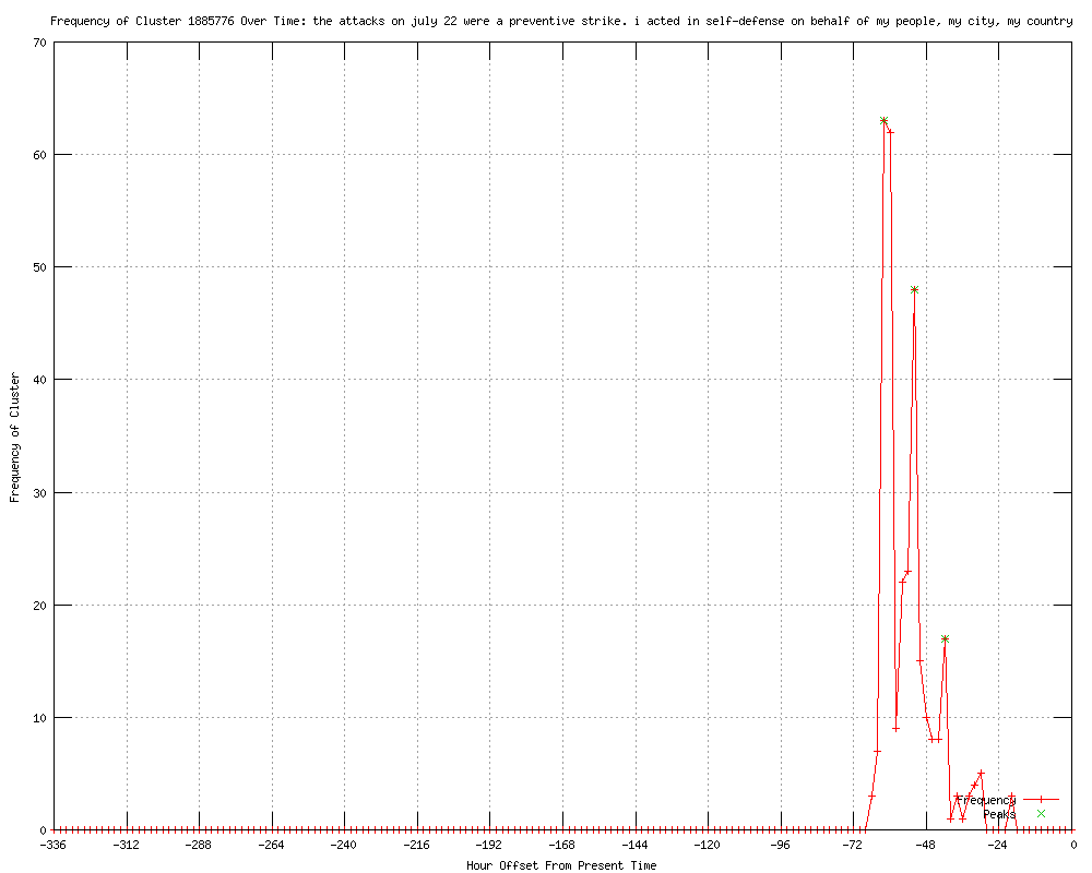 | 187 | the attacks on july 22 were a preventive strike. i acted in self-defense on behalf of my people, my city, my country Urls http://guardian.co.uk/world/feedarticle/10198725 http://kdwn.com/news/top-news/Norway_killer:_I_would_have_done_it_again http://kdwn.com/news/world-news/Norway_killer:_I_would_have_done_it_again http://cbsnews.com/8301-202_162-57415035/norway-mass-killer-anders-behring-breivik-defends-massacre-i-would-have-done-it-again/ http://nydailynews.com/news/world/i-anders-behring-breivik-defends-massacre-77-people-article-1.1062836?localLinksEnabled=false http://wdam.com/story/17482152/breivik-to-testify-on-day-2-of-norway-terror-trial http://newsday.com/news/world/norway-killer-i-would-have-done-it-again-1.3665779 http://icscotland.icnetwork.co.uk/news/uk/today/tm_headline=breivik-boasts-of-his-massacre%26method=full%26objectid=30777401%26siteid=50141-name_page.html http://zeenews.india.com/news/world/i-would-have-done-it-again-norway-killer-on-trial_770387.html http://ictamworth.icnetwork.co.uk/news/natnews/tm_headline=breivik-boasts-of-his-massacre%26method=full%26objectid=30777274%26siteid=86764-name_page.html http://nypost.com/p/news/international/oslo_massacre_madman_would_have_S861TyYcdwZ9XfpZEDgocJ http://icwolverhampton.icnetwork.co.uk/news/natnews/tm_headline=breivik-boasts-of-his-massacre%26method=full%26objectid=30777246%26siteid=94950-name_page.html http://icliverpool.icnetwork.co.uk/0100news/0300nationalnews/tm_headline=breivik-boasts-of-his-massacre%26method=full%26objectid=30777415%26siteid=50061-name_page.html http://feeds.cbsnews.com/~r/CBSNewsMain/~3/6_ngaCn4-d8/ http://wric.com/story/17482152/breivik-to-testify-on-day-2-of-norway-terror-trial http://buckinghamshireexaminer.co.uk/south-bucks-news/world-uk-news/2012/04/17/breivik-boasts-of-his-massacre-114018-30777172/ http://birminghammail.net/news/national-news/2012/04/17/breivik-boasts-of-his-massacre-97319-30777237/ http://journallive.co.uk/north-east-news/uk-news-world/2012/04/17/breivik-boasts-of-his-massacre-84229-30777286/ http://walesonline.co.uk/news/uk-news/2012/04/17/breivik-boasts-of-his-massacre-91466-30777258/ http://liverpooldailypost.co.uk/liverpool-news/uk-world-news/2012/04/17/breivik-boasts-of-his-massacre-99623-30777215/ http://southportvisiter.co.uk/southport-news/southport-breaking-news/2012/04/17/breivik-boasts-of-his-massacre-101022-30777207/ http://coventrytelegraph.net/news/national-news/2012/04/17/breivik-boasts-of-his-massacre-92746-30777255/ http://examiner.co.uk/news/breaking-news/2012/04/17/breivik-boasts-of-his-massacre-86081-30777280/ http://icsolihull.icnetwork.co.uk/news/national/tm_headline=breivik-boasts-of-his-massacre%26method=full%26objectid=30777261%26siteid=91411-name_page.html http://icbirmingham.icnetwork.co.uk/national/panews/tm_headline=breivik-boasts-of-his-massacre%26method=full%26objectid=30777428%26siteid=50002-name_page.html http://uxbridgegazette.co.uk/west-london-news/world-uk-news/2012/04/17/breivik-boasts-of-his-massacre-113046-30777178/ http://chroniclelive.co.uk/north-east-news/uk-and-world-news/2012/04/17/breivik-boasts-of-his-massacre-84229-30777286/ http://sundaysun.co.uk/news/uk-world-news/2012/04/17/breivik-boasts-of-his-massacre-84229-30777286/ http://dailypost.co.uk/news/breaking-news/2012/04/17/breivik-boasts-of-his-massacre-55578-30777374/ http://buckinghamshireadvertiser.co.uk/south-buckinghamshire-news/world-uk-news/2012/04/17/breivik-boasts-of-his-massacre-82398-30777294/ http://chesterchronicle.co.uk/chester-news/uk-world-news/2012/04/17/breivik-boasts-of-his-massacre-59067-30777352/ http://wirralnews.co.uk/wirral-news/uk-world-news/2012/04/17/breivik-boasts-of-his-massacre-80491-30777307/ http://icnewcastle.icnetwork.co.uk/sundaysun/ukandworld/tm_headline=breivik-boasts-of-his-massacre%26method=full%26objectid=30777404%26siteid=50081-name_page.html http://iclichfield.icnetwork.co.uk/news/natnews//tm_headline=breivik-boasts-of-his-massacre%26method=full%26objectid=30777184%26siteid=108911-name_page.html http://feeds.cbsnews.com/~r/CBSNewsWorld/~3/6_ngaCn4-d8/ http://ellesmereportpioneer.co.uk/ellesmere-port-news/uk-world-news/2012/04/17/breivik-boasts-of-his-massacre-55940-30777355/ http://sundaymercury.net/news/world-uk-news/2012/04/17/breivik-boasts-of-his-massacre-66331-30777332/ http://wirralnews.co.uk/wirral-news/wirral-breaking-news/2012/04/17/breivik-boasts-of-his-massacre-80491-30777307/ http://harrowobserver.co.uk/west-london-news/world-uk-news/2012/04/17/breivik-boasts-of-his-massacre-116451-30777169/ http://ichuddersfield.icnetwork.co.uk/examiner/news/breakingnews/tm_headline=breivik-boasts-of-his-massacre%26method=full%26objectid=30777419%26siteid=50060-name_page.html http://hounslowchronicle.co.uk/west-london-news/world-uk-news/2012/04/17/breivik-boasts-of-his-massacre-109642-30777181/ http://birminghampost.net/news/uk-news/2012/04/17/breivik-boasts-of-his-massacre-65233-30777335/ http://timesfreepress.com/news/2012/apr/17/norway-killer-i-would-have-done-it-again/ http://icwalsall.icnetwork.co.uk/news/natnews/tm_headline=breivik-boasts-of-his-massacre%26method=full%26objectid=30777348%26siteid=60240-name_page.html http://kyivpost.com/news/world/detail/126131/ http://sent-trib.com/ap-news/norway-killer-i-would-have-done-it-again http://da.feedsportal.com/c/845/f/464365/s/1e7623eb/l/0L0Sbelfasttelegraph0O0Cnews0Cworld0Enews0Canders0Ebreivik0Euses0Ecourt0Estatement0Eto0Eboast0Eof0Enorway0Emassacre0E161460A750Bhtml0Dr0FRSS/ia1.htm http://loughboroughecho.net/news/national-news/2012/04/17/breivik-boasts-of-his-massacre-73871-30777316/ http://newsok.com/norway-killer-i-would-have-done-it-again/article/feed/371627?custom_click=rss http://greenvilleonline.com/article/20120417/NEWS/304170017/Norway-killer-would-done-again-?odyssey=tab|topnews|text|FRONTPAGE http://seattletimes.nwsource.com/html/nationworld/2017997487_apeunorwaymassacre.html?syndication=rss http://theglobeandmail.com/news/world/breivik-says-he-acted-out-of-goodn