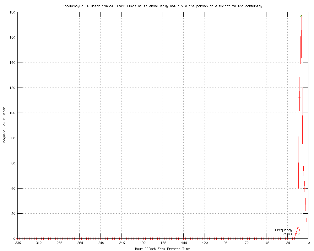 | 11 | absolutely he is not a violent person or a threat to the community Urls http://news.yahoo.com/past-violence-raised-hearing-us-teen-shooting-141818796.html http://au.news.yahoo.com/a/-/world/13486671/trayvon-martin-shooter-apologizes-to-teens-parents/ http://channelnewsasia.com/stories/afp_world/view/1196570/1/.html http://au.news.yahoo.com/a/-/world/13486671/judge-allows-for-release-of-trayvon-martin-shooter/ http://dailystar.com.lb/News/International/2012/Apr-20/170875-judge-allows-for-release-of-trayvon-martin-shooter.ashx http://au.news.yahoo.com/a/-/business/13486671/judge-sets-150-000-bail-for-trayvon-martin-shooter/ http://au.news.yahoo.com/world/a/-/world/13486671/judge-sets-150-000-bail-for-trayvon-martin-shooter/ http://au.news.yahoo.com/a/-/world/13486671/judge-sets-150-000-bail-for-trayvon-martin-shooter/ http://sbs.com.au/news/article/1644221/Trayvon-Martin-shooter-apologises http://mysanfordherald.com/view/full_story/18311008/article-Judge-grants-Zimmerman--150-000-bond?instance=home_news_right http://mysanfordherald.com/pages/full_story/push?article-Judge+grants+Zimmerman+-150-000+bond%20&id=18311008&instance=home_news_right#comments_18311008 |