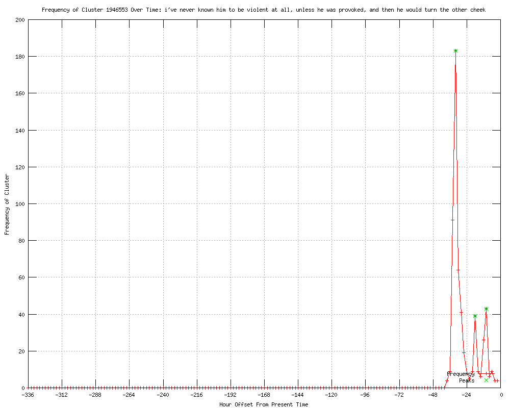 | 20 | i've never known him to be violent at all unless he was provoked, and then he would turn the other cheek Urls http://usnews.msnbc.msn.com/_news/2012/04/20/11304742-zimmermans-wife-defends-him-not-a-violent-person http://usnews.msnbc.msn.com/_news/2012/04/20/11304742-zimmerman-to-trayvon-martins-parents-i-am-sorry-for-the-loss-of-your-son http://kvoa.com/news/judge-sets-bond-at-150-000-zimmerman-apologizes-to-trayvon-martin-s-parents/ http://usnews.msnbc.msn.com/_news/2012/04/20/11304742-judge-sets-bond-at-150000-zimmerman-apologizes-to-trayvon-martins-parents http://politic365.com/2012/04/20/wheres-george-zimmermans-orange-jumpsuit/?utm_source=rss&utm_medium=rss&utm_campaign=wheres-george-zimmermans-orange-jumpsuit http://usnews.msnbc.msn.com/_news/2012/04/20/11304742-zimmermans-bond-set-at-150000-he-apologizes-to-trayvon-martins-parents http://kpax.com/news/zimmerman-apologizes-as-judge-sets-150-000-bond/ http://blackpoliticalbuzz.blogspot.com/2012/04/george-zimmermans-bail-set-for-150000.html http://edition.cnn.com/2012/04/20/justice/florida-teen-shooting/index.html?eref=edition http://nigeriadailynews.com/usa/33749-judge-sets-zimmerman-bond-at-150-000.html http://edition.cnn.com/2012/04/20/justice/florida-teen-shooting/index.html?eref=rss_topstories http://metro.us/newyork/national/article/1140956--judge-sets-bond-george-zimmerman-apologizes-in-court-to-family-of-trayvon-martin-update http://clickorlando.com/news/Judge-sets-150-000-bond-for-George-Zimmerman/-/1637132/11225192/-/gebatz/-/index.html http://pheedo.msnbc.msn.com/click.phdo?i=208f2e7306aec10f5b8a980f212d27bf http://usnews.msnbc.msn.com/_news/2012/04/20/11304742-judge-sets-bond-at-150000-zimmerman-apologizes-to-trayvon-martins-parents?lite http://digitaljournal.com/article/323345 http://kalb.com/story/17610375/judge-sets-150k-bond-for-zimmerman http://latimes.com/news/nationworld/nation/la-na-zimmerman-20120421,0,7559759.story?track=rss http://linyan1122.exteen.com/20120421/george-zimmerman-s-bail-set-at-150-000-in-teen-s-shooting http://panafricannews.blogspot.com/2012/04/george-zimmerman-bail-set-at-150000-in.html |