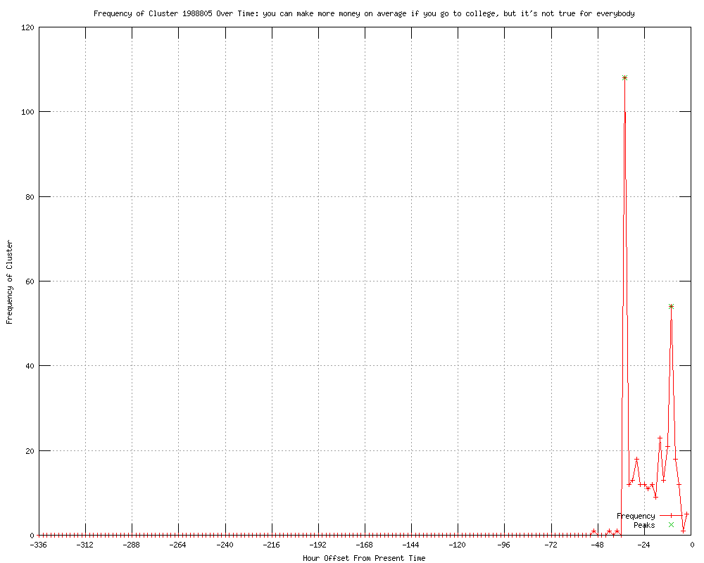 | 362 | you can make more money on average if you go to college, but it's not true for everybody Urls http://statesmanjournal.com/article/20120422/UPDATE/120422009/1103 http://battlecreekenquirer.com/article/20120422/NEWS01/304220022/1002/NEWS01 http://news-press.com/article/20120422/BUSINESS/304220068?odyssey=mod|mostcom http://denverpost.com/nationworld/ci_20451933/college-class-2012-joins-ranks-underemployed?source=rss http://rutlandherald.com/article/20120422/BUSINESS03/704229913/-1/RSS10 http://theadvertiser.com/article/20120422/NEWS01/204220330/-1/rss01 http://wrex.com/story/17652050/1-in-2-new-graduates-are-jobless-or-underemployed http://kfvs.com/story/17652050/1-in-2-new-graduates-are-jobless-or-underemployed http://wten.com/story/17652050/1-in-2-new-graduates-are-jobless-or-underemployed http://ktiv.com/story/17652050/1-in-2-new-graduates-are-jobless-or-underemployed http://ajc.com/news/nation-world/1-in-2-new-1423702.html?cxtype=rss_news_82111 http://twincities.com/national/ci_20455176/1-2-new-graduates-are-jobless-or-underemployed?source=rss http://wric.com/story/17652050/1-in-2-new-graduates-are-jobless-or-underemployed http://kusi.com/story/17652050/1-in-2-new-graduates-are-jobless-or-underemployed http://wkrn.com/story/17652050/1-in-2-new-graduates-are-jobless-or-underemployed http://kwwl.com/story/17652050/1-in-2-new-graduates-are-jobless-or-underemployed http://minnesota.publicradio.org/display/web/2012/04/22/college-graduates-job-prospects/?refid=0 http://ksla.com/story/17652050/1-in-2-new-graduates-are-jobless-or-underemployed http://wthr.com/story/17652050/1-in-2-new-graduates-are-jobless-or-underemployed http://newson6.com/story/17652050/1-in-2-new-graduates-are-jobless-or-underemployed http://wlbt.com/story/17652050/1-in-2-new-graduates-are-jobless-or-underemployed http://kwes.com/story/17652050/1-in-2-new-graduates-are-jobless-or-underemployed http://wtol.com/story/17652050/1-in-2-new-graduates-are-jobless-or-underemployed http://wbal.com/article/ap?articleurl=http%3a%2f%2fhosted.ap.org%2fdynamic%2fstories%2fU%2fUS_OVERQUALIFIED_COLLEGE_GRADS%3fSITE%3dWBAL%26SECTION%3dHOME%26TEMPLATE%3dDEFAULT http://whbf.com/story/17652050/1-in-2-new-graduates-are-jobless-or-underemployed http://kswt.com/story/17652050/1-in-2-new-graduates-are-jobless-or-underemployed http://kxxv.com/story/17652050/1-in-2-new-graduates-are-jobless-or-underemployed http://kswo.com/story/17652050/1-in-2-new-graduates-are-jobless-or-underemployed http://knoe.com/story/17652050/1-in-2-new-graduates-are-jobless-or-underemployed http://wrcbtv.com/story/17652050/1-in-2-new-graduates-are-jobless-or-underemployed http://startribune.com/nation/148429775.html http://inforum.com/event/apArticle/id/D9UA0UT83/ http://kcautv.com/story/17652050/1-in-2-new-graduates-are-jobless-or-underemployed http://artesianews.com/ap-news/business-ap-news/1-in-2-new-graduates-are-jobless-or-underemployed/ http://theolympian.com/2012/04/22/2078418/1-in-2-new-graduates-are-jobless.html http://news9.com/story/17652050/1-in-2-new-graduates-are-jobless-or-underemployed http://klkntv.com/story/17652050/1-in-2-new-graduates-are-jobless-or-underemployed http://wdam.com/story/17652050/1-in-2-new-graduates-are-jobless-or-underemployed http://news.yahoo.com/1-2-graduates-jobless-underemployed-140300522.html http://wral.com/business/story/11010830/ http://live5news.com/story/17652050/1-in-2-new-graduates-are-jobless-or-underemployed http://wmbfnews.com/story/17652050/1-in-2-new-graduates-are-jobless-or-underemployed http://macombdaily.com/article/20120422/NEWS04/120429874/one-in-two-new-graduates-are-jobless-or-underemployed http://macombdaily.com/article/20120422/NEWS04/120429874/1009/one-in-two-new-graduates-are-jobless-or-underemployed http://abc40.com/story/17652050/1-in-2-new-graduates-are-jobless-or-underemployed http://miamiherald.com/2012/04/22/2762165/1-in-2-new-graduates-are-jobless.html http://wistv.com/story/17652050/1-in-2-new-graduates-are-jobless-or-underemployed http://utsandiego.com/news/2012/apr/22/1-in-2-new-graduates-are-jobless-or-underemployed/ http://wbtv.com/story/17652050/1-in-2-new-graduates-are-jobless-or-underemployed http://koamtv.com/story/17652050/1-in-2-new-graduates-are-jobless-or-underemployed http://kentucky.com/2012/04/22/2160474/1-in-2-new-graduates-are-jobless.html#storylink=rss http://kwqc.com/story/17652050/1-in-2-new-graduates-are-jobless-or-underemployed http://sacbee.com/2012/04/22/4433364/1-in-2-new-graduates-are-jobless.html#mi_rss=Wire%20National%20News http://wlox.com/story/17652050/1-in-2-new-graduates-are-jobless-or-underemployed http://kmph.com/story/17652050/1-in-2-new-graduates-are-jobless-or-underemployed http://kstp.com/news/stories/s2591786.shtml?cat=1 http://wsfa.com/story/17652050/1-in-2-new-graduates-are-jobless-or-underemployed http://newsvine.com/_news/2012/04/22/11335276-1-in-2-new-graduates-are-jobless-or-underemployed http://abcnews.go.com/US/wireStory/graduates-jobless-underemployed-16189880 http://khnl.com/story/17652050/1-in-2-new-graduates-are-jobless-or-underemployed http://waff.com/story/17652050/1-in-2-new-graduates-are-jobless-or-underemployed http://kstc45.com/article/stories/s2591792.shtml?cat=11512 http://wboc.com/story/17652050/1-in-2-new-graduates-are-jobless-or-underemployed http://nbc12.com/story/17652050/1-in-2-new-graduates-are-jobless-or-underemployed http://wandtv.com/story/17652050/1-in-2-new-graduates-are-jobless-or-underemployed http://woi-tv.com/story/17652050/1-in-2-new-graduates-are-jobless-or-underemployed http://wgem.com/story/17652050/1-in-2-new-graduates-are-jobless-or-underemployed http://.wsls.com/news/2012/apr/22/1-in-2-new-graduates-are-jobless-or-underemployed-ar-1860595/ http://mysanantonio.com/news/article/1-in-2-new-graduates-are-jobless-or-underemployed-3501033.php http://wbay.com/story/17652050/1-in-2-new-graduates-are-jobless-or-underemployed http://kstc45.com/article/stories/S2591792.shtml?cat=10905 http://newstimes.com/news/article/1-in