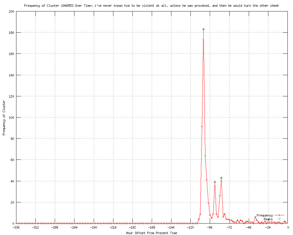| 20 | i've never known him to be violent at all unless he was provoked, and then he would turn the other cheek Urls http://usnews.msnbc.msn.com/_news/2012/04/20/11304742-zimmermans-wife-defends-him-not-a-violent-person http://usnews.msnbc.msn.com/_news/2012/04/20/11304742-zimmerman-to-trayvon-martins-parents-i-am-sorry-for-the-loss-of-your-son http://kvoa.com/news/judge-sets-bond-at-150-000-zimmerman-apologizes-to-trayvon-martin-s-parents/ http://usnews.msnbc.msn.com/_news/2012/04/20/11304742-judge-sets-bond-at-150000-zimmerman-apologizes-to-trayvon-martins-parents http://politic365.com/2012/04/20/wheres-george-zimmermans-orange-jumpsuit/?utm_source=rss&utm_medium=rss&utm_campaign=wheres-george-zimmermans-orange-jumpsuit http://usnews.msnbc.msn.com/_news/2012/04/20/11304742-zimmermans-bond-set-at-150000-he-apologizes-to-trayvon-martins-parents http://kpax.com/news/zimmerman-apologizes-as-judge-sets-150-000-bond/ http://blackpoliticalbuzz.blogspot.com/2012/04/george-zimmermans-bail-set-for-150000.html http://edition.cnn.com/2012/04/20/justice/florida-teen-shooting/index.html?eref=edition http://nigeriadailynews.com/usa/33749-judge-sets-zimmerman-bond-at-150-000.html http://edition.cnn.com/2012/04/20/justice/florida-teen-shooting/index.html?eref=rss_topstories http://metro.us/newyork/national/article/1140956--judge-sets-bond-george-zimmerman-apologizes-in-court-to-family-of-trayvon-martin-update http://clickorlando.com/news/Judge-sets-150-000-bond-for-George-Zimmerman/-/1637132/11225192/-/gebatz/-/index.html http://pheedo.msnbc.msn.com/click.phdo?i=208f2e7306aec10f5b8a980f212d27bf http://usnews.msnbc.msn.com/_news/2012/04/20/11304742-judge-sets-bond-at-150000-zimmerman-apologizes-to-trayvon-martins-parents?lite http://digitaljournal.com/article/323345 http://kalb.com/story/17610375/judge-sets-150k-bond-for-zimmerman http://latimes.com/news/nationworld/nation/la-na-zimmerman-20120421,0,7559759.story?track=rss http://linyan1122.exteen.com/20120421/george-zimmerman-s-bail-set-at-150-000-in-teen-s-shooting http://panafricannews.blogspot.com/2012/04/george-zimmerman-bail-set-at-150000-in.html |
