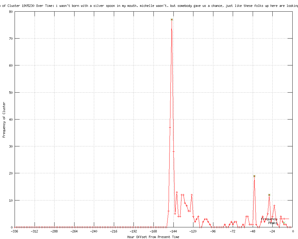 | 18 | i wasn't born with a silver spoon in my mouth. michelle wasn't. but somebody gave us a chance, just like these folks up here are looking for a chance Urls http://thehill.com/homenews/campaign/222359-obama-in-ohio-hits-romney-with-silver-spoon http://thehill.com/video/campaign/222359-obama-in-ohio-hits-romney-with-silver-spoon http://newser.com/story/144348/obama-digs-at-romney-no-silver-spoon-for-me.html http://entertainment.wagerweb.com/politics/obama-hits-back-at-romney-no-silver-spoon-for-me-41701.html http://thehill.com/blogs/on-the-money/1007-other/222415-overnight-money-small-business-tax-cut-takes-center-stage-in-the-house http://abcnews.go.com/blogs/politics/2012/04/no-silver-spoon-here-obama-in-ohio-draws-contrast-with-gop-on-jobs-aid/ http://wjr.net/rssItem.asp?feedid=112&itemid=29833942 http://wjimam.com/rssItem.asp?feedid=112&itemid=29833942 http://wgowam.com/rssItem.asp?feedid=112&itemid=29833942 http://ksfo560.com/rssItem.asp?feedid=112&itemid=29833942 http://wapi1070.com/rssItem.asp?feedid=112&itemid=29833942 http://wbap.com/rssItem.asp?feedid=112&itemid=29833942 http://feeds.abcnews.com/click.phdo?i=ad28344ca5e17167950df47f23b1a582 http://abcnews.go.com/blogs/politics/2012/04/its-still-the-economy-stupid-the-note/ http://thehill.com/video/campaign/222497-romney-says-he-wont-apologize-for-success-after-obama-silver-spoon-comment http://voiceoflillpop.blogspot.com/2012/04/with-his-silver-spoon-spiel-obama.html http://canadafreepress.com/index.php/site/article/with-his-silver-spoon-spiel-obama-unwittingly-made-the-case-for-private-ent/ http://newmediablog.com/2012/04/with-his-%c2%93silver-spoon%c2%94-spiel-obama-unwittingly-made-the-case-for-private-enterprise/ |
