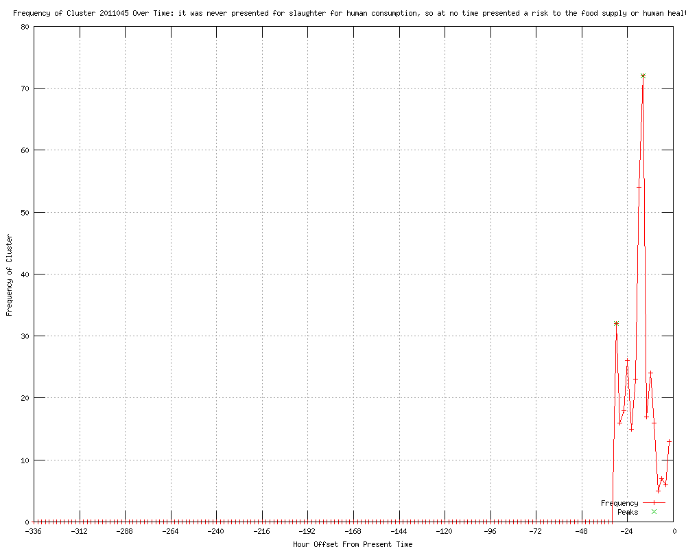 | 77 | no risk to the food supply or to human health Urls http://blogs.babble.com/strollerderby/2012/04/25/busy-parent-briefing-a-new-report-of-mad-cow-disease-in-the-us-should-we-be-worried/ http://uk.reuters.com/article/2012/04/25/uk-usa-madcow-idUKBRE83N1E120120425?feedType=RSS&feedName=worldNews http://thestar.com.my.feedsportal.com/c/33048/f/534559/s/1eb49712/l/0Lthestar0N0Bmy0Cnews0Cstory0Basp0Dfile0F0C20A120C40C250Cworldupdates0C20A120E0A40E25T0A0A2443Z0I20IBRE83N1E10IRTROPTT0I0A0IUK0EUSA0EMADCOW0Gsec0FWorldupdates/story01.htm http://us.rd.yahoo.com/finance/external/reuters/rss/SIG=12ctlfuk3/*http://www.reuters.com/article/2012/04/25/usa-madcow-idUSL2E8FOE1720120425?type=companyNews&feedType=RSS&feedName=companyNews&rpc=43 http://news.yahoo.com/mad-cow-disease-found-california-no-human-threat-002531323.html http://in.reuters.com/article/2012/04/25/us-usa-madcow-idINBRE83N15B20120425?feedType=RSS&feedName=health http://uk.reuters.com/article/2012/04/25/us-usa-madcow-idUKBRE83N15B20120425?feedType=RSS&feedName=healthNewsMolt http://uk.reuters.com/article/2012/04/25/us-usa-madcow-idUKBRE83N15B20120425?feedType=RSS&feedName=healthNews http://reuters.com/article/2012/04/25/us-usa-madcow-idUSBRE83N15B20120425?feedType=RSS&feedName=healthNews http://feeds.reuters.com/%7Er/reuters/healthNews/%7E3/zrdF4gc0CcM/us-usa-madcow-idUSBRE83N15B20120425 http://thestar.com.my/news/story.asp?file=/2012/4/25/worldupdates/2012-04-25T002443Z_2_BRE83N1E1_RTROPTT_0_UK-USA-MADCOW&sec=Worldupdates http://updatednews.ca/2012/04/24/mad-cow-disease-found-in-california/ http://ky3.com/sns-rt-us-usa-madcowbre83n15b-20120424,0,3849132.story http://wsbt.com/health/sns-rt-us-usa-madcowbre83n15b-20120424,0,3698671.story http://in.reuters.com/article/2012/04/25/usa-madcow-idINDEE83O02920120425?feedType=RSS&feedName=worldNews http://us.rd.yahoo.com/finance/external/reuters/rss/SIG=12ctlfuk3/*http://www.reuters.com/article/2012/04/25/usa-madcow-idUSL2E8FOE1720120425?feedType=RSS&feedName=industrialsSector&rpc=43 http://kyivpost.com/news/world/detail/126552/ http://thestar.com.my.feedsportal.com/c/33048/f/534559/s/1eb57cdd/l/0Lthestar0N0Bmy0Cnews0Cstory0Basp0Dfile0F0C20A120C40C250Cworldupdates0C20A120E0A40E25T0A35347Z0I30IBRE83N1E10IRTROPTT0I0A0IUK0EUSA0EMADCOW0Gsec0FWorldupdates/story01.htm http://worldbulletin.net/index.php?aType=haber&ArticleID=88989 http://ca.reuters.com/article/topNews/idCABRE83N15B20120425 http://af.reuters.com/article/worldNews/idAFBRE83N1E120120425 http://jezebel.com/5904892/crap-they-found-another-case-of-mad-cow-disease-but-dont-spit-out-your-burger-just-yet http://feeds.gawker.com/%7Er/jezebel/full/%7E3/A5YhFv65OjQ/crap-they-found-another-case-of-mad-cow-disease-but-dont-spit-out-your-burger-just-yet http://nymag.com/daily/intel/2012/04/mad-cow-disease-reported-california.html http://feeds.gawker.com/~r/jezebel/excerpts/~3/A5YhFv65OjQ/crap-they-found-another-case-of-mad-cow-disease-but-dont-spit-out-your-burger-just-yet http://article.wn.com/view/2012/04/25/Two_major_South_Korean_retailers_halt_sales_of_US_beef/ http://businessworld.ie/livenews.htm?a=2934894 http://uk.reuters.com/article/2012/04/25/uk-usa-madcow-idUKBRE83O0B120120425?feedType=RSS&feedName=worldNews http://af.reuters.com/article/worldNews/idAFBRE83O0B120120425 http://health.yahoo.net/news/s/nm/mad-cow-disease-found-in-california-no-human-threat-seen http://af.reuters.com/article/worldNews/idAFBRE83O0B120120425?feedType=RSS&feedName=worldNews http://thestar.com.my.feedsportal.com/c/33048/f/534559/s/1eb75e54/l/0Lthestar0N0Bmy0Cnews0Cstory0Basp0Dfile0F0C20A120C40C250Cworldupdates0C20A120E0A40E25T0A80A443Z0I10IBRE83O0AB10IRTROPTT0I0A0IUK0EUSA0EMADCOW0Gsec0FWorldupdates/story01.htm http://allnews.rss.themalaysianinsider.com/c/33362/f/567634/s/1eb7424f/l/0L0Sthemalaysianinsider0N0Cfood0Carticle0Cmad0Ecow0Edisease0Efound0Ein0Ecalifornia0Eno0Ehuman0Ethreat0Eseen0C/story01.htm http://theedgemalaysia.feedsportal.com/c/33912/f/613076/s/1eb7cbe1/l/0L0Stheedgemalaysia0N0Cindex0Bphp0Doption0Fcom0Icontent0Gtask0Fview0Gid0F2124350GItemid0F87/story01.htm http://onenewspage.com/n/Health/74r75gbbl/Mad-cow-disease-found-in-California-no.htm http://reuters.com/article/2012/04/25/us-usa-madcow-idUSBRE83N15B20120425?feedType=RSS&feedName=topNews http://publicbroadcasting.net/wkyu/news.newsmain/article/0/0/1923989/Top.Stories/Mad.cow.disease.found.in.California.no.human.threat.seen http://chicagotribune.com/business/breaking/sns-rt-us-usa-madcowbre83n15b-20120424,0,4390803.story?track=rss http://treatednow.com/04/25/mad-cow-disease-found-in-california-no-human-threat-seen.html http://treatednow.com/04/25/mad-cow-disease-found-in-california-no-human-threat-seen-2.html http://treatednow.com/04/25/mad-cow-disease-found-in-california-no-human-threat-seen-4.html http://treatednow.com/04/25/mad-cow-disease-found-in-california-no-human-threat-seen-3.html http://chicagotribune.com/business/sns-rt-us-usa-madcowbre83n15b-20120424,0,3663076.story?track=rss http://healthystate.org/2012/04/morning-rounds-st.-pete-doctor-says-hes-found-the-g-spot/ http://.canada.com/nanaimodailynews/news/story.html?id=6515548 http://arlingtoncardinal.com/2012/04/25/mad-cow-disease-found-in-dairy-cow-in-california-no-threat-to-humans-reported/ http://in.reuters.com/article/2012/04/25/usa-madcow-idINDEE83O0AK20120425?feedType=RSS&feedName=worldNews http://moneycontrol.com/news/wire-news/mad-cow-disease-foundus-no-human-threat-seen_696842.html http://chicagotribune.com/news/sns-rt-us-usa-madcowbre83n15b-20120424,0,1584341.story?track=rss http://feeds.chicagotribune.com/%7Er/chicagotribune/business/%7E3/bgaCXT9Hvr8/sns-rt-us-usa-madcowbre83n15b-20120424,0,3663076.story http://reuters.com/article/2012/04/25/us-usa-madcow-idUSBRE83N15B20120425 http://ibtimes.com/articles/333113/20120425/mad-cow-disease-discovered-california-human-threat.htm http://onyourpc.com/25086/mad-cow-disease-found-in-california-no-human-threat-seen/ http://blogjobs.biz/2012/04/mad-cow-disease-found-in-california-