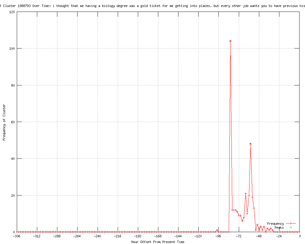 | 334 | i thought that me having a biology degree was a gold ticket for me getting into places, but every other job wants you to have previous history in the field Urls http://statesmanjournal.com/article/20120422/UPDATE/120422009/1103 http://news-press.com/article/20120422/BUSINESS/304220068?odyssey=mod|mostcom http://rutlandherald.com/article/20120422/BUSINESS03/704229913/-1/RSS10 http://wrex.com/story/17652050/1-in-2-new-graduates-are-jobless-or-underemployed http://kfvs.com/story/17652050/1-in-2-new-graduates-are-jobless-or-underemployed http://wten.com/story/17652050/1-in-2-new-graduates-are-jobless-or-underemployed http://ktiv.com/story/17652050/1-in-2-new-graduates-are-jobless-or-underemployed http://ajc.com/news/nation-world/1-in-2-new-1423702.html?cxtype=rss_news_82111 http://twincities.com/national/ci_20455176/1-2-new-graduates-are-jobless-or-underemployed?source=rss http://wric.com/story/17652050/1-in-2-new-graduates-are-jobless-or-underemployed http://kusi.com/story/17652050/1-in-2-new-graduates-are-jobless-or-underemployed http://wkrn.com/story/17652050/1-in-2-new-graduates-are-jobless-or-underemployed http://kwwl.com/story/17652050/1-in-2-new-graduates-are-jobless-or-underemployed http://minnesota.publicradio.org/display/web/2012/04/22/college-graduates-job-prospects/?refid=0 http://ksla.com/story/17652050/1-in-2-new-graduates-are-jobless-or-underemployed http://wthr.com/story/17652050/1-in-2-new-graduates-are-jobless-or-underemployed http://newson6.com/story/17652050/1-in-2-new-graduates-are-jobless-or-underemployed http://wlbt.com/story/17652050/1-in-2-new-graduates-are-jobless-or-underemployed http://kwes.com/story/17652050/1-in-2-new-graduates-are-jobless-or-underemployed http://wtol.com/story/17652050/1-in-2-new-graduates-are-jobless-or-underemployed http://wbal.com/article/ap?articleurl=http%3a%2f%2fhosted.ap.org%2fdynamic%2fstories%2fU%2fUS_OVERQUALIFIED_COLLEGE_GRADS%3fSITE%3dWBAL%26SECTION%3dHOME%26TEMPLATE%3dDEFAULT http://whbf.com/story/17652050/1-in-2-new-graduates-are-jobless-or-underemployed http://kswt.com/story/17652050/1-in-2-new-graduates-are-jobless-or-underemployed http://kxxv.com/story/17652050/1-in-2-new-graduates-are-jobless-or-underemployed http://kswo.com/story/17652050/1-in-2-new-graduates-are-jobless-or-underemployed http://knoe.com/story/17652050/1-in-2-new-graduates-are-jobless-or-underemployed http://wrcbtv.com/story/17652050/1-in-2-new-graduates-are-jobless-or-underemployed http://startribune.com/nation/148429775.html http://inforum.com/event/apArticle/id/D9UA0UT83/ http://kcautv.com/story/17652050/1-in-2-new-graduates-are-jobless-or-underemployed http://artesianews.com/ap-news/business-ap-news/1-in-2-new-graduates-are-jobless-or-underemployed/ http://theolympian.com/2012/04/22/2078418/1-in-2-new-graduates-are-jobless.html http://news9.com/story/17652050/1-in-2-new-graduates-are-jobless-or-underemployed http://klkntv.com/story/17652050/1-in-2-new-graduates-are-jobless-or-underemployed http://wdam.com/story/17652050/1-in-2-new-graduates-are-jobless-or-underemployed http://news.yahoo.com/1-2-graduates-jobless-underemployed-140300522.html http://wral.com/business/story/11010830/ http://live5news.com/story/17652050/1-in-2-new-graduates-are-jobless-or-underemployed http://wmbfnews.com/story/17652050/1-in-2-new-graduates-are-jobless-or-underemployed http://macombdaily.com/article/20120422/NEWS04/120429874/one-in-two-new-graduates-are-jobless-or-underemployed http://macombdaily.com/article/20120422/NEWS04/120429874/1009/one-in-two-new-graduates-are-jobless-or-underemployed http://abc40.com/story/17652050/1-in-2-new-graduates-are-jobless-or-underemployed http://wistv.com/story/17652050/1-in-2-new-graduates-are-jobless-or-underemployed http://wbtv.com/story/17652050/1-in-2-new-graduates-are-jobless-or-underemployed http://koamtv.com/story/17652050/1-in-2-new-graduates-are-jobless-or-underemployed http://kentucky.com/2012/04/22/2160474/1-in-2-new-graduates-are-jobless.html#storylink=rss http://kwqc.com/story/17652050/1-in-2-new-graduates-are-jobless-or-underemployed http://sacbee.com/2012/04/22/4433364/1-in-2-new-graduates-are-jobless.html#mi_rss=Wire%20National%20News http://wlox.com/story/17652050/1-in-2-new-graduates-are-jobless-or-underemployed http://kmph.com/story/17652050/1-in-2-new-graduates-are-jobless-or-underemployed http://kstp.com/news/stories/s2591786.shtml?cat=1 http://wsfa.com/story/17652050/1-in-2-new-graduates-are-jobless-or-underemployed http://newsvine.com/_news/2012/04/22/11335276-1-in-2-new-graduates-are-jobless-or-underemployed http://khnl.com/story/17652050/1-in-2-new-graduates-are-jobless-or-underemployed http://waff.com/story/17652050/1-in-2-new-graduates-are-jobless-or-underemployed http://kstc45.com/article/stories/s2591792.shtml?cat=11512 http://wboc.com/story/17652050/1-in-2-new-graduates-are-jobless-or-underemployed http://nbc12.com/story/17652050/1-in-2-new-graduates-are-jobless-or-underemployed http://wandtv.com/story/17652050/1-in-2-new-graduates-are-jobless-or-underemployed http://woi-tv.com/story/17652050/1-in-2-new-graduates-are-jobless-or-underemployed http://wgem.com/story/17652050/1-in-2-new-graduates-are-jobless-or-underemployed http://.wsls.com/news/2012/apr/22/1-in-2-new-graduates-are-jobless-or-underemployed-ar-1860595/ http://mysanantonio.com/news/article/1-in-2-new-graduates-are-jobless-or-underemployed-3501033.php http://wbay.com/story/17652050/1-in-2-new-graduates-are-jobless-or-underemployed http://kstc45.com/article/stories/S2591792.shtml?cat=10905 http://newstimes.com/news/article/1-in-2-new-graduates-are-jobless-or-underemployed-3501033.php http://cnbc.com//id/47133762 http://theskanner.com/article/1-in-2-New-Graduates-are-Jobless-or-Underemployed-2012-04-22 http://boston.com/news/education/higher/articles/2012/04/22/1_in_2_new_graduates_are_jobless_or_underemployed?rss_id=Boston.com+--+Latest+news http://KOB.com/article/stories/S2591800.shtml?cat=600 http://ktvn.com/story/17652050/1-in-2-new-graduates