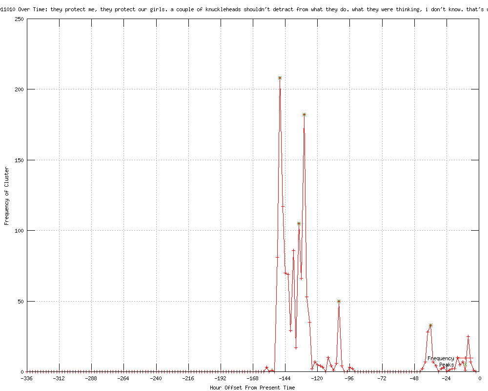 | 23 | so a couple of knuckleheads shouldn't detract from what they do, but what these guys were thinking, i don't know Urls http://cnn.com/2012/04/24/politics/secret-service/index.html?eref=rss_latest http://cnn.com/2012/04/24/politics/secret-service/index.html?eref=rss_politics http://rss.cnn.com/%7Er/rss/cnn_allpolitics/%7E3/XM7eBOAjpXc/index.html http://clickorlando.com/news/Sources-2-more-Secret-Service-members-resign/-/1637132/11801452/-/1oqw9w/-/index.html http://kesq.com/news/More-Secret-Service-agents-resign-over-Colombia-scandal/-/233092/11801452/-/jo5ypcz/-/index.html http://kjct8.com/news/30949255/detail.html http://rss.cnn.com/~r/rss/cnn_topstories/~3/d6NYIpDeUg0/index.html http://justnews.com/news/More-Secret-Service-agents-resign-over-Colombia-scandal/-/1717324/11801452/-/9tntv3/-/index.html http://cnn.com/2012/04/24/politics/secret-service/index.html?eref=rss_topstories http://clickorlando.com/news/More-Secret-Service-agents-resign-over-Colombia-scandal/-/1637132/11801452/-/14f4ro3/-/index.html http://cnn.com/2012/04/24/politics/secret-service/index.html?hpt=hp_t1 http://cbs19.tv/story/17705474/two-more-secret-service-agents-resign-over-colombia-scandal http://wtsp.com/rss/article/252711/250/Two-more-Secret-Service-agents-resign http://cnn.com/2012/04/25/politics/secret-service/index.html?eref=rss_topstories http://rss.cnn.com/~r/rss/cnn_allpolitics/~3/39wCBfQMc8c/index.html http://cnn.com/2012/04/25/politics/secret-service/index.html?eref=rss_politics http://rss.cnn.com/~r/rss/cnn_topstories/~3/gtFiTEEDJmI/index.html http://edition.cnn.com/2012/04/25/politics/secret-service/index.html?eref=rss_politics http://saltspringnews.com/index.php?name=News&file=article&sid=22397 http://cnn.com/2012/04/25/politics/secret-service/index.html?eref=rss_latest http://cnn.com/2012/04/25/politics/secret-service/ http://kbmt12.com/story/17741699/senators-criticize-military-briefing-on-colombia-scandal http://rss.cnn.com/~r/rss/cnn_latest/~3/QestB-PCxtg/index.html |