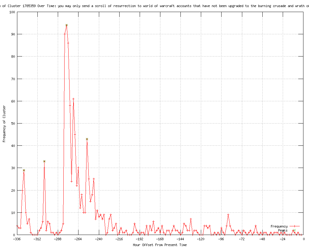 | 3 | you may only send a scroll of resurrection to world of warcraft accounts that have not been upgraded to the burning crusade and wrath of the lich king Urls http://wowwiki.com/Talk:Scroll_of_Resurrection?diff=2554402&oldid=prev http://wowwiki.com/Talk:Scroll_of_Resurrection?diff=2554436&oldid=prev http://wowwiki.com/Talk:Scroll_of_Resurrection?diff=2554438&oldid=prev |
