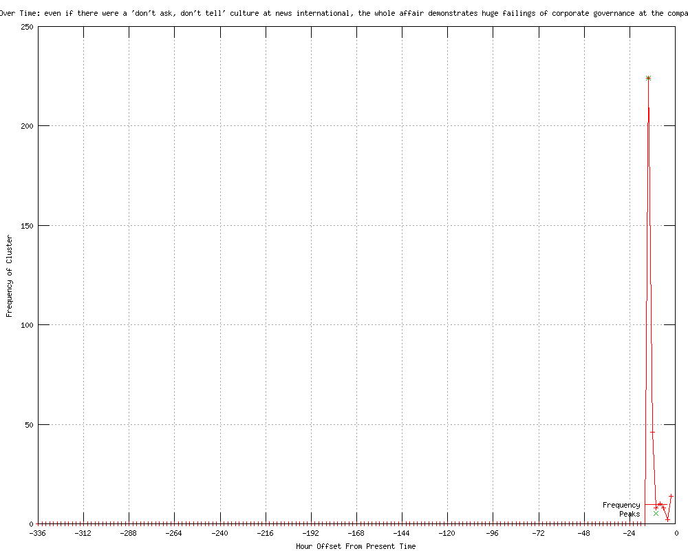 | 13 | even if there were a 'don't ask, don't tell' culture at news international, the whole affair demonstrates huge failings of corporate governance Urls http://worldnews.msnbc.msn.com/_news/2012/05/01/11481154-rupert-murdoch-not-a-fit-person-to-run-major-firm-uk-lawmakers-say?lite http://pheedo.msnbc.msn.com/click.phdo?i=aa6d7d1d53a73baccd494fd0bcf8b684 http://wkzo.com/news/articles/2012/may/01/uk-report-says-news-corp-showed-wilful-blindness-on-hacking/ http://publicbroadcasting.net/wuky/news.newsmain/article/0/0/1925564/World/UK.report.says.News.Corp.showed.willful.blindness.on.hacking http://au.news.yahoo.com/a/-/world/13572111/uk-report-says-news-corp-showed-willful-blindness-on-hacking/ http://ca.reuters.com/article/topNews/idCABRE8400IO20120501 http://au.news.yahoo.com/world/a/-/world/13572111/uk-report-says-news-corp-showed-willful-blindness-on-hacking/ http://kgmi.com/UK-report-says-News-Corp-showed-willful-blindness-/11461924?newsId=140534 http://au.news.yahoo.com/a/-/business/13572111/uk-report-says-news-corp-showed-willful-blindness-on-hacking/ http://au.news.yahoo.com/a/-/newshome/13572111/uk-report-says-news-corp-showed-willful-blindness-on-hacking/ http://news.yahoo.com/uk-report-says-news-corp-showed-wilful-blindness-104718007--sector.html http://kgmi.com/UK-report-says-News-Corp-showed-wilful-blindness-o/11461924?newsId=140533 http://uk.reuters.com/article/2012/05/01/idUKWLA731620120501?feedType=RSS&feedName=technology-media-telco-SP |