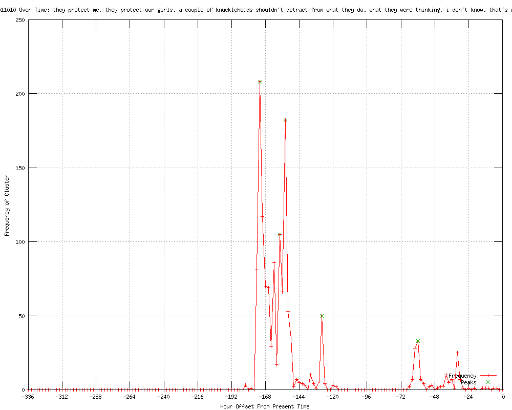 | 23 | so a couple of knuckleheads shouldn't detract from what they do, but what these guys were thinking, i don't know Urls http://cnn.com/2012/04/24/politics/secret-service/index.html?eref=rss_latest http://cnn.com/2012/04/24/politics/secret-service/index.html?eref=rss_politics http://rss.cnn.com/%7Er/rss/cnn_allpolitics/%7E3/XM7eBOAjpXc/index.html http://clickorlando.com/news/Sources-2-more-Secret-Service-members-resign/-/1637132/11801452/-/1oqw9w/-/index.html http://kesq.com/news/More-Secret-Service-agents-resign-over-Colombia-scandal/-/233092/11801452/-/jo5ypcz/-/index.html http://kjct8.com/news/30949255/detail.html http://rss.cnn.com/~r/rss/cnn_topstories/~3/d6NYIpDeUg0/index.html http://justnews.com/news/More-Secret-Service-agents-resign-over-Colombia-scandal/-/1717324/11801452/-/9tntv3/-/index.html http://cnn.com/2012/04/24/politics/secret-service/index.html?eref=rss_topstories http://clickorlando.com/news/More-Secret-Service-agents-resign-over-Colombia-scandal/-/1637132/11801452/-/14f4ro3/-/index.html http://cnn.com/2012/04/24/politics/secret-service/index.html?hpt=hp_t1 http://cbs19.tv/story/17705474/two-more-secret-service-agents-resign-over-colombia-scandal http://wtsp.com/rss/article/252711/250/Two-more-Secret-Service-agents-resign http://cnn.com/2012/04/25/politics/secret-service/index.html?eref=rss_topstories http://rss.cnn.com/~r/rss/cnn_allpolitics/~3/39wCBfQMc8c/index.html http://cnn.com/2012/04/25/politics/secret-service/index.html?eref=rss_politics http://rss.cnn.com/~r/rss/cnn_topstories/~3/gtFiTEEDJmI/index.html http://edition.cnn.com/2012/04/25/politics/secret-service/index.html?eref=rss_politics http://saltspringnews.com/index.php?name=News&file=article&sid=22397 http://cnn.com/2012/04/25/politics/secret-service/index.html?eref=rss_latest http://cnn.com/2012/04/25/politics/secret-service/ http://kbmt12.com/story/17741699/senators-criticize-military-briefing-on-colombia-scandal http://rss.cnn.com/~r/rss/cnn_latest/~3/QestB-PCxtg/index.html |