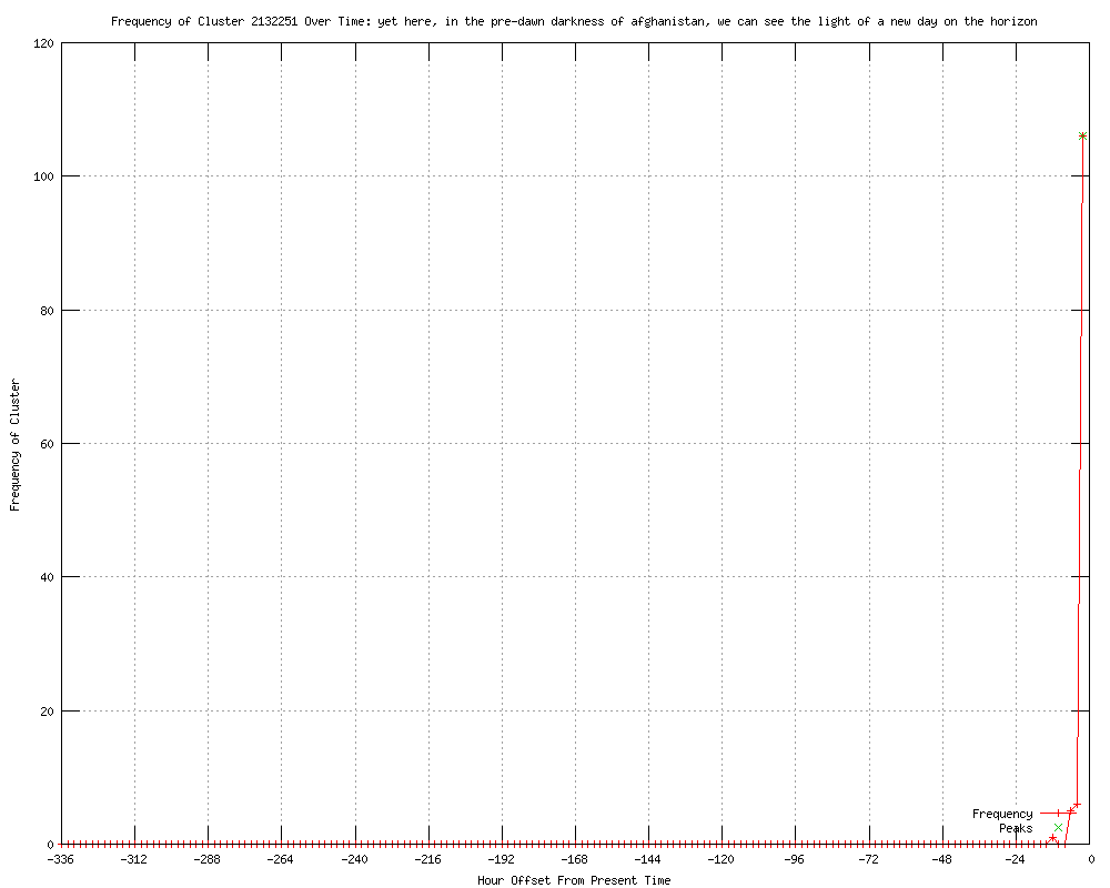 | 9 | in the predawn darkness of afghanistan, we can see the light of a new day on the horizon Urls http://mysanantonio.com/news/politics/article/Obama-describes-plan-to-finish-war-during-3526334.php http://toledoblade.com/Nation/2012/05/01/Obama-visits-Afghanistan-outlines-plan-to-end-war-1.html http://feeds.washingtonpost.com/click.phdo?i=c2c380f81b06c9b80df222037c62a9a7 http://washingtonpost.com/world/obama-makes-surprise-trip-to-afghanistan-to-sign-key-pact-mark-bin-laden-raid/2012/05/01/gIQAvYHduT_story.html?wprss=rss_homepage http://washingtonpost.com/world/obama-makes-surprise-trip-to-afghanistan-to-sign-key-pact-mark-bin-laden-raid/2012/05/01/gIQAvYHduT_story.html?wprss=rss_politics http://washingtonpost.com/world/obama-makes-surprise-trip-to-afghanistan-to-sign-key-pact-mark-bin-laden-raid/2012/05/01/gIQAvYHduT_story.html?wprss=rss_world http://post-gazette.com/stories/news/world/path-for-peace-set-obama-tells-afghans-634012/ http://seattletimes.nwsource.com/html/nationworld/2018117926_obama02.html?syndication=rss http://afghanistaninfo.blogspot.com/2012/05/obama-makes-surprise-trip-to.html |