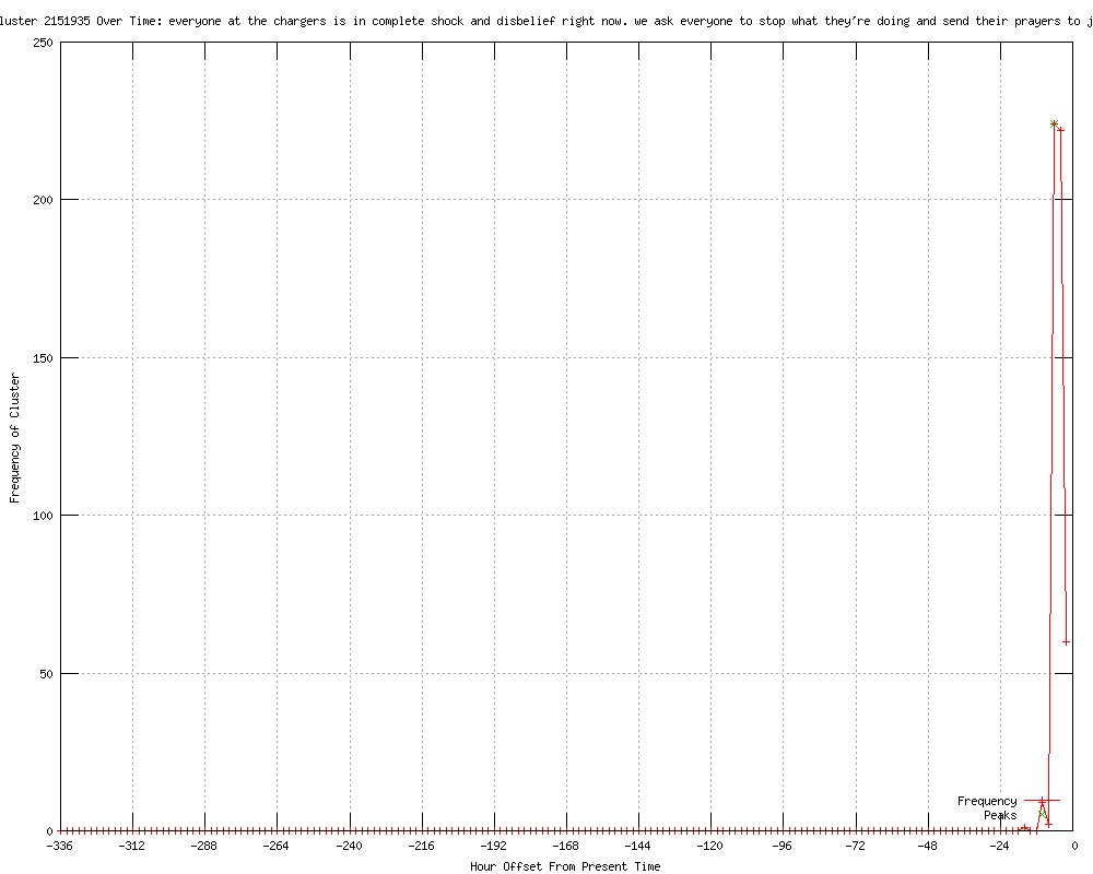 | 285 | everyone at the chargers is in complete shock and disbelief right now. we ask everyone to stop what they're doing and send their prayers to junior and his family Urls http://wcyb.com/sports/30993531/detail.html http://wric.com/story/18064458/former-nfl-player-junior-seau-found-dead http://dailytelegraph.com.au/sport/more-sports/ex-nfl-star-linebacker-junior-seau-found-dead-at-43-after-committing-suicide/story-e6frey6i-1226345336376 http://examiner.com/article/video-junior-seau-cause-of-death-believed-suicide-sent-text-message-to-kids http://wlox.com/story/18064012/shooting-reported-at-calif-home-of-junior-seau http://kswo.com/story/18064012/shooting-reported-at-calif-home-of-junior-seau http://fox41.com/story/18064012/shooting-reported-at-calif-home-of-junior-seau http://mydesert.com/article/20120502/SPORTS04/120502006/Former-San-Diego-Charger-Junior-Seau-dead-43?odyssey=nav|head http://myfilm.gr/article11182.html http://article.wn.com/view/2012/05/03/How_many_more_deaths_can_NFL_fans_take/ http://article.wn.com/view/2012/05/03/8_members_of_Chargers_Super_Bowl_team_have_died_a/ http://wfxg.com/story/18063652/nfl-star-junior-seau-dead-at-43 http://sportsillustrated.cnn.com/2012/football/nfl/05/02/junior.seau.ap/index.html?xid=si_nfl http://eagletribune.com/latestnews/x1378307569/REPORT-Former-Patriot-Junior-Seau-found-dead http://gloucestertimes.com/sports/x1720499062/UPDATE-Former-Patriot-Junior-Seau-found-shot-dead http://gloucestertimes.com/breakingnews/x1720499062/UPDATE-Former-Patriot-Junior-Seau-found-shot-dead http://gloucestertimes.com/archive/x1720499062/UPDATE-Former-Patriot-Junior-Seau-found-shot-dead#disqus_thread http://wistv.com/story/18063652/nfl-star-junior-seau-dead-at-43 http://wbtv.com/story/18063652/nfl-star-junior-seau-dead-at-43 http://ktre.com/story/18063652/nfl-star-junior-seau-dead-at-43 http://kltv.com/story/18063652/nfl-star-junior-seau-dead-at-43 http://wlox.com/story/18063652/nfl-star-junior-seau-dead-at-43 http://wdam.com/story/18063652/nfl-star-junior-seau-dead-at-43 http://waff.com/story/18063652/nfl-star-junior-seau-dead-at-43 http://coldbeats.blogspot.com/2012/05/tiana-baul-junior-seau-1969-2012.html http://chicagotribune.com/sports/football/bears/chi-police-respond-to-report-of-shooting-at-home-of-former-nfl-star-junior-seau-20120502,0,908533.story?track=rss http://chicagotribune.com/news/chi-police-respond-to-report-of-shooting-at-home-of-former-nfl-star-junior-seau-20120502,0,3393601.story?track=rss http://wgnradio.com/news/chi-police-respond-to-report-of-shooting-at-home-of-former-nfl-star-junior-seau-20120502,0,292641.story http://wgnradio.com/news/wgntv-ex-nfl-star-junior-seau-found-dead-may2,0,118829.story http://cltv.com/news/wgntv-ex-nfl-star-junior-seau-found-dead-may2,0,6050417.story?track=rss http://laobserved.com/archive/2012/05/junior_seau_former_nfl_an.php http://thetowntalk.com/article/20120502/SPORTS/120502022/-1/rss01 http://southbendtribune.com/news/chi-police-respond-to-report-of-shooting-at-home-of-former-nfl-star-junior-seau-20120502,0,2641930.story?track=rss http://news10.net/news/article/191913/2/Junior-Seau-found-dead-of-apparent-suicide http://news10.net/news/article/191913/2/Junior-Seau-found-dead-of-apparent-suicide?odyssey=tab%7Ctopnews%7Cbc%7Clarge http://news10.net/news/article/191913/2/Former-NFL-star-Junior-Seau-found-dead-of-apparent-suicide http://talksox.com/forum/other-sports/16429-former-patriots-linebacker-junior-seau-found-dead-apparent-suicide.html http://abclocal.go.com/ktrk/story?section=news/sports&id=8645333&rss=rss-ktrk-article-8645333 http://espn.go.com/nfl/story/_/id/7882750/former-nfl-linebacker-great-junior-seau-dies-43 http://washingtonpost.com/blogs/early-lead/post/junior-seau-dead-an-apparent-suicide/2012/05/02/gIQABQW2wT_blog.html?wprss=rss_sports http://newstimes.com/sports/article/Former-NFL-star-Seau-dead-of-possible-suicide-3528221.php http://clickorlando.com/sports/Former-NFL-player-Junior-Seau-dead/-/1636890/12522090/-/fgnrgx/-/index.html http://justnews.com/sports/Former-NFL-player-Junior-Seau-dead/-/1717082/12522090/-/6t65wr/-/index.html http://commercialappeal.com/news/2012/may/02/former-nfl-star-junior-seau-found-dead-california/?partner=RSS http://ajc.com/sports/junior-seau-found-dead-1430084.html?cxtype=rss_sports http://wlsam.com/Article.asp?id=2448065&spid= http://outsidethebeltway.com/nfl-veteran-junior-seau-dead-at-43/ http://wkyc.com/news/article/243588/4/Police-Junior-Seau-found-dead-at-California-home- http://wkyc.com/sports/article/243588/4/Police-Junior-Seau-found-dead-at-California-home- http://ajc.com/sports/police-junior-seau-found-1430084.html?cxtype=rss_news_81963 http://latimes.com/sports/la-seau-death-20120502,0,1397878.story?track=rss http://wgem.com/story/18064012/shooting-reported-at-calif-home-of-junior-seau http://lex18.com/news/report-former-nfl-star-junior-seau-commits-suicide/ http://wrcbtv.com/story/18064012/shooting-reported-at-calif-home-of-junior-seau http://koco.com/sports/30993531/detail.html http://miamiherald.com/2012/05/02/2779706/police-junior-seau-found-dead.html http://wkrn.com/story/18064012/shooting-reported-at-calif-home-of-junior-seau http://kwwl.com/story/18064012/shooting-reported-at-calif-home-of-junior-seau http://woi-tv.com/story/18064012/shooting-reported-at-calif-home-of-junior-seau http://keprtv.com/sports/Shooting-reported-at-Calif-home-of-Junior-Seau-149875495.html http://waff.com/story/18064012/shooting-reported-at-calif-home-of-junior-seau http://wmbfnews.com/story/18064012/shooting-reported-at-calif-home-of-junior-seau http://newsvine.com/_news/2012/05/02/11506242-police-junior-seau-found-dead-at-california-home http://startribune.com/sports/149880265.html http://mysanantonio.com/sports/article/Former-NFL-star-Seau-dead-of-possible-suicide-3528221.php http://startribune.com/sports/vikings/nfl/149880265.html http://wbal.com/article/ap?articleurl=http%3a%2f%2fhosted.ap.org%2fdynamic%2fstories%2fF%2fFBN_OBIT_SEAU%3fSITE%3dWBAL%26SECT