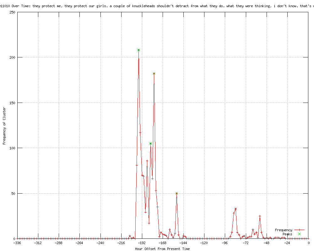 | 23 | so a couple of knuckleheads shouldn't detract from what they do, but what these guys were thinking, i don't know Urls http://cnn.com/2012/04/24/politics/secret-service/index.html?eref=rss_latest http://cnn.com/2012/04/24/politics/secret-service/index.html?eref=rss_politics http://rss.cnn.com/%7Er/rss/cnn_allpolitics/%7E3/XM7eBOAjpXc/index.html http://clickorlando.com/news/Sources-2-more-Secret-Service-members-resign/-/1637132/11801452/-/1oqw9w/-/index.html http://kesq.com/news/More-Secret-Service-agents-resign-over-Colombia-scandal/-/233092/11801452/-/jo5ypcz/-/index.html http://kjct8.com/news/30949255/detail.html http://rss.cnn.com/~r/rss/cnn_topstories/~3/d6NYIpDeUg0/index.html http://justnews.com/news/More-Secret-Service-agents-resign-over-Colombia-scandal/-/1717324/11801452/-/9tntv3/-/index.html http://cnn.com/2012/04/24/politics/secret-service/index.html?eref=rss_topstories http://clickorlando.com/news/More-Secret-Service-agents-resign-over-Colombia-scandal/-/1637132/11801452/-/14f4ro3/-/index.html http://cnn.com/2012/04/24/politics/secret-service/index.html?hpt=hp_t1 http://cbs19.tv/story/17705474/two-more-secret-service-agents-resign-over-colombia-scandal http://wtsp.com/rss/article/252711/250/Two-more-Secret-Service-agents-resign http://cnn.com/2012/04/25/politics/secret-service/index.html?eref=rss_topstories http://rss.cnn.com/~r/rss/cnn_allpolitics/~3/39wCBfQMc8c/index.html http://cnn.com/2012/04/25/politics/secret-service/index.html?eref=rss_politics http://rss.cnn.com/~r/rss/cnn_topstories/~3/gtFiTEEDJmI/index.html http://edition.cnn.com/2012/04/25/politics/secret-service/index.html?eref=rss_politics http://saltspringnews.com/index.php?name=News&file=article&sid=22397 http://cnn.com/2012/04/25/politics/secret-service/index.html?eref=rss_latest http://cnn.com/2012/04/25/politics/secret-service/ http://kbmt12.com/story/17741699/senators-criticize-military-briefing-on-colombia-scandal http://rss.cnn.com/~r/rss/cnn_latest/~3/QestB-PCxtg/index.html |