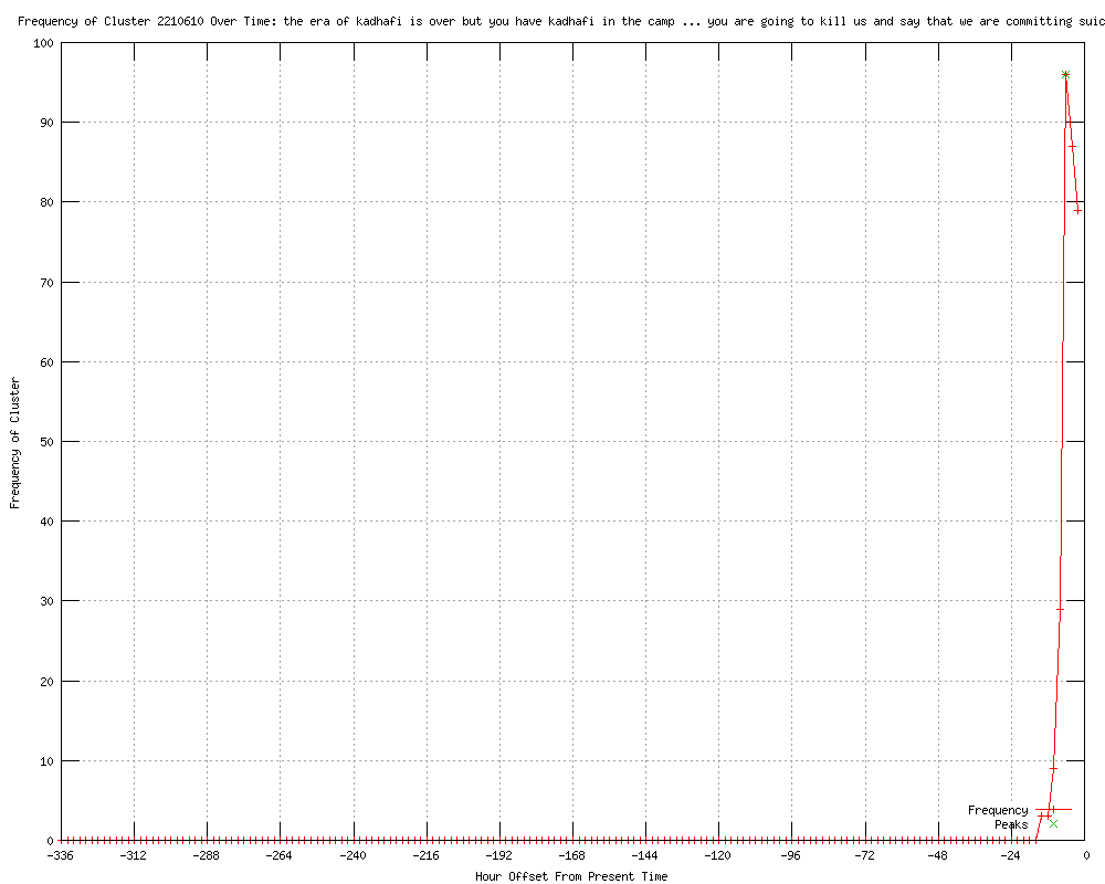 | 12 | the era of gaddafi is over but you have gaddafi in the camp ... you are going to kill us and say that we are committing suicide Urls http://channelnewsasia.com/stories/afp_world/view/1199494/1/.html http://channelnewsasia.com/stories/afp_world/view/1199509/1/.html http://smh.com.au/world/outbursts-in-court-as-911-accused-charged-20120506-1y6l7.html http://theage.com.au/world/outbursts-in-court-as-911-accused-charged-20120506-1y6l7.html http://brisbanetimes.com.au/world/outbursts-in-court-as-911-accused-charged-20120506-1y6l7.html http://news.smh.com.au/breaking-news-world/accused-911-planners-charged-in-court-20120506-1y6h7.html http://smh.com.au/world/outbursts-as-911-accused-charged-20120506-1y6l7.html http://sbs.com.au/news/article/1648021/Accused-911-planners-charged-in-court http://news.theage.com.au/breaking-news-world/accused-911-planners-charged-in-court-20120506-1y6h7.html http://au.news.yahoo.com/a/-/business/13607997/accused-9-11-planners-charged-in-court/ http://canberratimes.com.au/world/outbursts-in-court-as-911-accused-charged-20120506-1y6l7.html http://gulfnews.com/news/world/usa/9-11-defendants-charged-in-guantanamo-court-1.1018798?localLinksEnabled=false&utm_source=Feeds&utm_medium=RSS&utm_term=Most_viewed_RSS_&utm_content=1.1018798&utm_campaign=9/11_defendants_charged_in_Guantanamo_court |