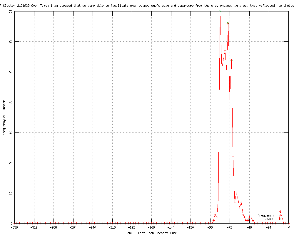 | 18 | pleased that we were able to facilitate chen guangcheng's stay and departure from the u.s. embassy in a way that reflected his choices and our values Urls http://usatoday.com/news/world/story/2012-05-01/hillary-clinton-china-trip/54673082/1?csp=34news&utm_source=feedburner&utm_medium=feed&utm_campaign=Feed:%20UsatodaycomWashington-TopStories%20%28News%20-%20Washington%20-%20Top%20Stories%29 http://lifesitenews.com/news/under-threats-to-family-chen-guangcheng-leaves-embassy-in-secret-deal-betwe http://thehindu.com/news/international/article3377488.ece http://theepochtimes.com/n2/china-news/blind-chinese-lawyer-leaves-us-embassy-under-promise-of-safety-from-regime-2-230934.html http://talkradionews.com/newscommentary/2012/05/02/chinese-dissident-leaves-u-s-embassy.html http://twincities.com/national/ci_20535827/china-deft-diplomacy-now-potential-debacle?source=rss http://en.rian.ru/world/20120502/173177532.html http://en.apa.az/news.php?id=170867 http://startribune.com/nation/149939225.html http://faustasblog.com/2012/05/annals-of-smart-diplomacy-chinese-dissident-chen-guangcheng-leaves-u-s-embassy-deal-to-guarantee-his-safety-may-be-unraveling-friends-say/ http://theblogismine.com/2012/05/03/chinese-dissident-released-from-u-s-embassy-pleads-to-leave-china/ http://chinahour.blogspot.com/2012/05/chinese-dissident-is-released-from.html http://chinhdangvu.blogspot.com/2012/05/chinese-dissident-is-released-from.html http://ndtv.com.feedsportal.com/c/33805/f/606695/s/1ef45d53/l/0L0Sndtv0N0Carticle0Cworld0Cchinese0Edissident0Eis0Ereleased0Efrom0Eembassy0Ecausing0Eturmoil0Efor0Eus0E20A5669/story01.htm http://nytimes.com/2012/05/04/world/asia/chen-guangcheng-us-embassy-china-threatened.html?partner=rss&emc=rss http://njtamil.com/2012/05/03/china-activist-says-he-felt-pressure-to-take-u-s-deal/ http://nytimes.com/2012/05/04/world/asia/chen-guangcheng-us-embassy-china-threatened.html http://chinahour.blogspot.com/2012/05/china-activist-says-he-felt-pressure-to.html |