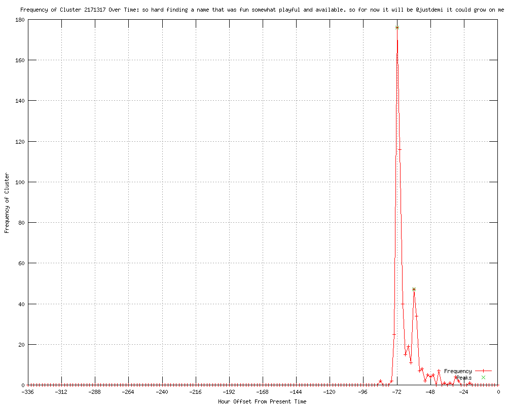 | 98 | so hard finding a name that was fun somewhat playful and available. so for now it will be @justdemi it could grow on me Urls http://wonderwall.msn.com/entertainment/demi-moore-sheds-mrskutcher-twitter-handle-1680000.story http://mauldinbrand.com/index.php/2012/05/mrskutcher-is-no-more-demi-moore-is-justdemi/ http://gossipcop.com/demi-moore-new-twitter-name-justdemi/ http://etonline.com/news/121472_Demi_Moore_No_Longer_MrsKutcher_on_Twitter/index.html http://mtv.com/news/articles/1684451/demi-moore-twitter-name-change.jhtml http://entertainment.msn.com/movies/article.aspx?news=725811&affid=100055 http://wetpaint.com/network/articles/demi-moore-ditches-mrskutcher-twitter-account-for-boring-new-temporary-handle http://contactmusic.com/news/demi-moore-becomes-justdemi-on-twitter_1324708 http://cw30.com/entertainment/story/Moore-changes-Twitter-name/aSVMlaWy-kSlSKCHwHxxfQ.cspx http://wkbn.com/entertainment/story/Moore-changes-Twitter-name/aSVMlaWy-kSlSKCHwHxxfQ.cspx http://khon2.com/entertainment/story/Moore-changes-Twitter-name/aSVMlaWy-kSlSKCHwHxxfQ.cspx http://foxyoungstown.com/content/entertainment/story/Moore-changes-Twitter-name/aSVMlaWy-kSlSKCHwHxxfQ.cspx http://koinlocal6.com/entertainment/story/Moore-changes-Twitter-name/aSVMlaWy-kSlSKCHwHxxfQ.cspx http://krnv.com/news/story/Moore-changes-Twitter-name/aSVMlaWy-kSlSKCHwHxxfQ.cspx http://fox40now.com/entertainment/story/Moore-changes-Twitter-name/aSVMlaWy-kSlSKCHwHxxfQ.cspx http://wtva.com/entertainment/story/Moore-changes-Twitter-name/aSVMlaWy-kSlSKCHwHxxfQ.cspx http://imdb.com/rg/rss/news/news/ni27479132/ http://wtvq.com/entertainment/story/Moore-changes-Twitter-name/aSVMlaWy-kSlSKCHwHxxfQ.cspx http://cbs42.com/entertainment/story/Moore-changes-Twitter-name/aSVMlaWy-kSlSKCHwHxxfQ.cspx http://ksn.com/entertainment/story/Moore-changes-Twitter-name/aSVMlaWy-kSlSKCHwHxxfQ.cspx http://khsltv.com/entertainment/story/Moore-changes-Twitter-name/aSVMlaWy-kSlSKCHwHxxfQ.cspx http://cw15.com/entertainment/story/Moore-changes-Twitter-name/aSVMlaWy-kSlSKCHwHxxfQ.cspx http://knvn.com/entertainment/story/Moore-changes-Twitter-name/aSVMlaWy-kSlSKCHwHxxfQ.cspx http://cincw.com/entertainment/story/Moore-changes-Twitter-name/aSVMlaWy-kSlSKCHwHxxfQ.cspx http://thecoastalsource.com/entertainment/story/Moore-changes-Twitter-name/aSVMlaWy-kSlSKCHwHxxfQ.cspx http://adelaidenow.com.au/news/breaking-news/mrs-kutcher-becomes-just-demi/story-e6frea73-1226346721032?from=public_rss http://dailytelegraph.com.au/news/breaking-news/mrs-kutcher-becomes-just-demi/story-e6freuyi-1226346721032 http://news.com.au.feedsportal.com/c/34564/f/632387/s/1efc8a0d/l/0L0Snews0N0Bau0Cbreaking0Enews0Cmrs0Ekutcher0Ebecomes0Ejust0Edemi0Cstory0Ee6frfku0A0E12263467210A320Dfrom0Fpublic0Irss/story01.htm http://aceshowbiz.com/news/view/00050243.html http://latestmusicheadlines.com/2012/05/mrskutcher-is-no-more-demi-moore-is-justdemi/ http://dailytelegraph.com.au/entertainment/mrs-kutcher-becomes-just-demi/story-e6frewyr-1226346763761 http://lfpress.com/entertainment/music/2012/05/03/19715176-wenn-story.html http://da.feedsportal.com/c/845/f/464365/s/1efcdcd0/l/0L0Sbelfasttelegraph0O0Centertainment0Cnews0Cdemi0Emoore0Echanges0Etwitter0Ename0E161541350Bhtml0Dr0FRSS/ia1.htm http://jam.canoe.ca/Music/2012/05/03/19715066-wenn-story.html?cid=rssentertainment http://ibtimes.com/articles/337074/20120504/longer-mrskutcher-demi-moore-finds-new-twitter.htm http://entertainmentwise.com/news/75099/Demi-Moore-Is-No-Longer-Mrs-Kutcher-Switches-To-Just-Demi-On-Twitter http://mrpaparazzi.com/post/18998/Demi-Moore-finally-removes-all-traces-of-Ashton-Kutcher-as-she-changes-her-Twitter-name http://extratv.com/2012/05/04/demi-moore-ditches-the-at-mrskutcher-name/ http://gmanetwork.com/news/story/257217/showbiz/demi-moore-no-longer-mrs-kutcher-on-twitter http://nypost.com/p/pagesix/moving_forward_mrs_kutcher_becomes_VWFJOELPxu0f8rq5Kde7rJ http://myfoxchicago.com/dpps/entertainment/demi-moore-twitter-mrs-kutcher-becomes-just-demi-dpgonc-20120504-fc_19678170 http://ebz.by/info/US/328960891 http://themacwire.blogspot.com/2012/05/moving-forward-mrs-kutcher-becomes-just.html http://ladeeninet.blogspot.com/2012/05/opposing-views-issues-experts-answers_05.html http://new-magazine.co.uk//latestnews/view/40649/Demi-Moore-becomes-justdemi-on-Twitter/ http://uk.express.feedsportal.com/c/33338/f/565861/s/1efec2a5/l/0L0Sdailyexpress0O0Cposts0Cview0C3181360CDemi0EMoore0Ebecomes0Ejustdemi0Eon0ETwitter0C/story01.htm http://uk.express.feedsportal.com/c/33338/f/565858/s/1efe5e5a/l/0L0Sdailyexpress0O0Cposts0Cview0C3181360CDemi0EMoore0Ebecomes0Ejustdemi0Eon0ETwitter0C/story01.htm http://uk.dailystar.feedsportal.com/c/33335/f/565839/s/1eff8abf/l/0L0Sdailystar0O0Cgossip0Cview0C2494560CDemi0EMoore0Ebecomes0Ejustdemi0Eon0ETwitter0C/story01.htm http://luxury.net/2012/05/demi-moore-changes-twitter-name/ http://uk.dailystar.feedsportal.com/c/33335/f/565835/s/1efff42a/l/0L0Sdailystar0O0Cgossip0Cview0C2494560CDemi0EMoore0Ebecomes0Ejustdemi0Eon0ETwitter0C/story01.htm http://sheknows.com/entertainment/articles/959399/demi-moore-finally-changes-her-twitter-name http://jezebel.com/5907606/frances-bean-now-controls-courtney-loves-purse-strings http://okmagazine.com/news/demi-moore-debuts-new-twitter-handle http://starpulse.com/news/index.php/2012/05/04/demi_moore_no_longer_mrskutcher_on_twi http://feeds.gawker.com/%7Er/jezebel/full/%7E3/hC9WEgqKwOU/frances-bean-now-controls-courtney-loves-purse-strings http://poplife.biz/celebrity-gossip/demi-moore-drops-the-kutcher-in-new-twitter-name http://blog.sfgate.com/dailydish/2012/05/04/demi-moore-becomes-justdemi-on-twitter/ http://ohnotheydidnt.livejournal.com/68738297.html http://news.yahoo.com/demi-moore-no-longer-mrs-kutcher-twitter-062126476.html http://thenews.com.pk/article-47527-Moore-no-longer-Mrs-Kutcher-on-Twittter http://uk.news.yahoo.com/demi-moore-no-longer-mrs-kutcher-twitter-052126125.html http://celebrity-gossip.net/demi-moore/demi-moore-drops-kutcher-new-twitter-name-626888 h