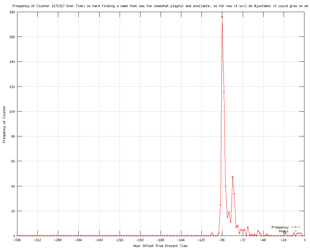 | 98 | so hard finding a name that was fun somewhat playful and available. so for now it will be @justdemi it could grow on me Urls http://wonderwall.msn.com/entertainment/demi-moore-sheds-mrskutcher-twitter-handle-1680000.story http://mauldinbrand.com/index.php/2012/05/mrskutcher-is-no-more-demi-moore-is-justdemi/ http://gossipcop.com/demi-moore-new-twitter-name-justdemi/ http://etonline.com/news/121472_Demi_Moore_No_Longer_MrsKutcher_on_Twitter/index.html http://mtv.com/news/articles/1684451/demi-moore-twitter-name-change.jhtml http://entertainment.msn.com/movies/article.aspx?news=725811&affid=100055 http://wetpaint.com/network/articles/demi-moore-ditches-mrskutcher-twitter-account-for-boring-new-temporary-handle http://contactmusic.com/news/demi-moore-becomes-justdemi-on-twitter_1324708 http://cw30.com/entertainment/story/Moore-changes-Twitter-name/aSVMlaWy-kSlSKCHwHxxfQ.cspx http://wkbn.com/entertainment/story/Moore-changes-Twitter-name/aSVMlaWy-kSlSKCHwHxxfQ.cspx http://khon2.com/entertainment/story/Moore-changes-Twitter-name/aSVMlaWy-kSlSKCHwHxxfQ.cspx http://foxyoungstown.com/content/entertainment/story/Moore-changes-Twitter-name/aSVMlaWy-kSlSKCHwHxxfQ.cspx http://koinlocal6.com/entertainment/story/Moore-changes-Twitter-name/aSVMlaWy-kSlSKCHwHxxfQ.cspx http://krnv.com/news/story/Moore-changes-Twitter-name/aSVMlaWy-kSlSKCHwHxxfQ.cspx http://fox40now.com/entertainment/story/Moore-changes-Twitter-name/aSVMlaWy-kSlSKCHwHxxfQ.cspx http://wtva.com/entertainment/story/Moore-changes-Twitter-name/aSVMlaWy-kSlSKCHwHxxfQ.cspx http://imdb.com/rg/rss/news/news/ni27479132/ http://wtvq.com/entertainment/story/Moore-changes-Twitter-name/aSVMlaWy-kSlSKCHwHxxfQ.cspx http://cbs42.com/entertainment/story/Moore-changes-Twitter-name/aSVMlaWy-kSlSKCHwHxxfQ.cspx http://ksn.com/entertainment/story/Moore-changes-Twitter-name/aSVMlaWy-kSlSKCHwHxxfQ.cspx http://khsltv.com/entertainment/story/Moore-changes-Twitter-name/aSVMlaWy-kSlSKCHwHxxfQ.cspx http://cw15.com/entertainment/story/Moore-changes-Twitter-name/aSVMlaWy-kSlSKCHwHxxfQ.cspx http://knvn.com/entertainment/story/Moore-changes-Twitter-name/aSVMlaWy-kSlSKCHwHxxfQ.cspx http://cincw.com/entertainment/story/Moore-changes-Twitter-name/aSVMlaWy-kSlSKCHwHxxfQ.cspx http://thecoastalsource.com/entertainment/story/Moore-changes-Twitter-name/aSVMlaWy-kSlSKCHwHxxfQ.cspx http://adelaidenow.com.au/news/breaking-news/mrs-kutcher-becomes-just-demi/story-e6frea73-1226346721032?from=public_rss http://dailytelegraph.com.au/news/breaking-news/mrs-kutcher-becomes-just-demi/story-e6freuyi-1226346721032 http://news.com.au.feedsportal.com/c/34564/f/632387/s/1efc8a0d/l/0L0Snews0N0Bau0Cbreaking0Enews0Cmrs0Ekutcher0Ebecomes0Ejust0Edemi0Cstory0Ee6frfku0A0E12263467210A320Dfrom0Fpublic0Irss/story01.htm http://aceshowbiz.com/news/view/00050243.html http://latestmusicheadlines.com/2012/05/mrskutcher-is-no-more-demi-moore-is-justdemi/ http://dailytelegraph.com.au/entertainment/mrs-kutcher-becomes-just-demi/story-e6frewyr-1226346763761 http://lfpress.com/entertainment/music/2012/05/03/19715176-wenn-story.html http://da.feedsportal.com/c/845/f/464365/s/1efcdcd0/l/0L0Sbelfasttelegraph0O0Centertainment0Cnews0Cdemi0Emoore0Echanges0Etwitter0Ename0E161541350Bhtml0Dr0FRSS/ia1.htm http://jam.canoe.ca/Music/2012/05/03/19715066-wenn-story.html?cid=rssentertainment http://ibtimes.com/articles/337074/20120504/longer-mrskutcher-demi-moore-finds-new-twitter.htm http://entertainmentwise.com/news/75099/Demi-Moore-Is-No-Longer-Mrs-Kutcher-Switches-To-Just-Demi-On-Twitter http://mrpaparazzi.com/post/18998/Demi-Moore-finally-removes-all-traces-of-Ashton-Kutcher-as-she-changes-her-Twitter-name http://extratv.com/2012/05/04/demi-moore-ditches-the-at-mrskutcher-name/ http://gmanetwork.com/news/story/257217/showbiz/demi-moore-no-longer-mrs-kutcher-on-twitter http://nypost.com/p/pagesix/moving_forward_mrs_kutcher_becomes_VWFJOELPxu0f8rq5Kde7rJ http://myfoxchicago.com/dpps/entertainment/demi-moore-twitter-mrs-kutcher-becomes-just-demi-dpgonc-20120504-fc_19678170 http://ebz.by/info/US/328960891 http://themacwire.blogspot.com/2012/05/moving-forward-mrs-kutcher-becomes-just.html http://ladeeninet.blogspot.com/2012/05/opposing-views-issues-experts-answers_05.html http://new-magazine.co.uk//latestnews/view/40649/Demi-Moore-becomes-justdemi-on-Twitter/ http://uk.express.feedsportal.com/c/33338/f/565861/s/1efec2a5/l/0L0Sdailyexpress0O0Cposts0Cview0C3181360CDemi0EMoore0Ebecomes0Ejustdemi0Eon0ETwitter0C/story01.htm http://uk.express.feedsportal.com/c/33338/f/565858/s/1efe5e5a/l/0L0Sdailyexpress0O0Cposts0Cview0C3181360CDemi0EMoore0Ebecomes0Ejustdemi0Eon0ETwitter0C/story01.htm http://uk.dailystar.feedsportal.com/c/33335/f/565839/s/1eff8abf/l/0L0Sdailystar0O0Cgossip0Cview0C2494560CDemi0EMoore0Ebecomes0Ejustdemi0Eon0ETwitter0C/story01.htm http://luxury.net/2012/05/demi-moore-changes-twitter-name/ http://uk.dailystar.feedsportal.com/c/33335/f/565835/s/1efff42a/l/0L0Sdailystar0O0Cgossip0Cview0C2494560CDemi0EMoore0Ebecomes0Ejustdemi0Eon0ETwitter0C/story01.htm http://sheknows.com/entertainment/articles/959399/demi-moore-finally-changes-her-twitter-name http://jezebel.com/5907606/frances-bean-now-controls-courtney-loves-purse-strings http://okmagazine.com/news/demi-moore-debuts-new-twitter-handle http://starpulse.com/news/index.php/2012/05/04/demi_moore_no_longer_mrskutcher_on_twi http://feeds.gawker.com/%7Er/jezebel/full/%7E3/hC9WEgqKwOU/frances-bean-now-controls-courtney-loves-purse-strings http://poplife.biz/celebrity-gossip/demi-moore-drops-the-kutcher-in-new-twitter-name http://blog.sfgate.com/dailydish/2012/05/04/demi-moore-becomes-justdemi-on-twitter/ http://ohnotheydidnt.livejournal.com/68738297.html http://news.yahoo.com/demi-moore-no-longer-mrs-kutcher-twitter-062126476.html http://thenews.com.pk/article-47527-Moore-no-longer-Mrs-Kutcher-on-Twittter http://uk.news.yahoo.com/demi-moore-no-longer-mrs-kutcher-twitter-052126125.html http://celebrity-gossip.net/demi-moore/demi-moore-drops-kutcher-new-twitter-name-626888 h