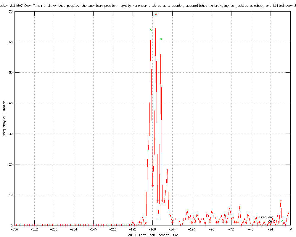 | 5 | i think that people, the american people rightly remember what we as a country accomplished in bringing to justice somebody who killed over 3000 of our citizens Urls http://feeds.cbsnews.com/~r/CBSNewsMain/~3/EQyFaikJpto/ http://wibw.com/nationalnews/headlines/Obama_No_Excessive_Celebration_Of_bin_Ladens_Death_149582735.html http://wibw.com/politics/headlines/Obama_No_Excessive_Celebration_Of_bin_Ladens_Death_149582735.html http://wibw.com/home/headlines/Obama_No_Excessive_Celebration_Of_bin_Ladens_Death_149582735.html http://politico.com/blogs/burns-haberman/2012/04/obama-no-excessive-celebration-about-bin-laden-122104.html |