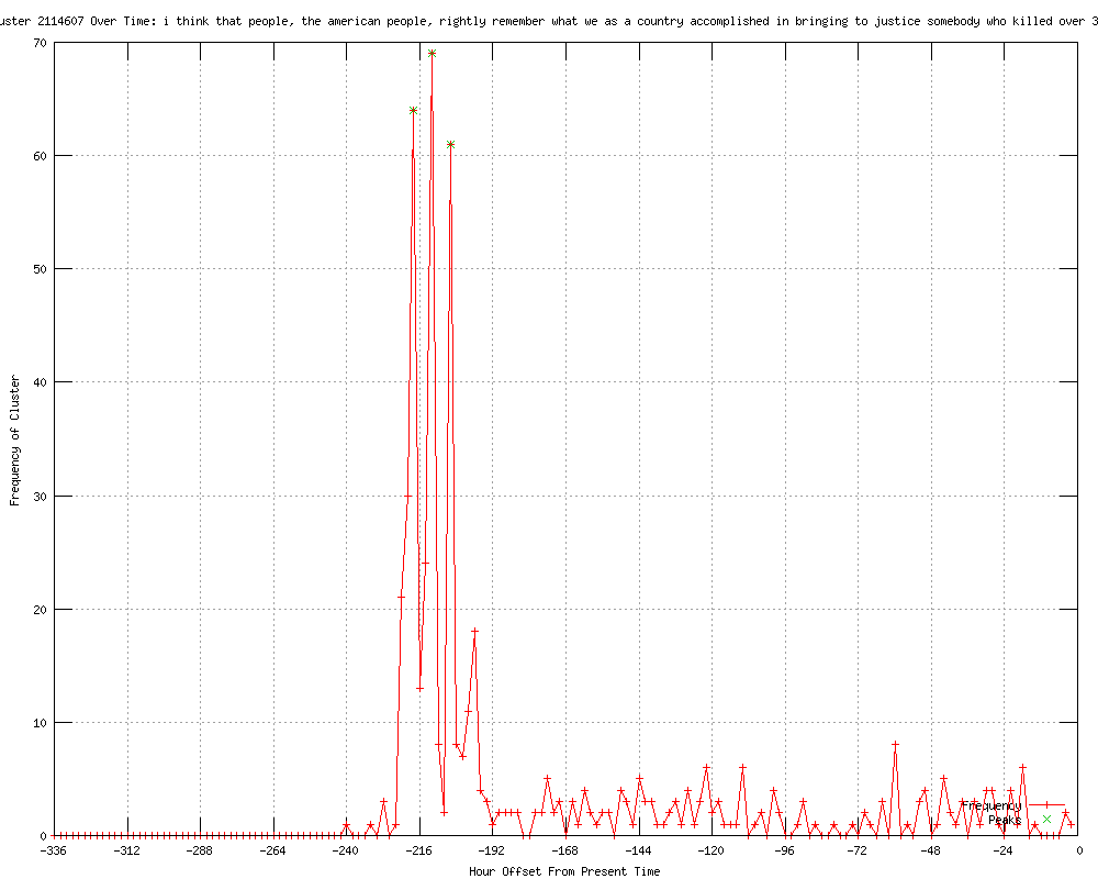 | 5 | i think that people, the american people rightly remember what we as a country accomplished in bringing to justice somebody who killed over 3000 of our citizens Urls http://feeds.cbsnews.com/~r/CBSNewsMain/~3/EQyFaikJpto/ http://wibw.com/nationalnews/headlines/Obama_No_Excessive_Celebration_Of_bin_Ladens_Death_149582735.html http://wibw.com/politics/headlines/Obama_No_Excessive_Celebration_Of_bin_Ladens_Death_149582735.html http://wibw.com/home/headlines/Obama_No_Excessive_Celebration_Of_bin_Ladens_Death_149582735.html http://politico.com/blogs/burns-haberman/2012/04/obama-no-excessive-celebration-about-bin-laden-122104.html |