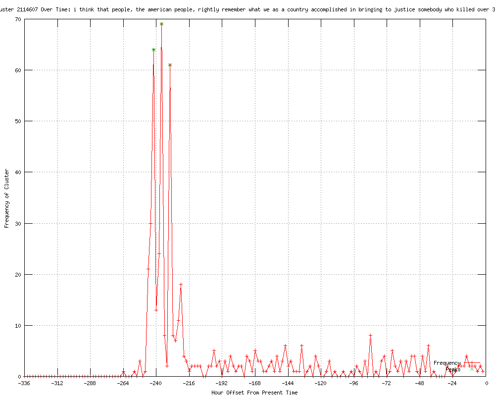 | 5 | i think that people, the american people rightly remember what we as a country accomplished in bringing to justice somebody who killed over 3000 of our citizens Urls http://feeds.cbsnews.com/~r/CBSNewsMain/~3/EQyFaikJpto/ http://wibw.com/nationalnews/headlines/Obama_No_Excessive_Celebration_Of_bin_Ladens_Death_149582735.html http://wibw.com/politics/headlines/Obama_No_Excessive_Celebration_Of_bin_Ladens_Death_149582735.html http://wibw.com/home/headlines/Obama_No_Excessive_Celebration_Of_bin_Ladens_Death_149582735.html http://politico.com/blogs/burns-haberman/2012/04/obama-no-excessive-celebration-about-bin-laden-122104.html |