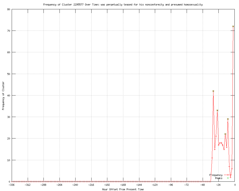 | 19 | nonconformity and presumed homosexuality Urls http://metro.us/newyork/national/article/1142792--metropolitik-quickie-weekend-quote-roundup http://metro.us/newyork/comment/article/1142792--metropolitik-quickie-weekend-quote-roundup http://thecaucus.blogs.nytimes.com/2012/05/10/romney-apologizes-after-reports-of-bullying-emerge/?partner=rss&emc=rss http://feeds.nytimes.com/click.phdo?i=99eceb387838b695f98eafbfa894895b http://latimes.com/news/nationworld/nation/la-na-romney-apology-20120511,0,2738869.story?track=rss http://washingtonpost.com/blogs/plum-line/post/what-does-mitt-romneys-bullying-tell-us/2012/05/10/gIQAeAuyFU_blog.html?wprss=rss_opinions http://abc15.com/dpp/news/now/hijinks-or-high-school-bully-washington-post-article-on-mitt-romney-draws-attention http://blogrunner.com/snapshot/D/5/4/romney_apologizes_for_bullying_in_prep_school_says_he_didnt_know_victim_was_gay/ http://blogrunner.com/snapshot/D/1/2/washington_post_held_mitt_romney_bullying_story_in_print_due_to_obama_gay_marriage_news/ http://weaselzippers.us/2012/05/10/audio-obama-describes-bullying-female-classmate-because-she-was-black/ http://digitaljournal.com/article/324706 http://spokesman.com/stories/2012/may/11/romney-apologizes-for-stupid-things-as-teen/ http://dispatch.com/content/stories/national_world/2012/05/11/gay-marriage-issue-immerses-obama-romney-on-day-after.html http://ecollegetimes.com/student-life/romney-apologizes-after-report-that-he-bullied-a-fellow-student-in-high-school-1.2739882 http://jackandjillpolitics.com/2012/05/friday-open-thread-192/ http://politicalarticles.net/blog/2012/05/11/what-romneys-gay-bullying-tells-us-mitts-homophobic-streak-at-elite-michigan-prep-school/ http://themunz.blogspot.com/2012/05/weasel-zippers-blog-archive-audio-obama.html http://legalinsurrection.com/2012/05/wapos-lord-of-the-lies/ http://caltha-palustris.newsvine.com/_news/2012/05/11/11665515-what-does-mitt-romneys-bullying-tell-us-the-plum-line-the-washington-post |