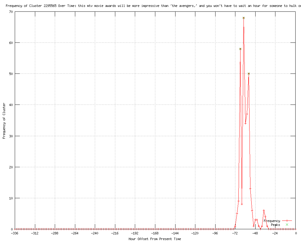 | 18 | this mtv movie awards will be more impressive than `the avengers,' and you won't have to wait an hour for someone to hulk out Urls http://startribune.com/entertainment/tv/150912755.html http://entertainment.msn.com/tv/article.aspx?news=727326&affid=100055 http://wonderwall.msn.com/entertainment/russell-brand-to-host-mtv-movie-awards-next-month-1681106.story http://goerie.com/apps/pbcs.dll/article?AID=/20120510/APE/1205100646 http://wbal.com/article/ap?articleurl=http%3a%2f%2fhosted.ap.org%2fdynamic%2fstories%2fU%2fUS_MTV_MOVIE_AWARDS_HOST%3fSITE%3dWBAL%26SECTION%3dHOME%26TEMPLATE%3dDEFAULT http://washingtontimes.feedsportal.com/c/34503/f/629227/s/1f368cb3/l/0L0Swashingtontimes0N0Cnews0C20A120Cmay0C10A0Crussell0Ebrand0Eto0Ehost0Emtv0Emovie0Eawards0Enext0Emonth0C0Dutm0Isource0FRSS0IFeed0Gutm0Imedium0FRSS/story01.htm http://kdwn.com/news/entertainment-news/Russell_Brand_to_host_MTV_Movie_Awards_next_month http://utsandiego.com/news/2012/may/10/russell-brand-to-host-mtv-movie-awards-next-month/ http://washingtontimes.feedsportal.com/c/34503/f/629237/s/1f367a23/l/0L0Swashingtontimes0N0Cnews0C20A120Cmay0C10A0Crussell0Ebrand0Eto0Ehost0Emtv0Emovie0Eawards0Enext0Emonth0C0Dutm0Isource0FRSS0IFeed0Gutm0Imedium0FRSS/story01.htm http://entertainment.msn.com/tv/article.aspx?news=727329&affid=100055 http://washingtontimes.feedsportal.com/c/34503/f/629421/s/1f378038/l/0L0Swashingtontimes0N0Cnews0C20A120Cmay0C10A0Crussell0Ebrand0Eto0Ehost0Emtv0Emovie0Eawards0Enext0Emonth0C0Dutm0Isource0FRSS0IFeed0Gutm0Imedium0FRSS/story01.htm http://seattletimes.nwsource.com/html/entertainment/2018177482_apusmtvmovieawardshost.html?syndication=rss http://huffingtonpost.com/2012/05/10/russell-brand-mtv-movie-awards-2012_n_1505634.html http://dailylocal.com/article/20120510/ENTERTAINMENT01/120519975/russell-brand-to-host-mtv-movie-awards-next-month http://cw56.com/news/articles/entertainment/12007434797983/ http://icydk.com/2012/05/10/russell-brand-will-be-he-host-of-the-2012-mtv-movie-awards/ http://longislandpress.com/2012/05/10/russell-brand-to-host-mtv-movie-awards-next-month/ http://boston.com/ae/music/articles/2012/05/10/russell_brand_to_host_mtv_movie_awards_next_month?rss_id=Boston.com+--+Music+news |