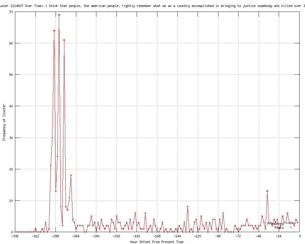 | 5 | i think that people, the american people rightly remember what we as a country accomplished in bringing to justice somebody who killed over 3000 of our citizens Urls http://feeds.cbsnews.com/~r/CBSNewsMain/~3/EQyFaikJpto/ http://wibw.com/nationalnews/headlines/Obama_No_Excessive_Celebration_Of_bin_Ladens_Death_149582735.html http://wibw.com/politics/headlines/Obama_No_Excessive_Celebration_Of_bin_Ladens_Death_149582735.html http://wibw.com/home/headlines/Obama_No_Excessive_Celebration_Of_bin_Ladens_Death_149582735.html http://politico.com/blogs/burns-haberman/2012/04/obama-no-excessive-celebration-about-bin-laden-122104.html |