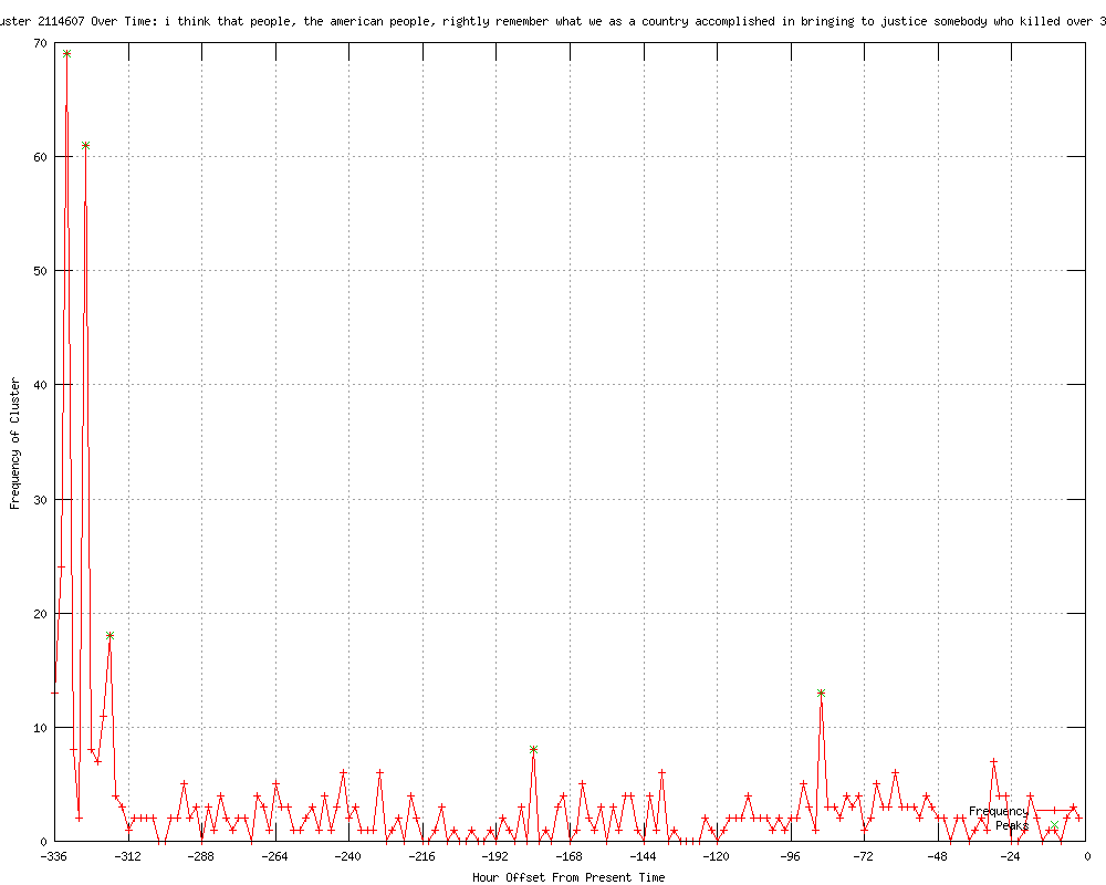 | 5 | i think that people, the american people rightly remember what we as a country accomplished in bringing to justice somebody who killed over 3000 of our citizens Urls http://feeds.cbsnews.com/~r/CBSNewsMain/~3/EQyFaikJpto/ http://wibw.com/nationalnews/headlines/Obama_No_Excessive_Celebration_Of_bin_Ladens_Death_149582735.html http://wibw.com/politics/headlines/Obama_No_Excessive_Celebration_Of_bin_Ladens_Death_149582735.html http://wibw.com/home/headlines/Obama_No_Excessive_Celebration_Of_bin_Ladens_Death_149582735.html http://politico.com/blogs/burns-haberman/2012/04/obama-no-excessive-celebration-about-bin-laden-122104.html |