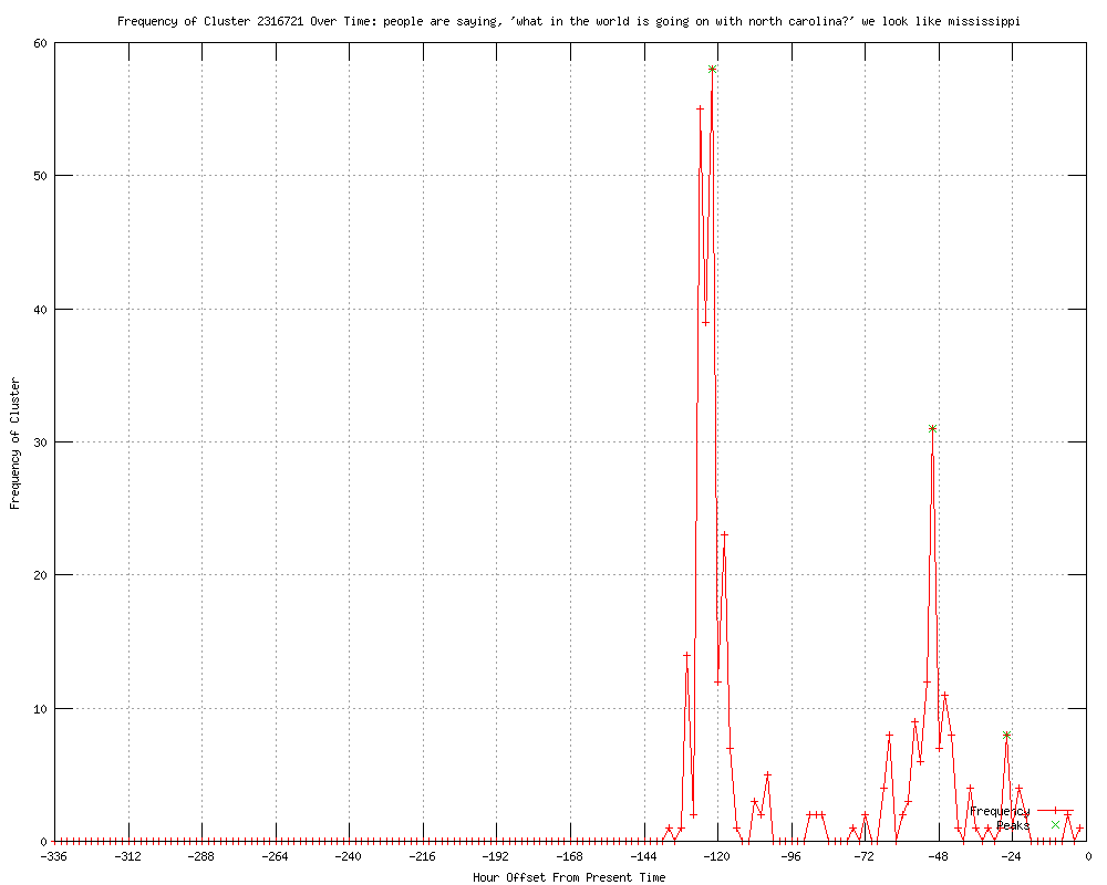 | 14 | people are saying what in the world is going on with north carolina, we look like mississippi Urls http://witn.com/home/headlines/Perdue_On_Amendment_One__We_Look_Like_Mississippi_151122875.html http://witn.com/news/watercooler/headlines/Perdue_On_Amendment_One__We_Look_Like_Mississippi_151122875.html http://witn.com/news/politics/headlines/Perdue_On_Amendment_One__We_Look_Like_Mississippi_151122875.html http://witn.com/news/stateregional/headlines/Perdue_On_Amendment_One__We_Look_Like_Mississippi_151122875.html http://wwaytv3.com/2012/05/11/gov-perdue-says-we-look-like-mississippi http://wwaytv3.com/2012/05/11/gov-perdue-we-look-like-mississippi http://abclocal.go.com/wtvd/story?section=news/politics&id=8657823&rss=rss-wtvd-article-8657823 http://sfist.com/2012/05/11/lesbian_arrested_after_seeking_marr.php http://facepunch.com/threads/1183393?goto=newpost http://sistertoldjah.com/archives/2012/05/12/video-gov-perdue-disparages-61-of-nc-voters-on-amendment1/ http://mediaite.com/online/north-carolina-dem-governor-marriage-vote-makes-state-look-like-mississippi/ http://crooksandliars.com/scarce/nc-governor-bev-purdue-amendment-onewe-look http://wonkette.com/472443/north-carolina-guv-finds-worst-insult-for-amendment-one-supporters http://feeds.wonkette.com/click.phdo?i=81fc54cfc5b53b9a78d2d59a2ed4a600 |