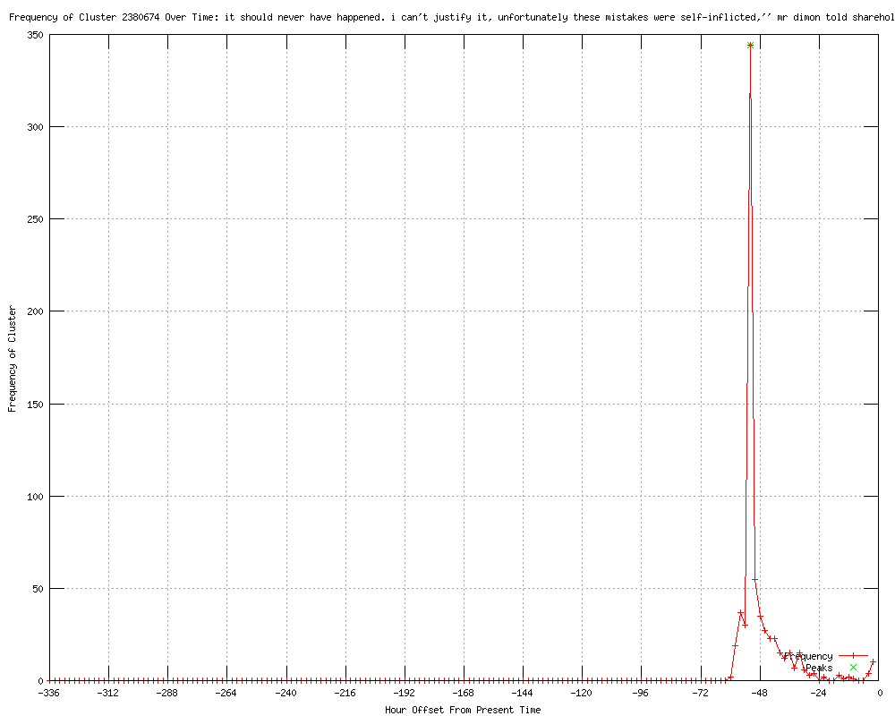 | 103 | this should never have happened. i can't justify it. unfortunately, these mistakes are self-inflicted Urls http://seattlepi.com/business/article/Dimon-survives-votes-on-pay-chairmanship-3559241.php http://whbf.com/story/18422391/jpmorgans-dimon-to-face-shareholders http://sify.com/news/Subdued-Dimon-is-confronted-over--2B-trading-loss-news-others-mfpsJchecbh.html http://us.rd.yahoo.com/finance/news/rss/story/*http://finance.yahoo.com/news/subdued-dimon-confronted-over-2b-200656084.html http://kdwn.com/news/business-news/Subdued_Dimon_is_confronted_over_$2B_trading_loss http://foxnews.com/us/2012/05/15/subdued-dimon-is-confronted-over-2b-trading-loss/ http://seattlepi.com/business/article/Subdued-Dimon-is-confronted-over-2B-trading-loss-3559241.php http://cjme.com/content/subdued-dimon-confronted-over-2b-trading-loss http://canadianbusiness.com/article/84164--jpmorgan-chase-ceo-confronted-by-shareholders-and-keeps-chairman-s-job http://ckom.com/content/subdued-dimon-confronted-over-2b-trading-loss http://newstalk650.com/content/subdued-dimon-confronted-over-2b-trading-loss http://wral.com/news/political/story/11105083/ http://boston.com/business/articles/2012/05/15/subdued_dimon_is_confronted_over_2b_trading_loss/?rss_id=Top+Stories http://wrhi.com/2012/05/unusually-subdued-jpmorgan-chase-ceo-is-confronted-by-shareholders-and-keeps-chairmans-job-42509?utm_source=rss&utm_medium=rss&utm_campaign=unusually-subdued-jpmorgan-chase-ceo-is-confronted-by-shareholders-and-keeps-chairmans-job http://dailystar.com.lb/Business/International/2012/May-15/173514-jpmorgan-ceo-is-confronted-over-$2b-trading-loss.ashx http://ckom.com/content/jpmorgan-ceo-confronted-over-2b-trading-loss http://newstalk650.com/content/jpmorgan-ceo-confronted-over-2b-trading-loss http://cjme.com/content/jpmorgan-ceo-confronted-over-2b-trading-loss http://seattlepi.com/news/article/Subdued-Dimon-is-confronted-over-2B-trading-loss-3559241.php http://kentucky.com/2012/05/15/2188314/jpmorgans-dimon-to-face-shareholders.html#storylink=rss http://ajc.com/business/subdued-dimon-is-confronted-1437743.html?cxtype=rss_news_82111 http://sacbee.com/2012/05/15/4491022/jpmorgans-dimon-to-face-shareholders.html#mi_rss=Wire%20National%20News http://inforum.com/event/apArticle/id/D9UPCKLO2/ http://twincities.com/national/ci_20629669/subdued-dimon-is-confronted-over-2b-trading-loss?source=rss http://news-leader.com/usatoday/article/39260805?odyssey=mod|newswell|text|FRONTPAGE|s http://the-review.com/latest%20headlines/2012/05/15/subdued-dimon-is-confronted-over-2b-trading-loss http://boston.com/news/nation/articles/2012/05/15/subdued_dimon_is_confronted_over_2b_trading_loss?rss_id=Boston.com+--+Latest+news http://syracuse.com/news/index.ssf/2012/05/subdued_dimon_is_confronted_ov.html http://ctv.ca/CTVNews/World/20120515/JPMorgan-Chase-CEO-apologizes-120515/ http://bangordailynews.com/2012/05/15/business/subdued-dimon-is-confronted-over-2b-trading-loss/ http://inforum.com/event/apArticle/id/D9UPEU101/ http://timesleader.com/stories/Subdued-Dimon-is-confronted-over-2B-trading-loss-,151176 http://aikenstandard.com/story/f0349-BC-US-JPMorganLoss-17thLd-Writethru-05-15-1828--4002674 http://kdwn.com/news/top-news/Subdued_Dimon_is_confronted_over_$2B_trading_loss http://news-leader.com/usatoday/article/39260805?odyssey=mod|newswell|text|FRONTPAGE|p http://news-leader.com/usatoday/article/39260805?odyssey=mod|newswell|img|FRONTPAGE|p http://wsbradio.com/ap/ap/top-news/jpmorgans-dimon-to-face-shareholders/nN6BH/ http://ITBusinessNet.com/articles/viewarticle.jsp?id=2025961 http://guardian.co.uk/world/feedarticle/10244097 http://csmonitor.com/USA/Latest-News-Wires/2012/0515/JP-Morgan-chief-apologizes-for-2-billion-loss http://canadianbusiness.com/article/84164--unusually-subdued-jpmorgan-chase-ceo-is-confronted-by-shareholders-and-keeps-chairman-s-job http://omaha.com/article/20120516/AP05/305109828 http://sunjournal.com/node/1196222 http://thejakartapost.com/news/2012/05/16/subdued-dimon-confronted-over-2b-trading-loss.html http://news.yahoo.com/subdued-dimon-confronted-over-2b-trading-loss-201022202--finance.html http://bostonherald.com/business/general/view.bg?articleid=1061131800&srvc=rss http://utsandiego.com/news/2012/may/15/subdued-dimon-is-confronted-over-2b-trading-loss/ http://miamiherald.com/2012/05/15/2801027/subdued-dimon-is-confronted-over.html http://dailymail.com/rssFeeds/201205150169 http://startribune.com/nation/151516025.html http://mysanantonio.com/business/article/FBI-opens-inquiry-into-2B-trading-loss-3561009.php http://sltrib.com/sltrib/money/54120228-79/jpmorgan-loss-trading-dimon.html.csp http://northjersey.com/r?19=961&43=515347&44=151659875&32=4497&7=309037&40=http%3A%2F%2Fwww.northjersey.com%2Fnews%2F151659875_CEO_of_JPMorgan_retains_chairman_s_job_despite_push.html http://newsobserver.com/2012/05/16/2066550/upset-shareholders-quiz-a-much.html http://thirdage.com/news/subdued-dimon-confronted-over-2b-trading-loss_05-15-2012 http://lex18.com/news/subdued-dimon-is-confronted-over-2b-trading-loss/ http://hawaiitribune-herald.com/sections/news/nation/subdued-dimon-confronted-over-2b-trading-loss.html http://daily-chronicle.com/2012/05/15/jpmorgan-head-confronted-over-2b-trading-loss/akhn9w1/ http://ITBusinessNet.com/articles/viewarticle.jsp?id=2026483 http://valdostadailytimes.com/archive/x201102908/JPMorgans-CEO-keeps-job-offers-blunt-apology-for-2B-loss#disqus_thread http://valdostadailytimes.com/todays-top-stories/x201102908/JPMorgans-CEO-keeps-job-offers-blunt-apology-for-2B-loss http://crescent-news.com/editors%20pick/2012/05/16/subdued-dimon-is-confronted-over-2b-trading-loss http://journalgazette.net/article/20120516/BIZ/305169956/1031 http://freep.com/article/20120516/BUSINESS07/205160336/1002/business http://thenewstribune.com/2012/05/16/2146437/jpmorgan-chase-ceo-accepts-blame.html?storylink=rss http://lansingstatejournal.com/viewart/20120516/BUSINESS/305160021/JPMorgan-CEO-offers-apology?odyssey=mod|newswell|tex