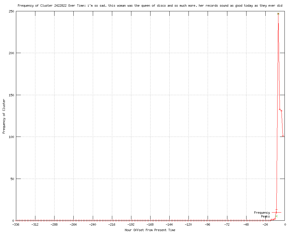 | 13 | her records sound as good today as they ever did Urls http://thirdage.com/movies-music-the-arts/donna-summer-dead-at-63 http://frugal-cafe.com/public_html/frugal-blog/frugal-cafe-blogzone/2012/05/17/rest-in-peace-beautiful-donna-majestic-queen-of-disco-donna-summer-has-died-at-63-loses-her-valiant-battle-against-cancer-video/ http://nigerianbestforum.com/generaltopics/?p=122436 http://updatednews.ca/2012/05/17/donna-summer-queen-of-disco-dies-at-63/ http://bbc.co.uk/news/entertainment-arts-18112387#sa-ns_mchannel=rss&ns_source=PublicRSS20-sa http://news.bbc.co.uk/news/entertainment-arts-18112387 http://bbc.co.uk/news/entertainment-arts-18112387 http://soundspike.com/news/article/4394-donna_summer_news_donna_summer_queen_of.html http://seeholly.blogspot.com/2012/05/mr-eipley-has-bought-four-black-pigs.html http://mirror.co.uk/news/world-news/donna-summer-tributes-the-heartbeat-837989 http://ebz.by/info/UK/331165012 http://eonline.com/news/donna_summers_death_elton_john_neil/317025?cmpid=rss-000000-rssfeed-365-topstories&utm_source=eonline&utm_medium=rssfeeds&utm_campaign=rss_topstories http://feeds.eonline.com/%7Er/eonline/topstories/%7E3/baBI5S03Fn4/317025 |